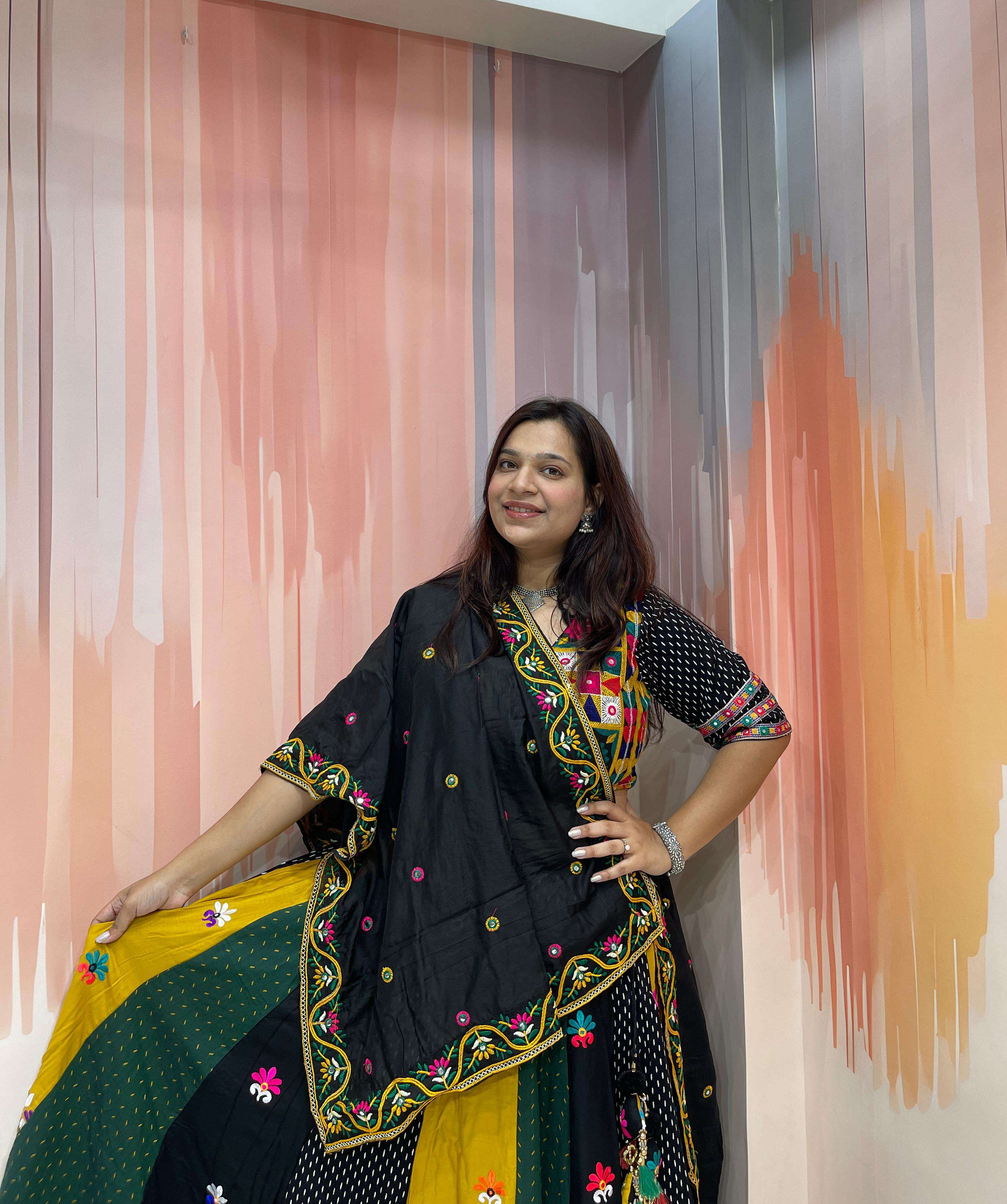 *Simple & Sober Mal Cotton Sober Cutwork panel Traditional Embroidered Chaniya choli with All over floral embroidered Dupatta Designer Outfit*