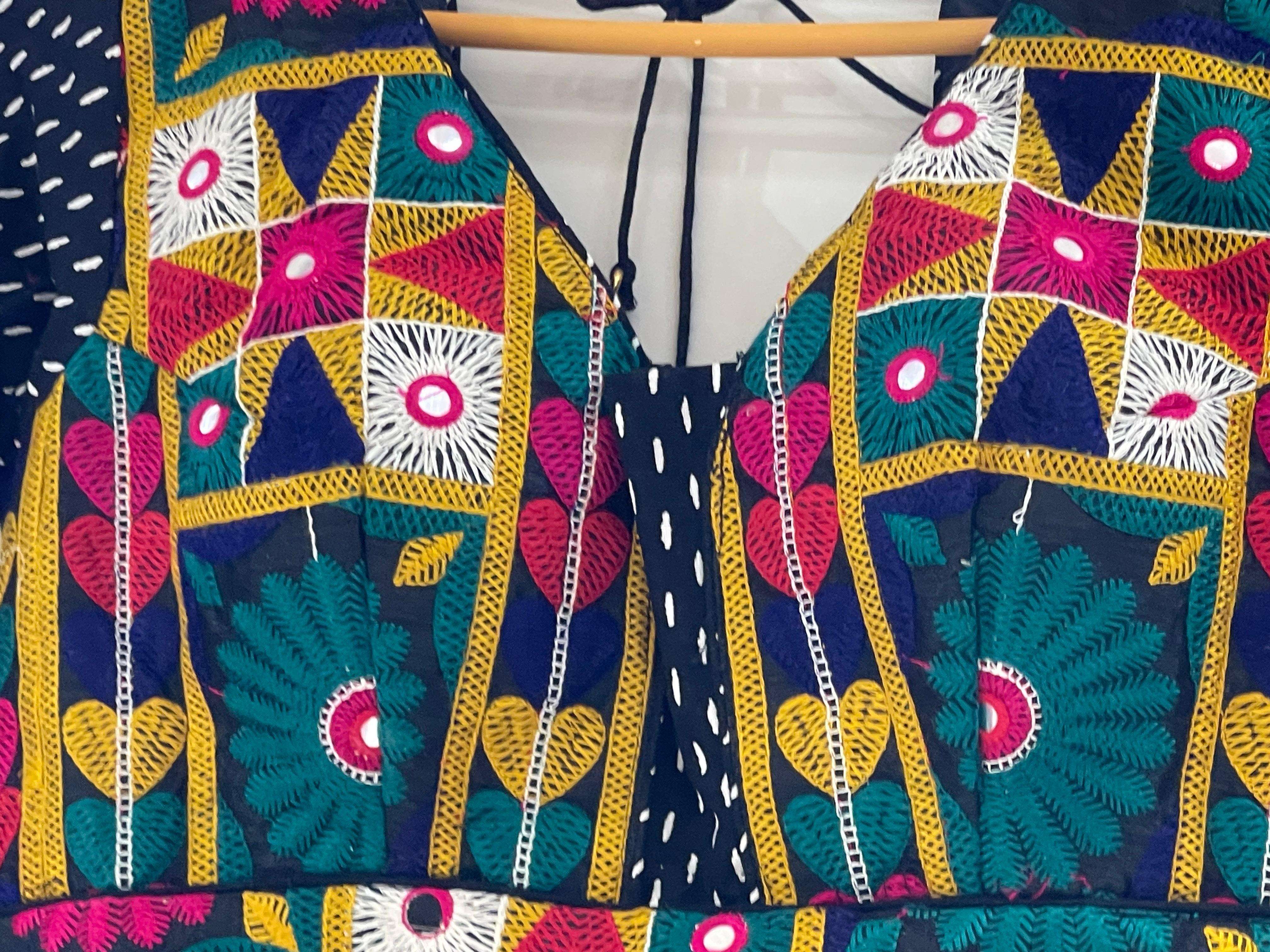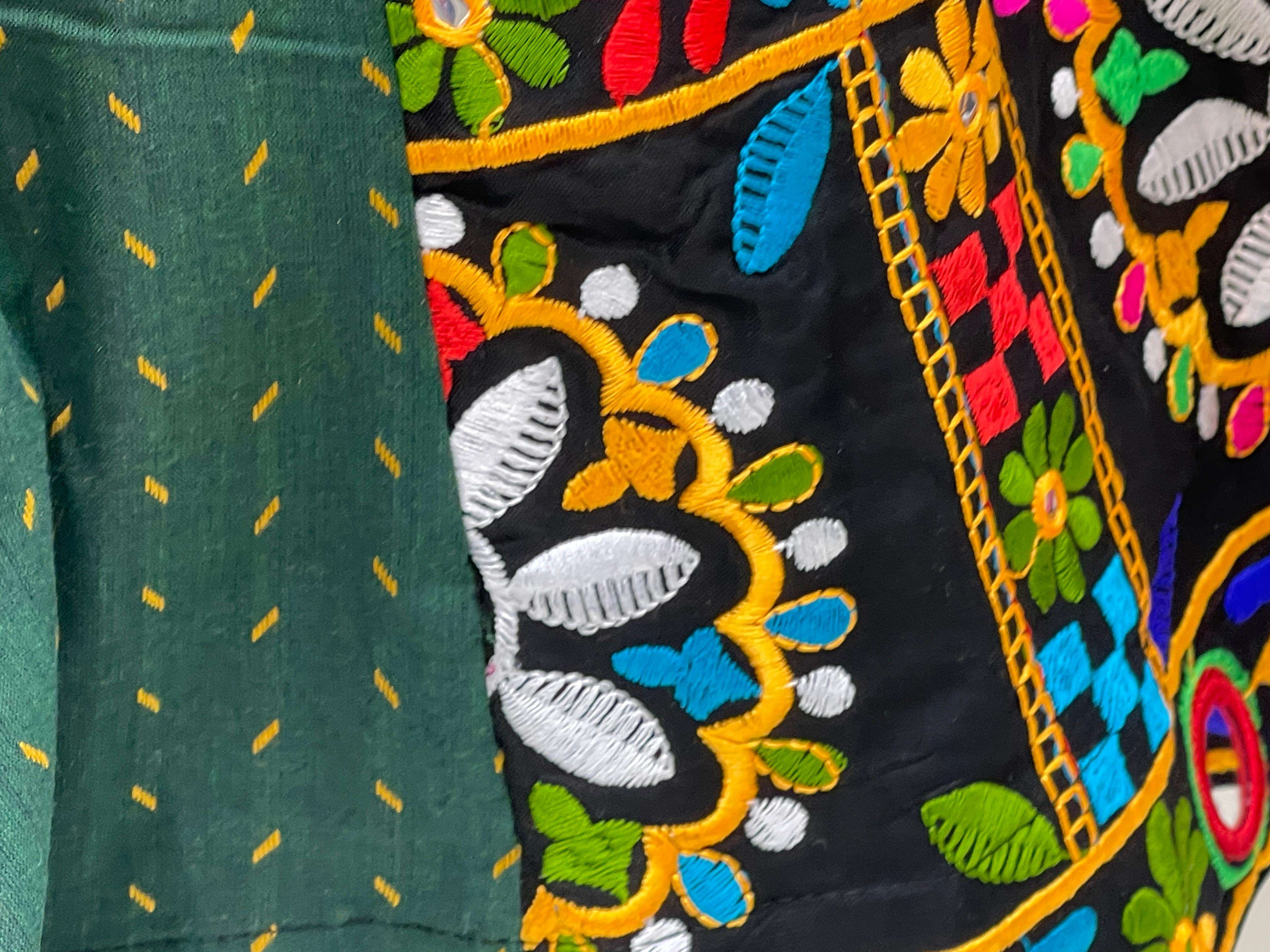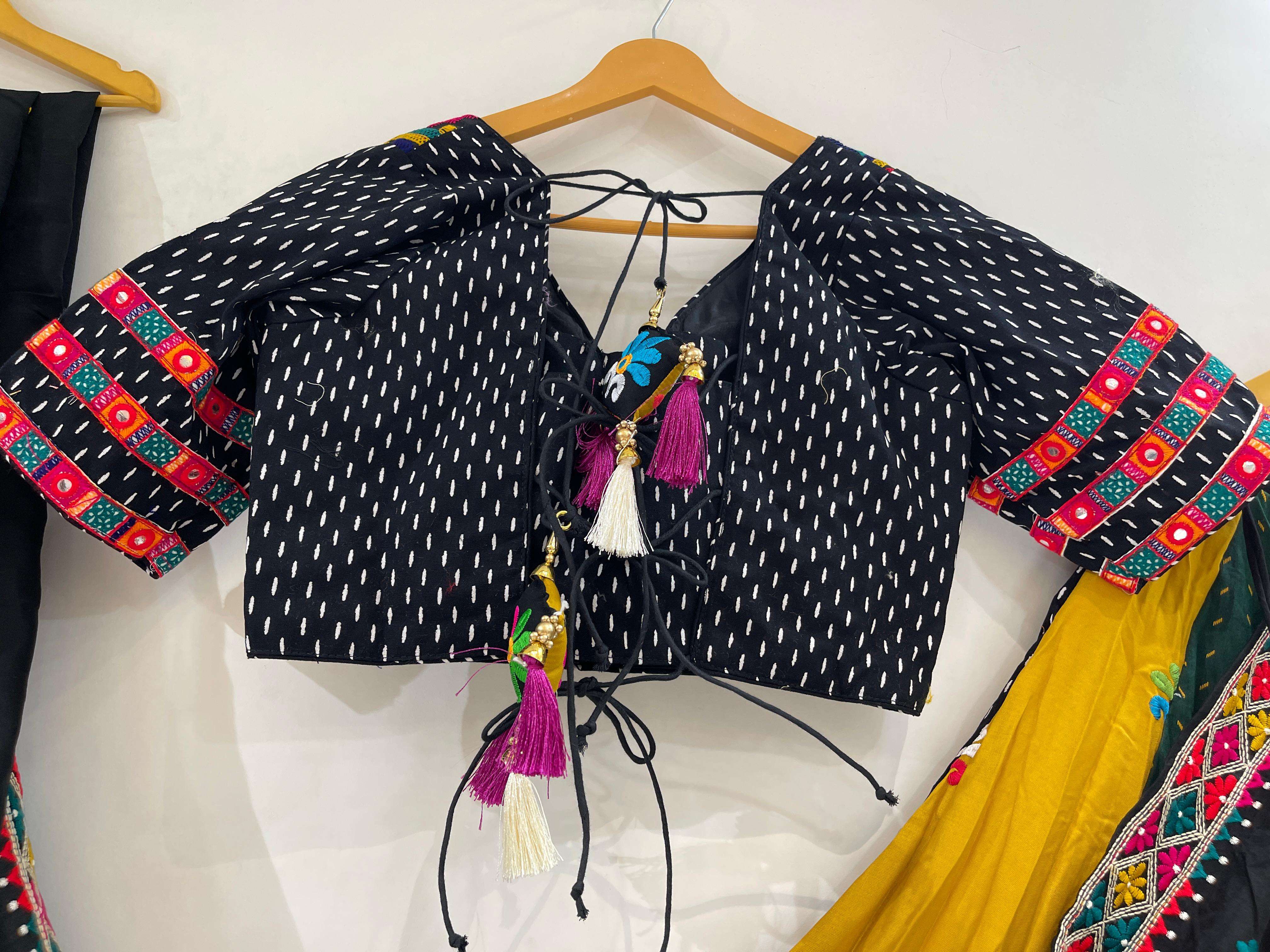 *Blouse*: *Designer Mal Cotton multiple Traditional 👋 thread embroidered mirror work Best quality lo designer 🪡 work blouse with matching latkan 38” size plus margin 2” for Size L* *(also available XL/XXL/3XL Sizes)*