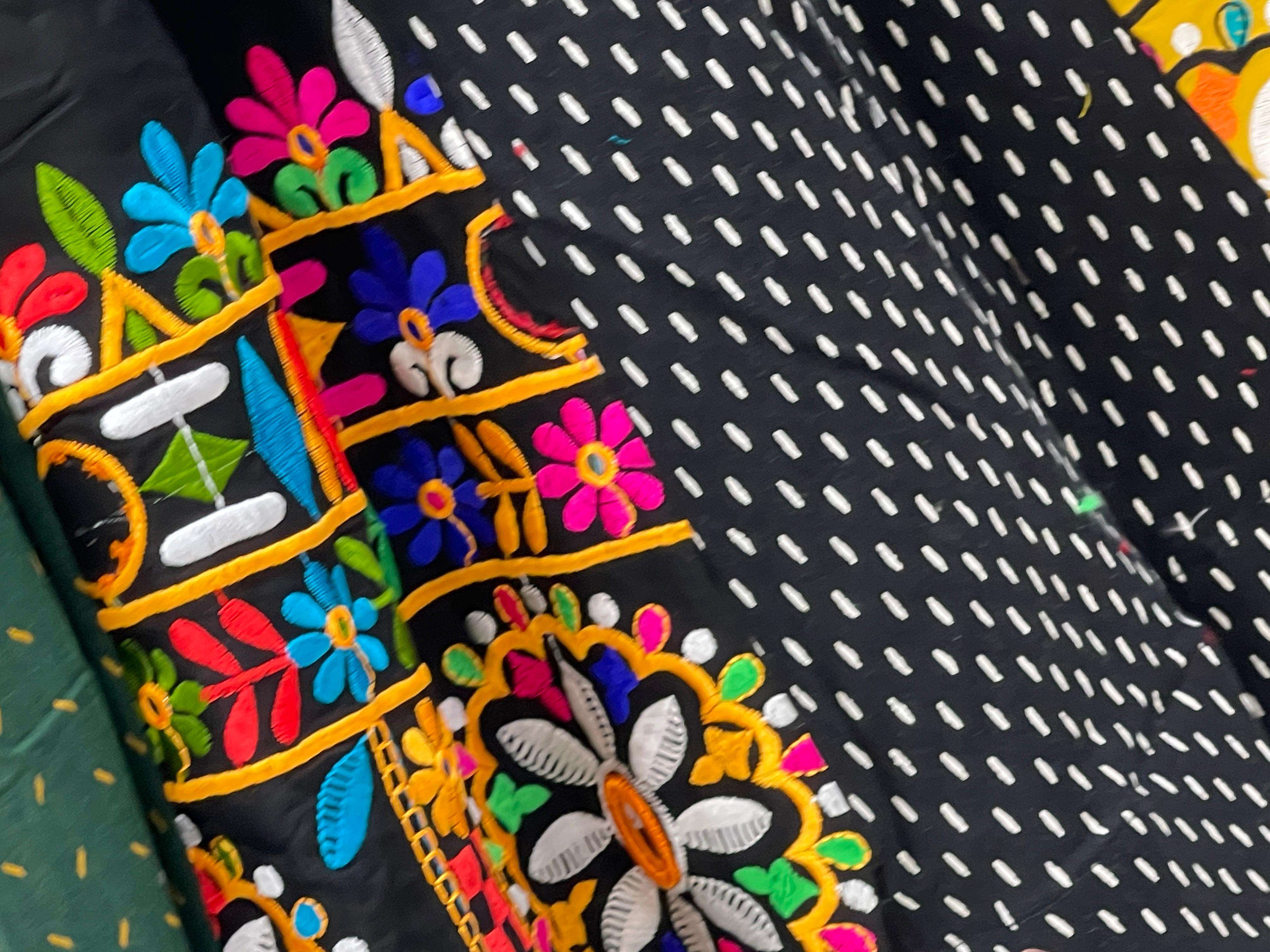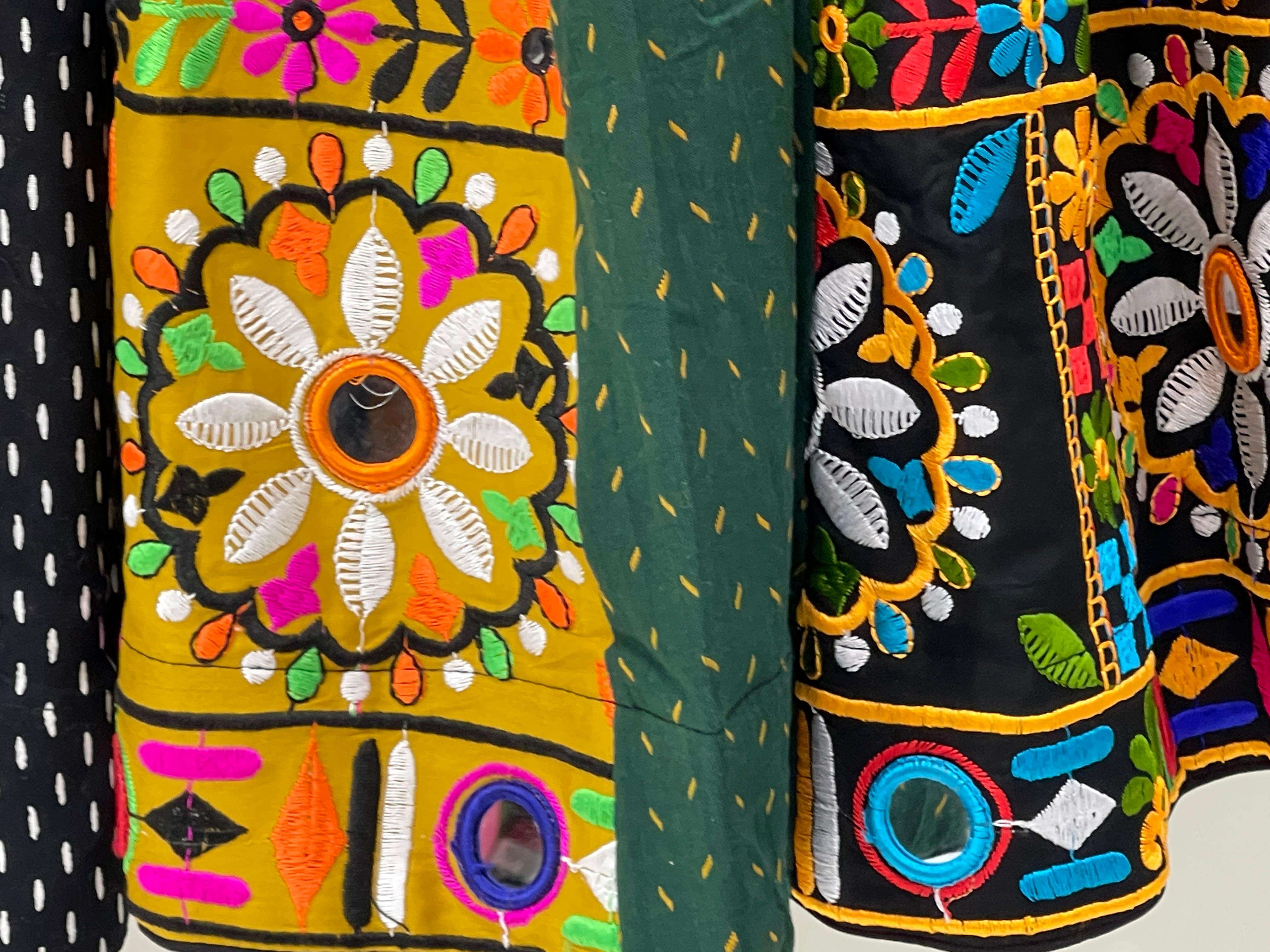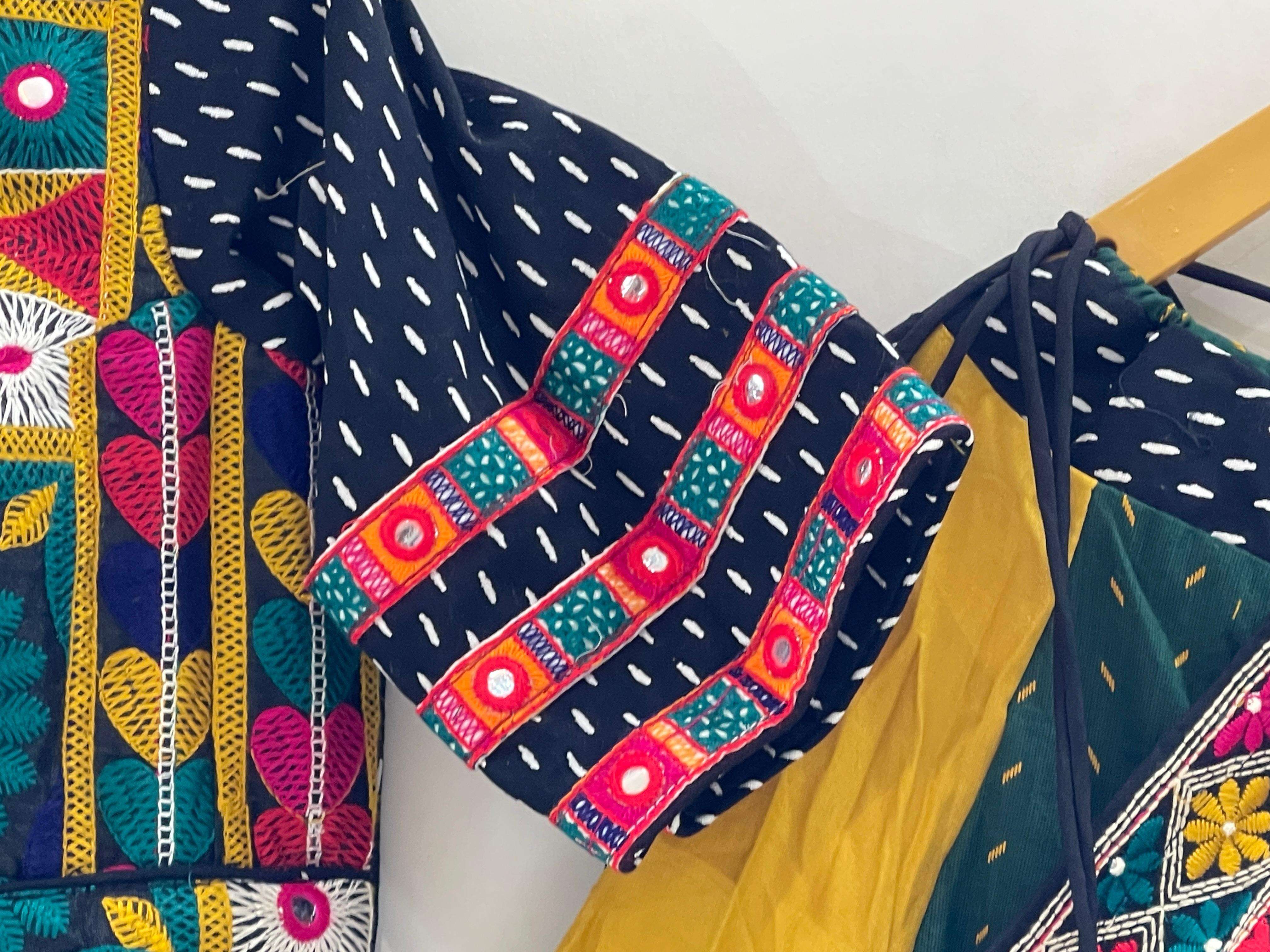 *Blouse*: *Designer Mal Cotton multiple Traditional 👋 thread embroidered mirror work Best quality lo designer 🪡 work blouse with matching latkan 38” size plus margin 2” for Size L* *(also available XL/XXL/3XL Sizes)*
