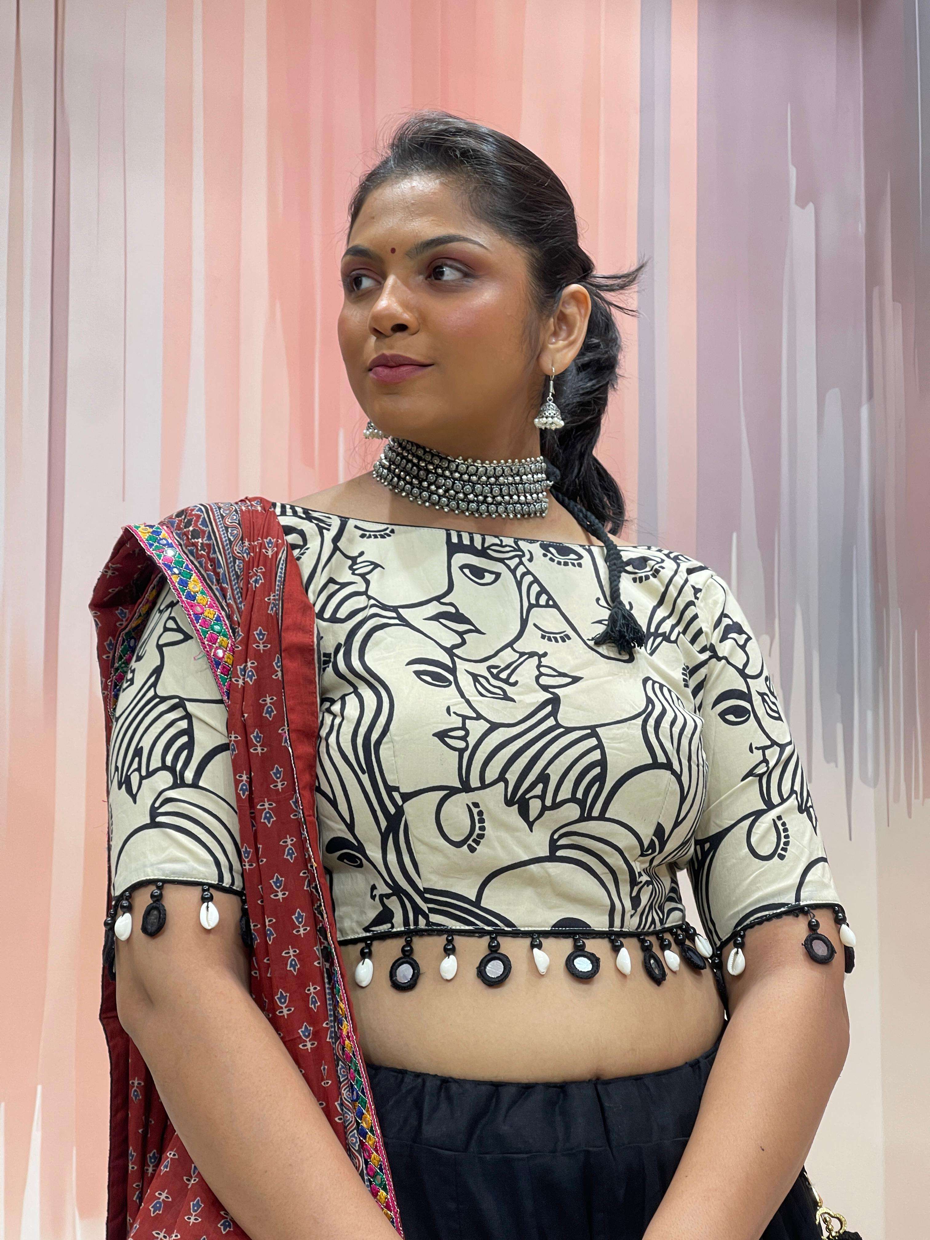*Blouse*: *Designer Mal Digitsl face Printed Indo western Best quality half sleeves Kodi work designer 🪡 work blouse with matching latkan 38” size plus margin 2” for Size L*