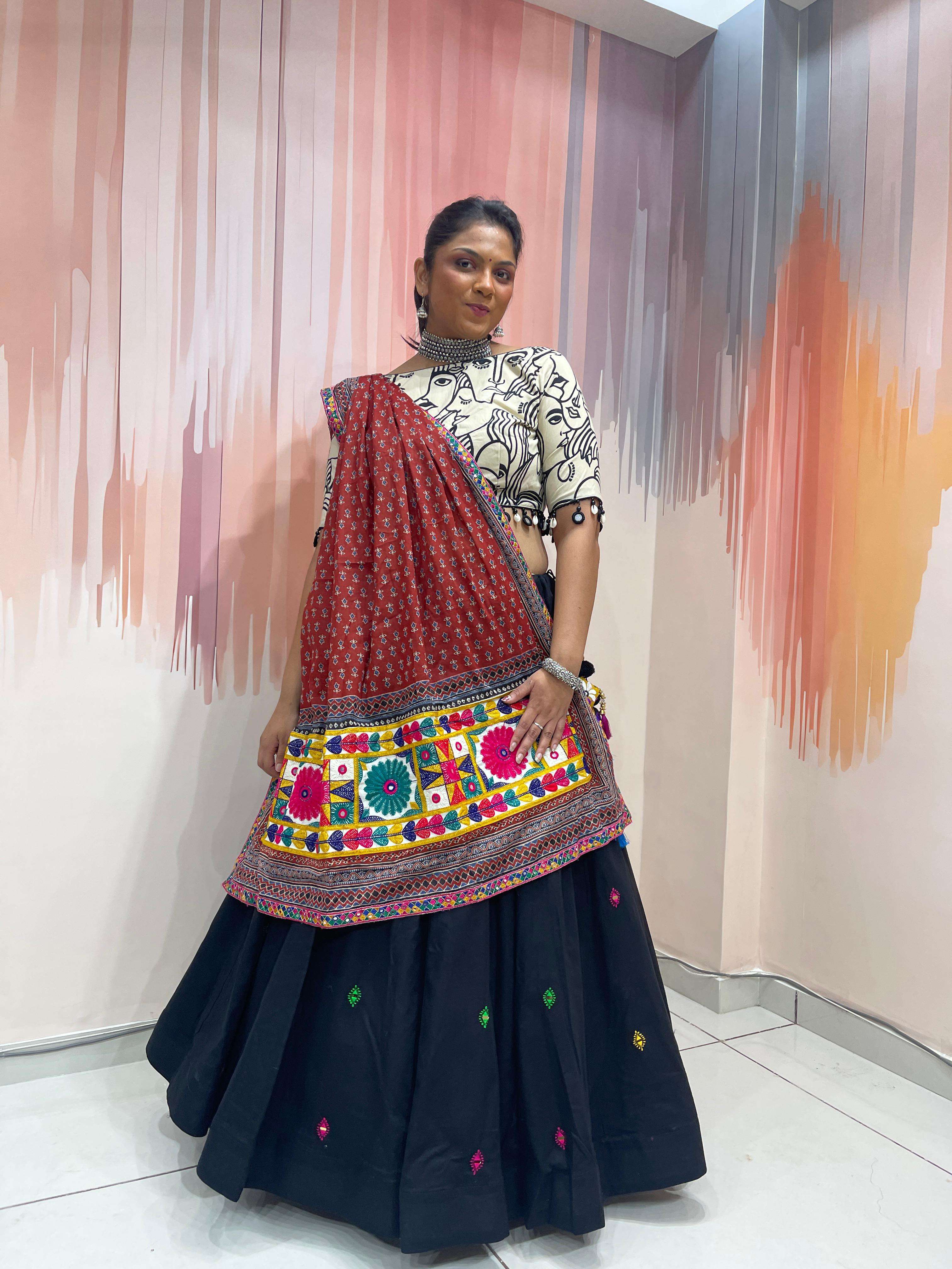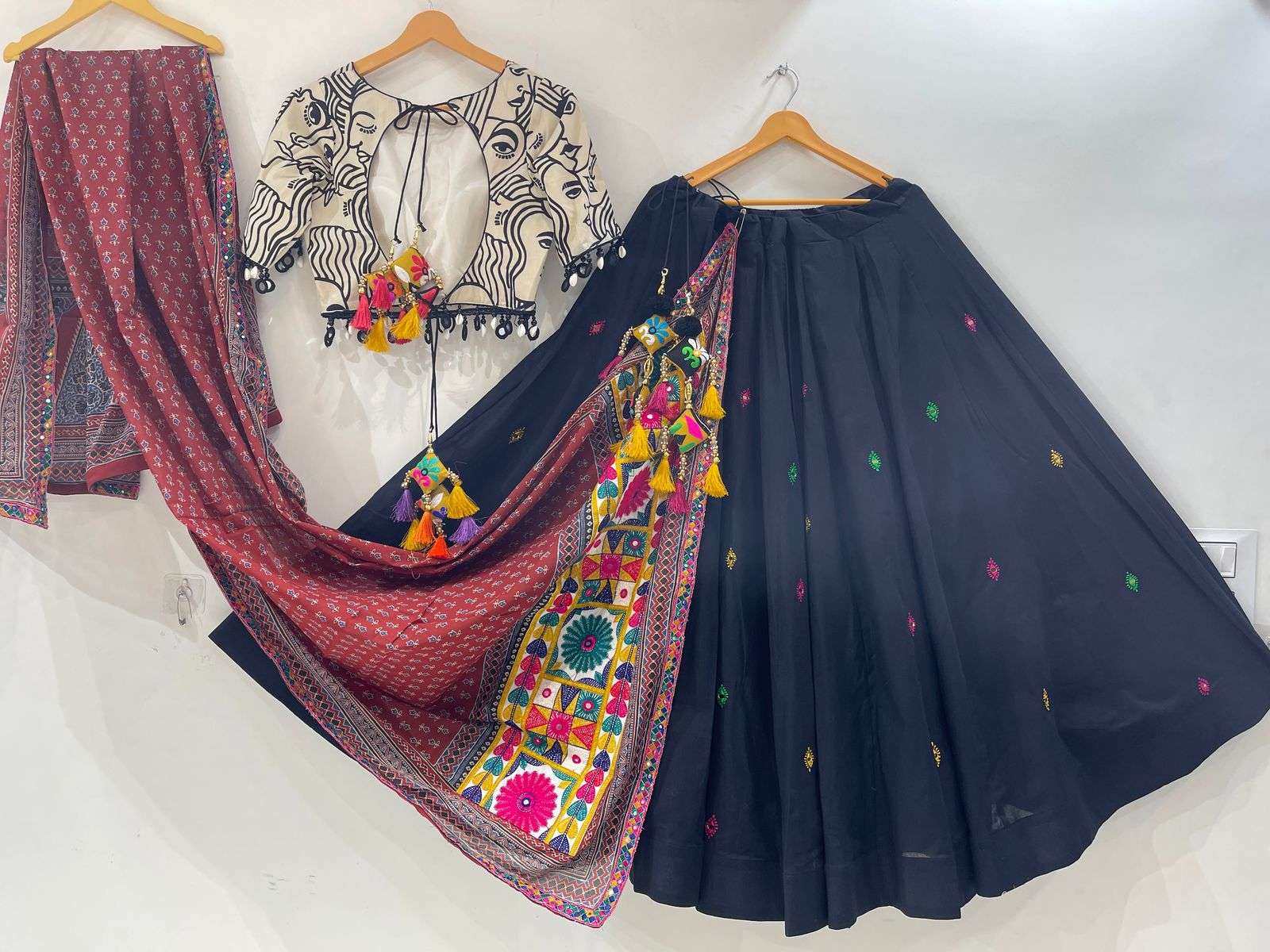 *Simple & Sober Mal Cotton Sober & Elegance Small floral Embroidered Chaniya choli with All over Kora Silk Traditional Embroidered border Dupatta Designer Outfit*