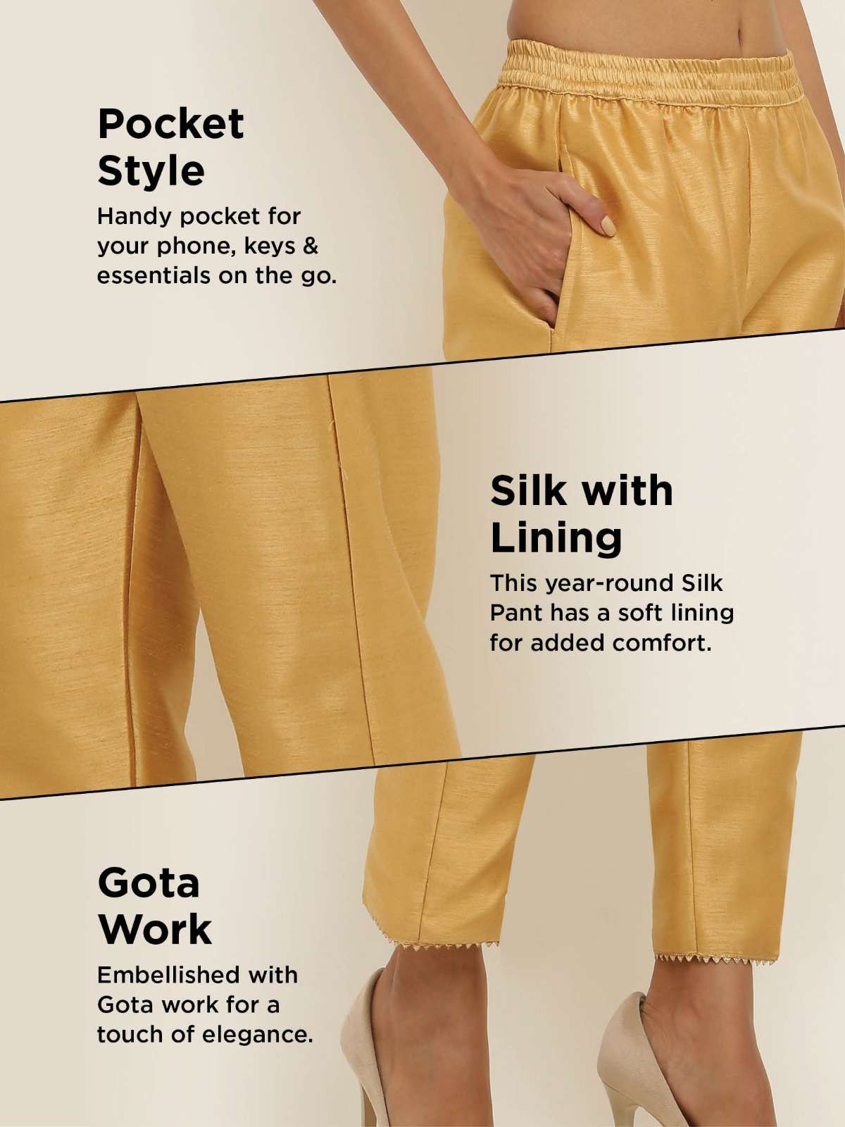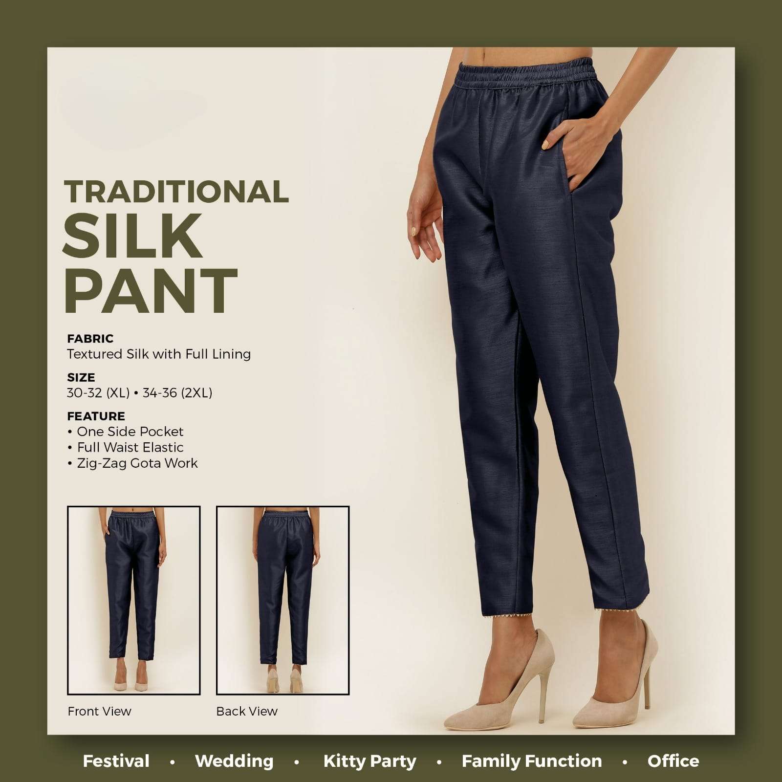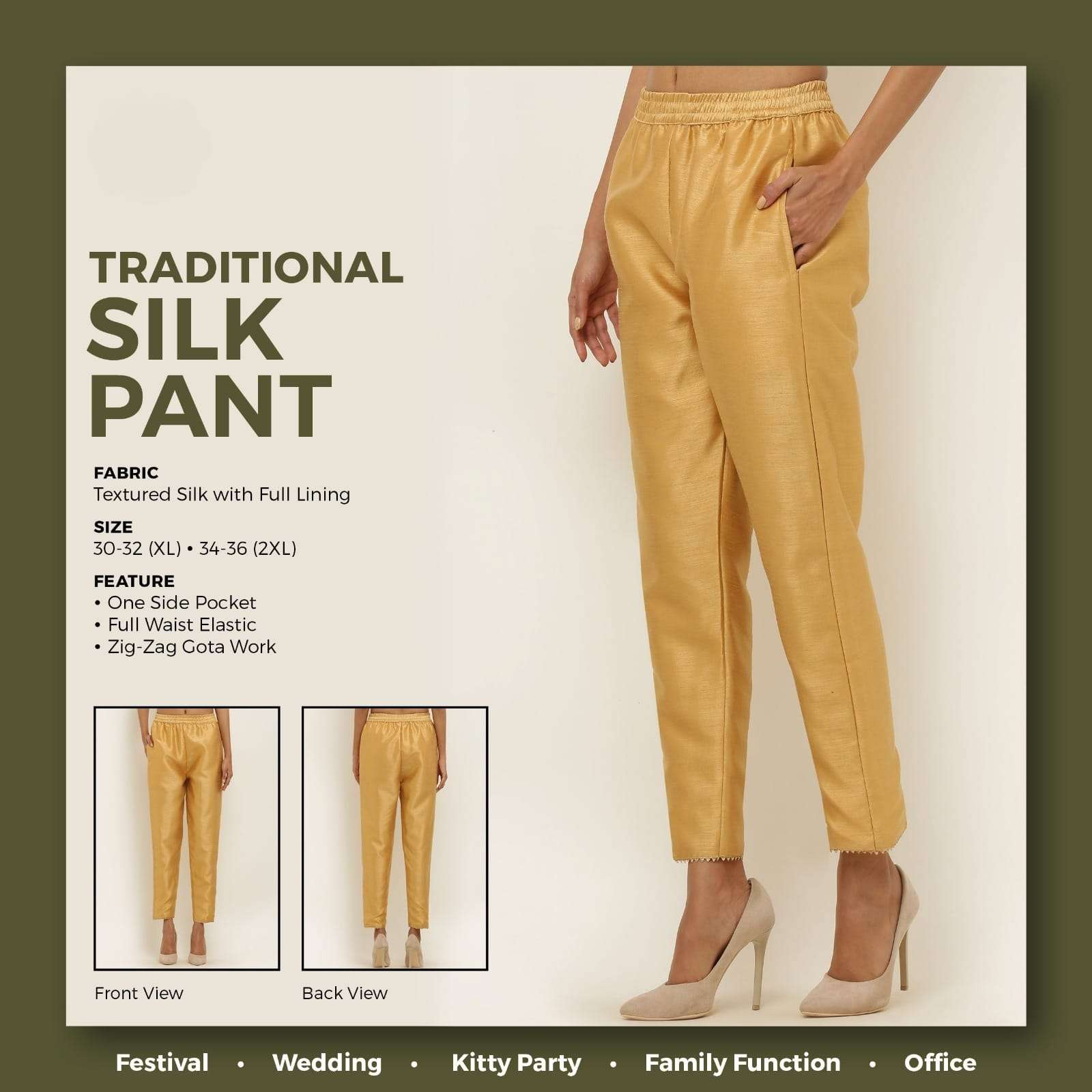 *TRADITIONAL SILK PANT* *Fabric:* Silk with Cotton Lining *Style:* Ethnic *USP:* Zig Zag Gota Work *Feature 1:* Full Waist Elastic *Feature 2:* One Side Pocket