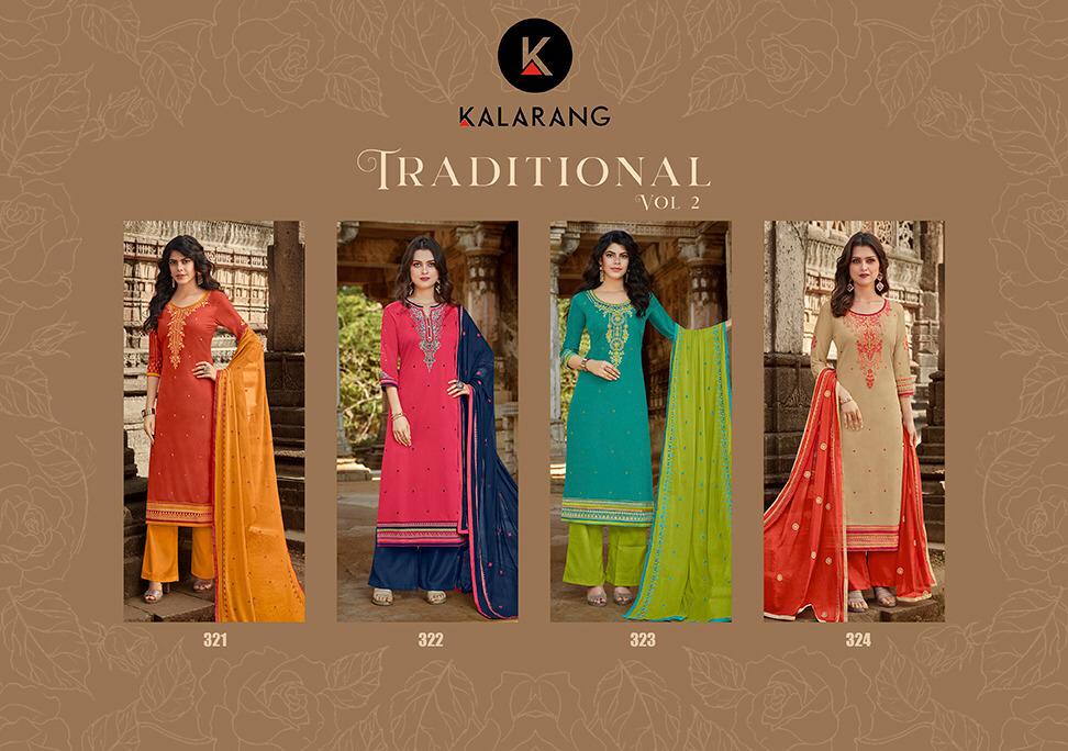 Traditional Vol 2 By Kalarang 321 Series Fancy Jam Silk Cotton Salwar Kameez Catlog Wholesale Dealer Surat