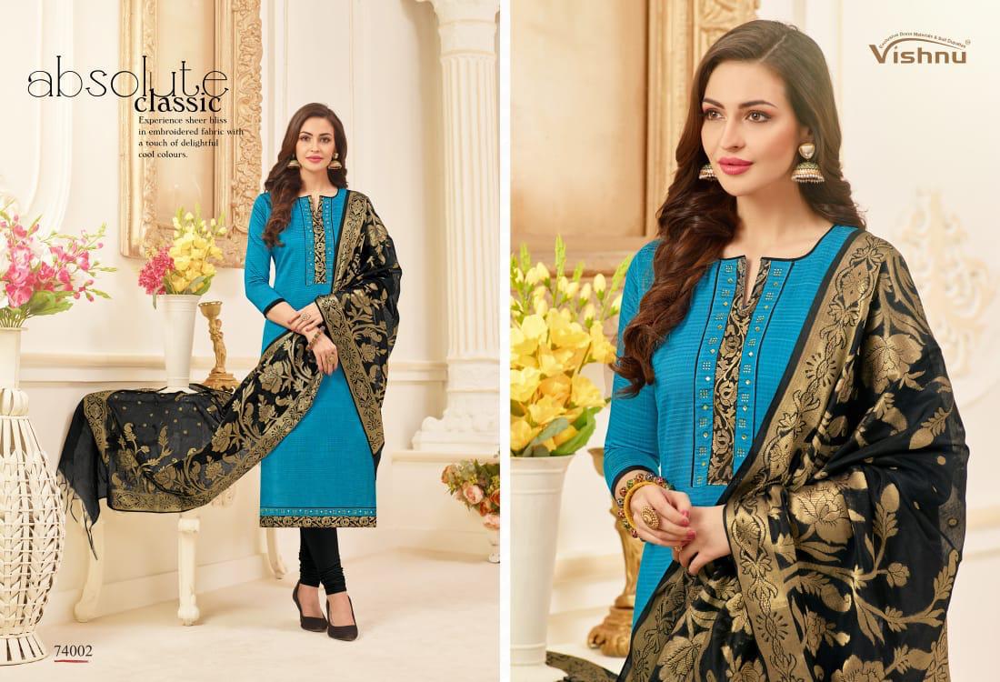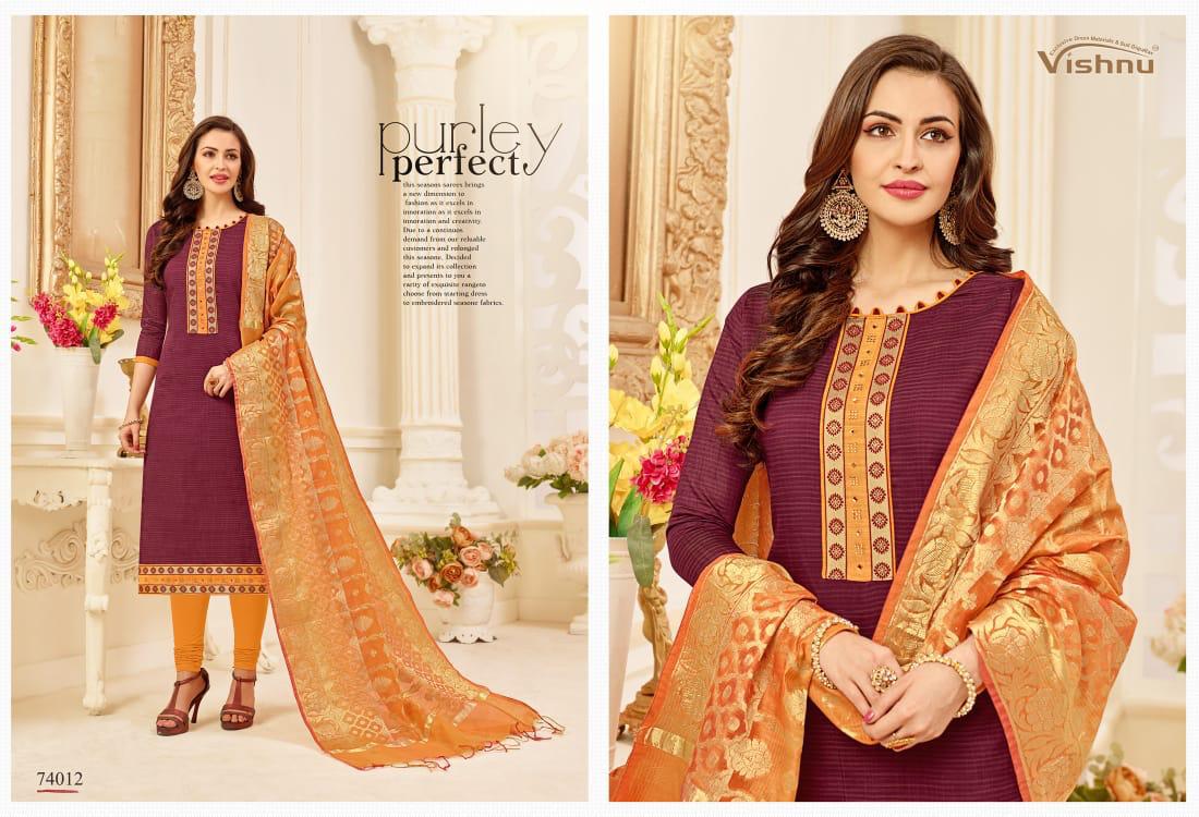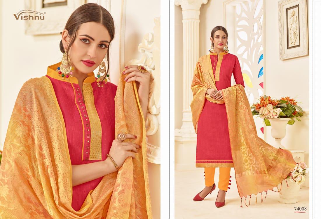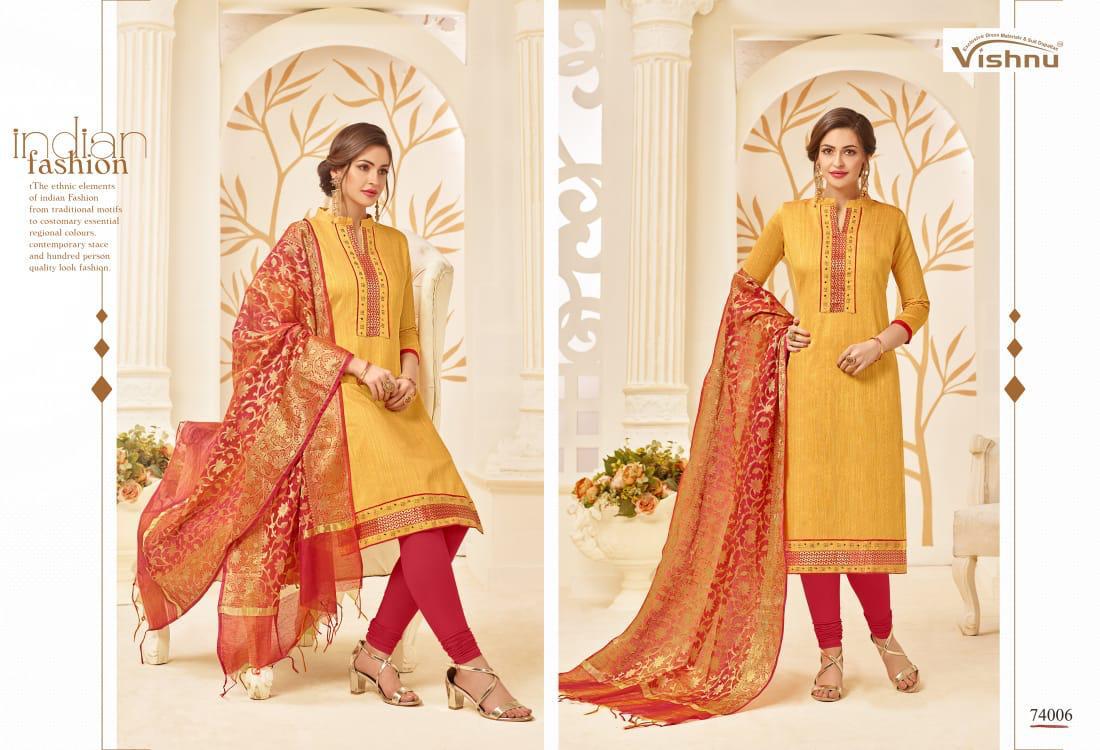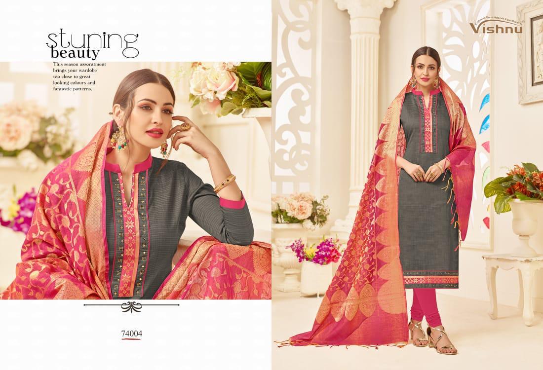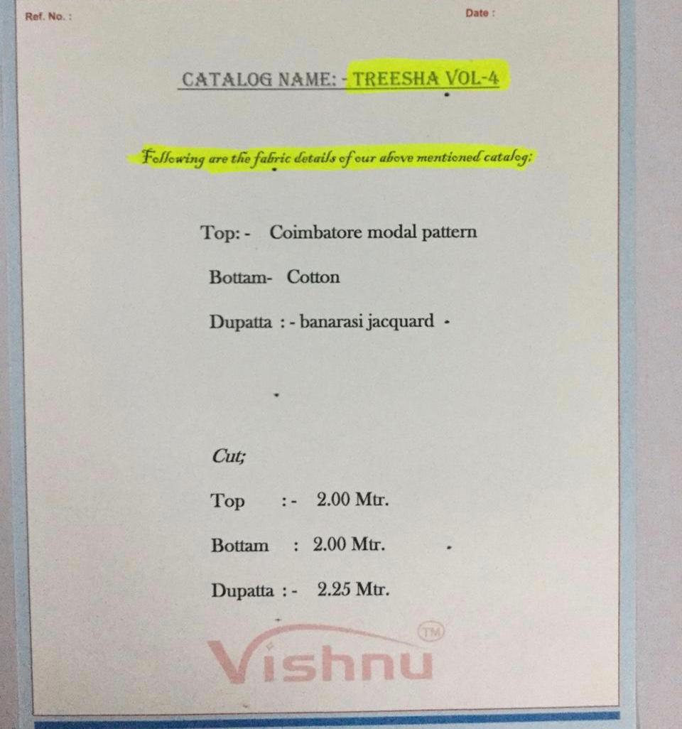 Buy Online Treesha Vol 4 By Vishnu Impex Beautiful Designer Suits With Banarasi Duppata Collection Wholesale Supplier Surat 12 Pcs of Full Catalogue at Wholesale Price. Looking for Treesha Vol 4 By Vishnu Impex Beautiful Designer Suits With Banarasi Duppata Collection Wholesale Supplier Surat Full Catalouge at Best Price? Buy Now Treesha Vol 4 By Vishnu Impex Beautiful Designer Suits With Banarasi Duppata Collection Wholesale Supplier Surat at Wholesale Rate of Rs 9000 with Total 12 Pcs from authroized dealer and supplier of VISHNU IMPEX Brand. Cost of Each piece is just only Rs 750 which is very low and affordable price to resale the product in your retail store ,This is Surat based Wholesale Supplier & Dealer of VISHNU IMPEX Brand. Click on Brand name to Know more about VISHNU IMPEX Brand's products.Call or Whatsapp on 9898838984 for booking or enquiry