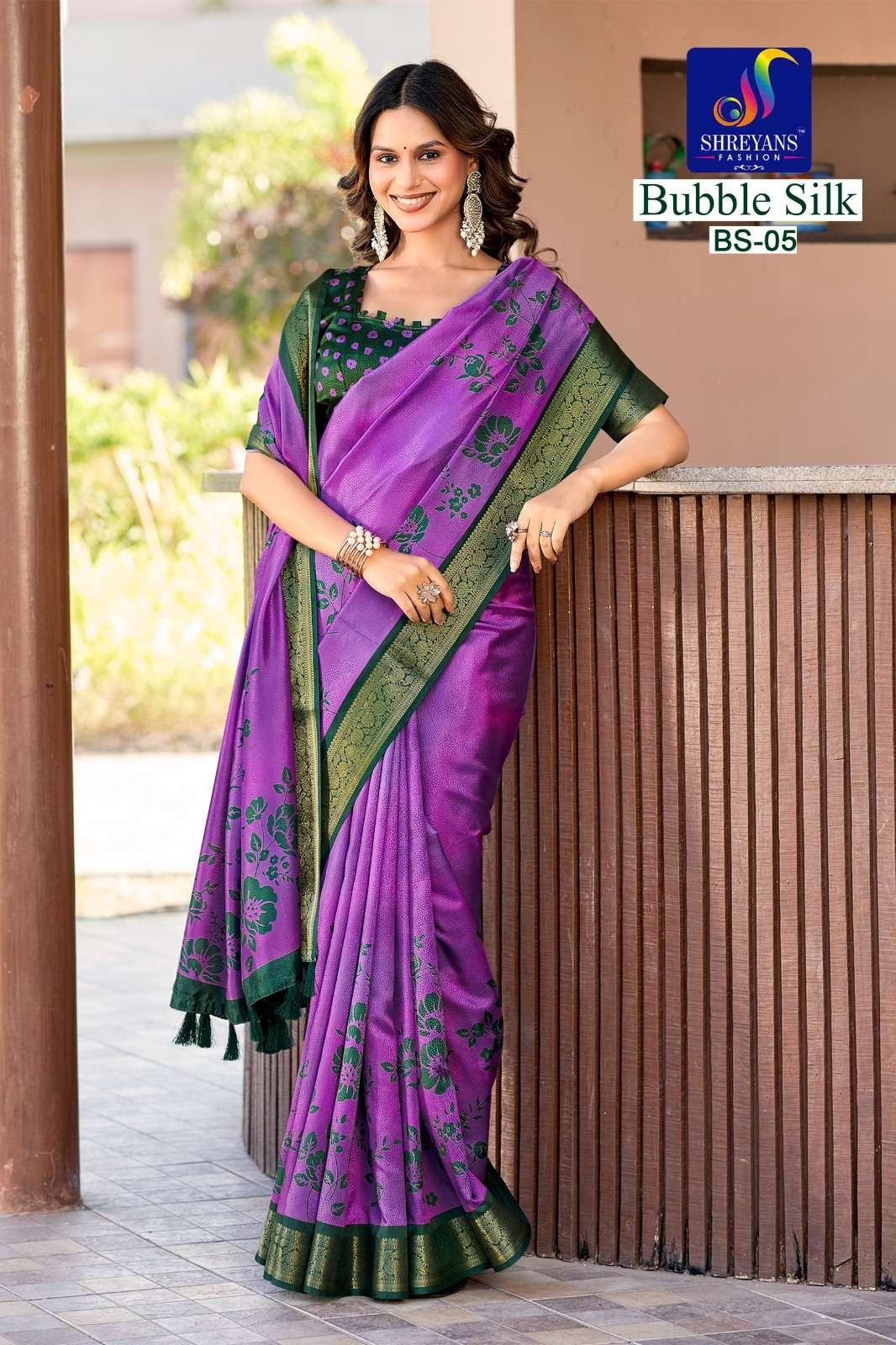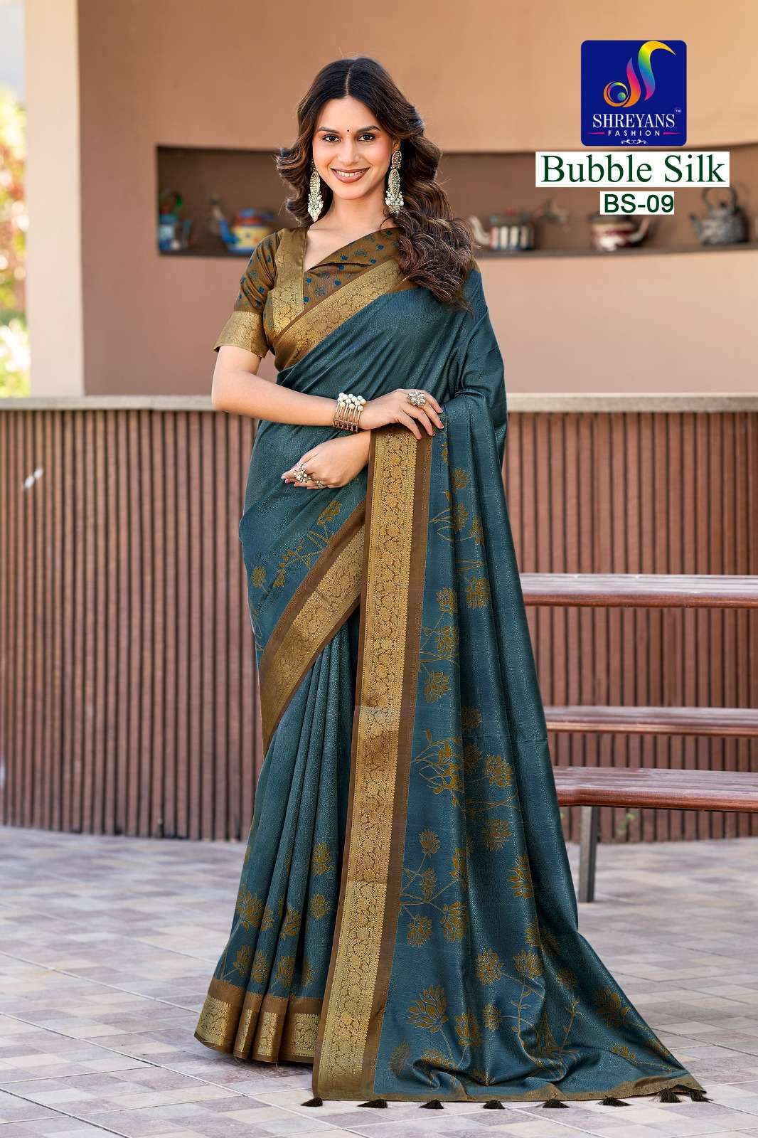 Trendy Soft Cotton Bubble Silk Saree – Light & Stylish Collection