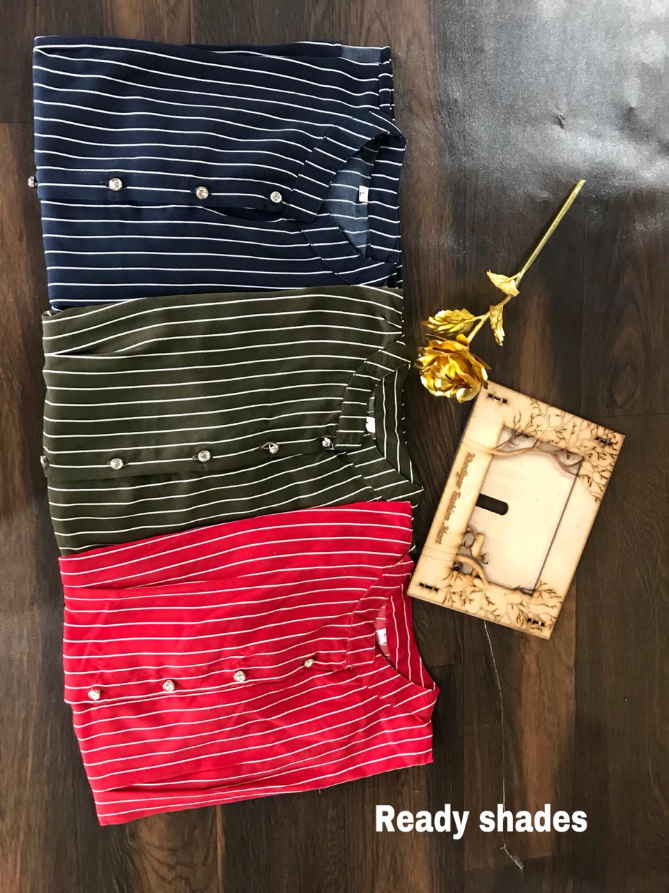 Dear Customers, Welcome to *Trendymist Western wear* We are introducing *Trendymist* new western tops catalog ?Catalogue:- *Trendymist Style-05* ?cloth :- imported soft strips fabric ?concept :-Designer high low chinese kollar shirt Length :-Front-23 inch back-26 inch Size:-M-36 L-38 Xl-40 single Reseller RATE-549+$ SET:-3 pcs(all different colours) 3 COLOURS CATALOGUE ? : Dispatch :- *redy to ship* Happy selling... Always with you...? Team *Trendymist clothing * THANKS SIR/MADAM.. Note:-( on order we make all sizes of this design....) |