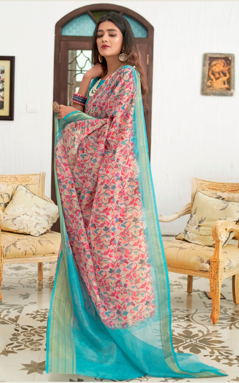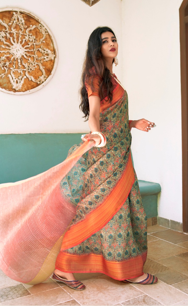 Trisha Digital Linen ( Original Digital) Shangrila Presents Digital Silk Prints On Soft Jequard For The First Time With Weaving Kasab Rich Pallu....!!! 12 pc 12 design 1150/- Set to set only 5% GST |