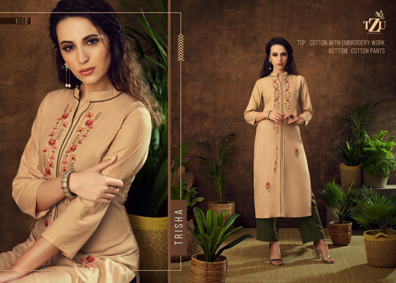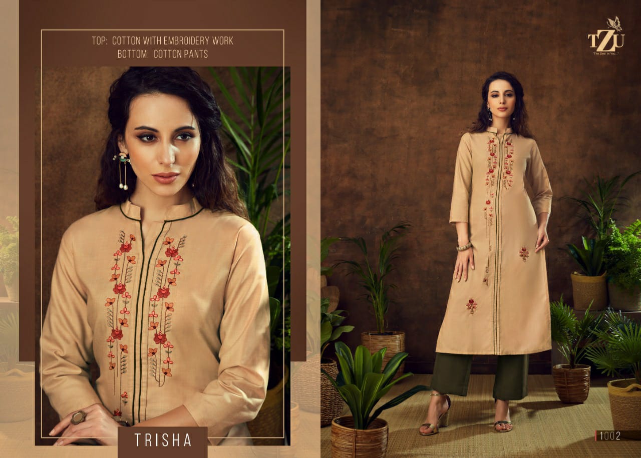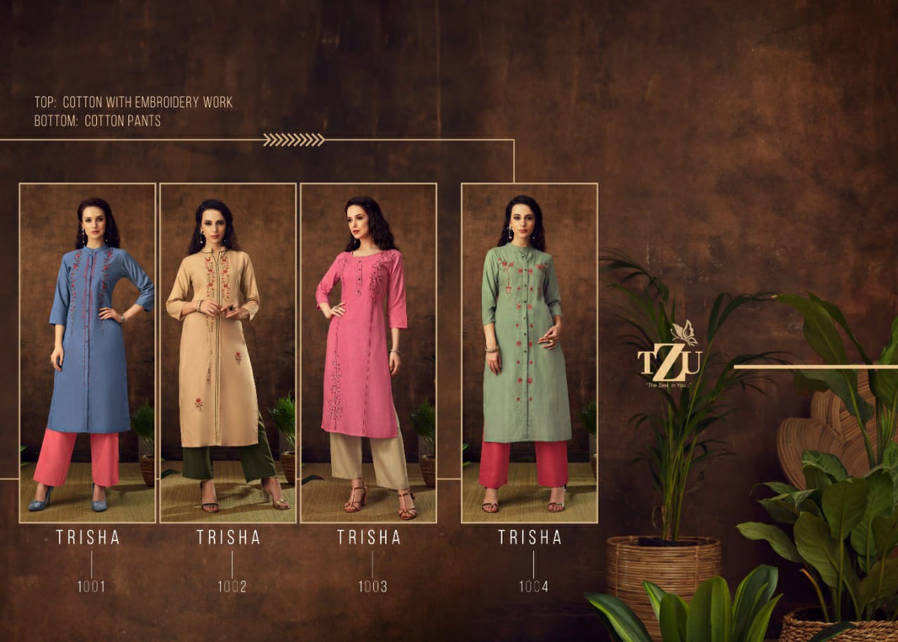 Buy Online Trisha Kurti With Bottom By Tzu Manufacturer Traders Surat 4 Pcs of Full Catalogue at Wholesale Price. Looking for Trisha Kurti With Bottom By Tzu Manufacturer Traders Surat Full Catalouge at Best Price? Buy Now Trisha Kurti With Bottom By Tzu Manufacturer Traders Surat at Wholesale Rate of Rs 3164 with Total 4 Pcs from authroized dealer and supplier of Brand. Cost of Each piece is just only Rs 791 which is very low and affordable price to resale the product in your retail store ,This is Surat based Wholesale Supplier & Dealer of Brand. Click on Brand name to Know more about Brand's products.Call or Whatsapp on 9898838984 for booking or enquiry