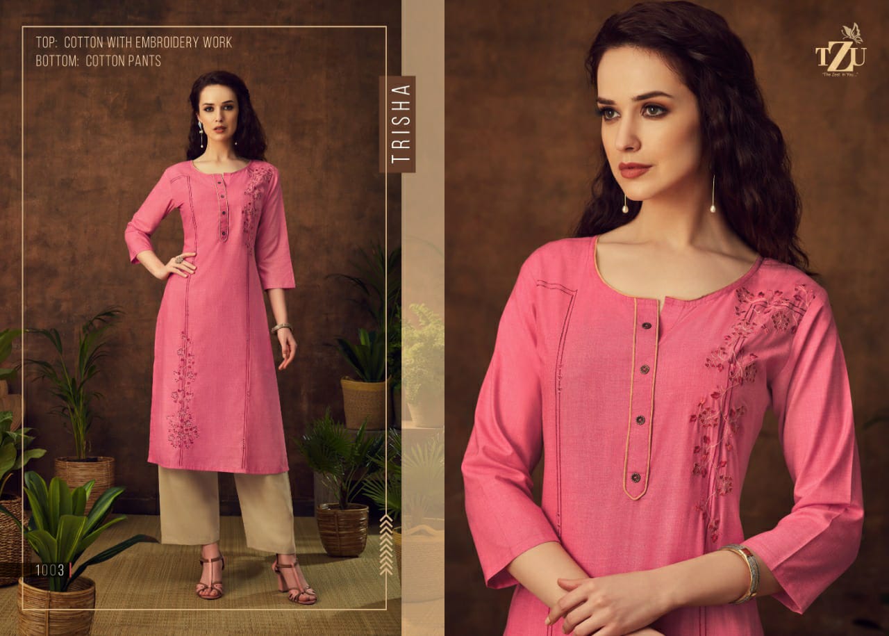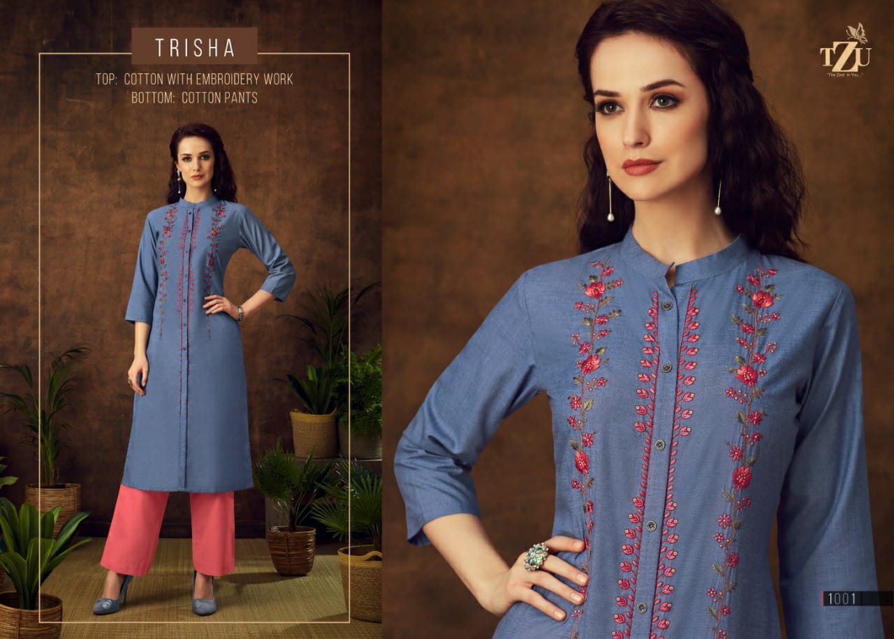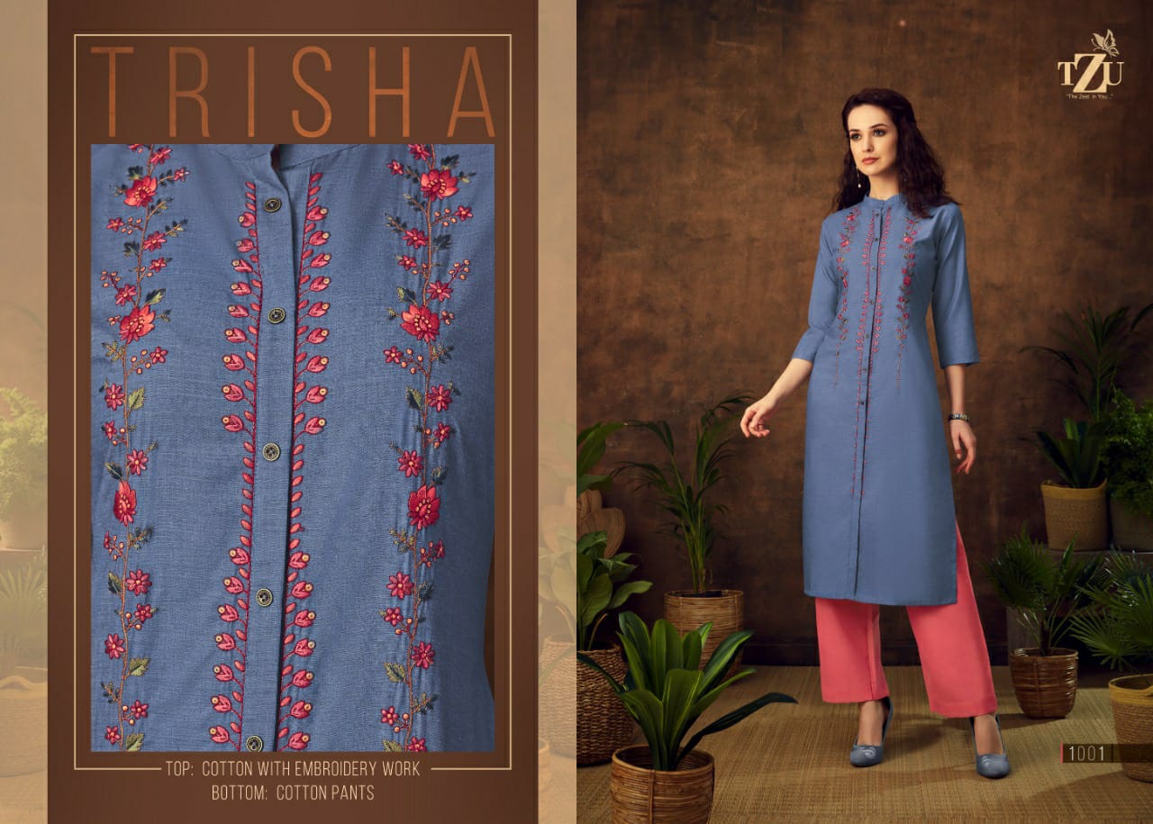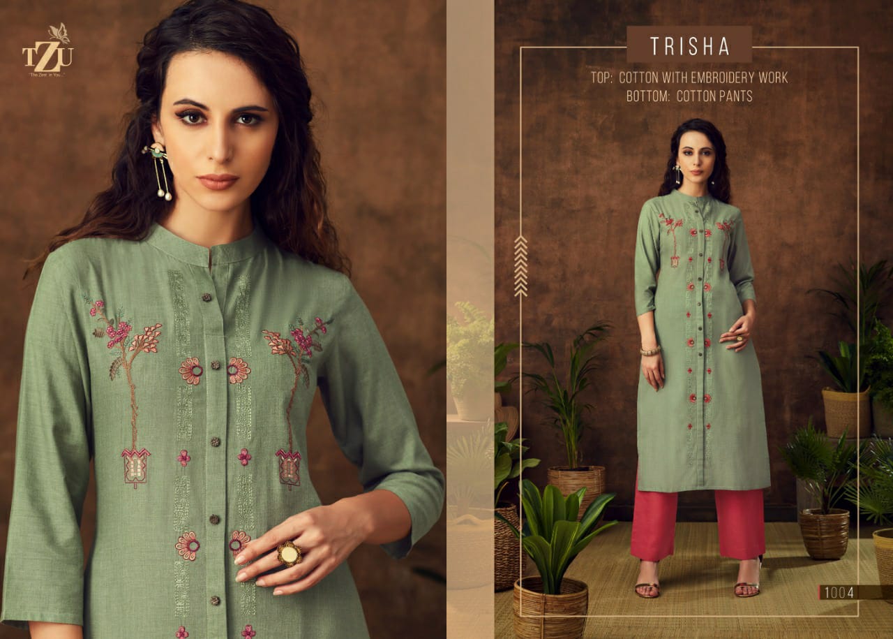 Buy Online Trisha Kurti With Bottom By Tzu Manufacturer Traders Surat 4 Pcs of Full Catalogue at Wholesale Price. Looking for Trisha Kurti With Bottom By Tzu Manufacturer Traders Surat Full Catalouge at Best Price? Buy Now Trisha Kurti With Bottom By Tzu Manufacturer Traders Surat at Wholesale Rate of Rs 3164 with Total 4 Pcs from authroized dealer and supplier of Brand. Cost of Each piece is just only Rs 791 which is very low and affordable price to resale the product in your retail store ,This is Surat based Wholesale Supplier & Dealer of Brand. Click on Brand name to Know more about Brand's products.Call or Whatsapp on 9898838984 for booking or enquiry