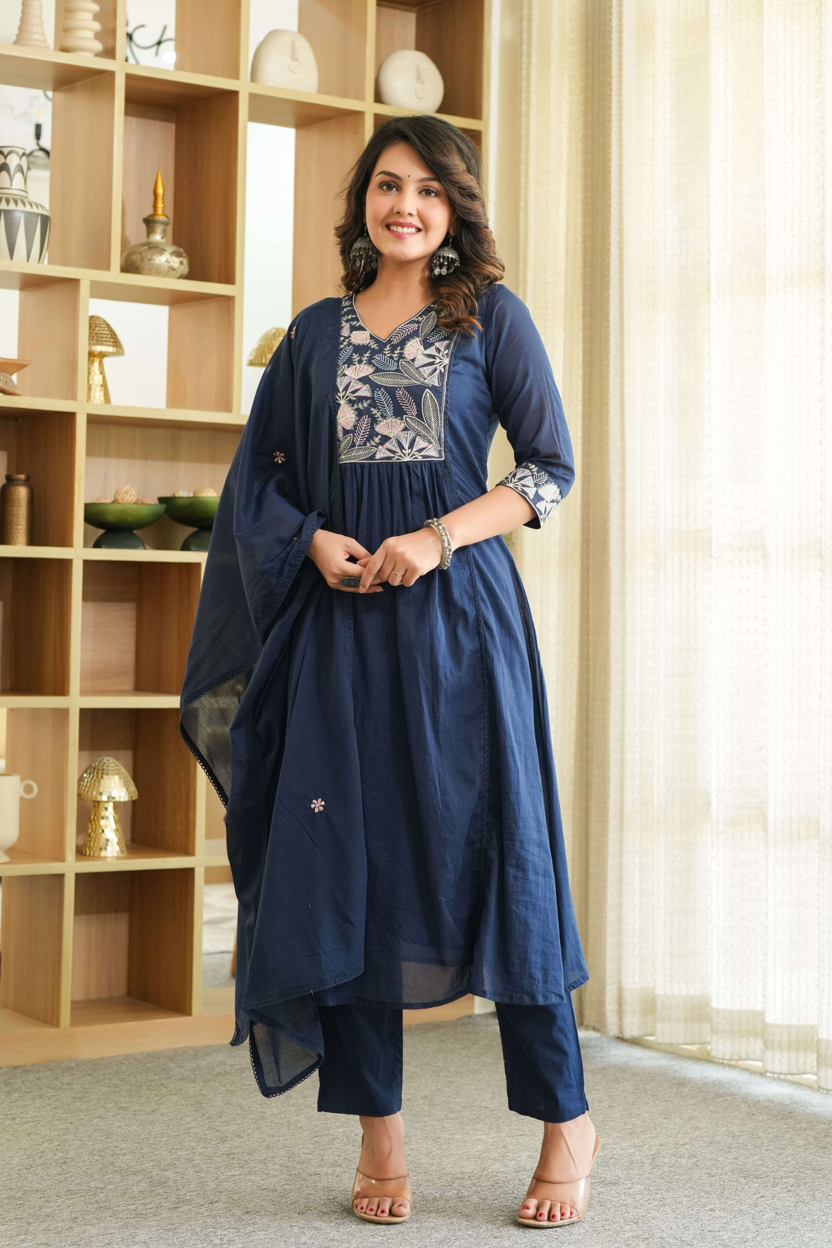 *TOP*👗 - Pure Premium Mul Cotton with Hand work Touchup A line Round 3 pcs set