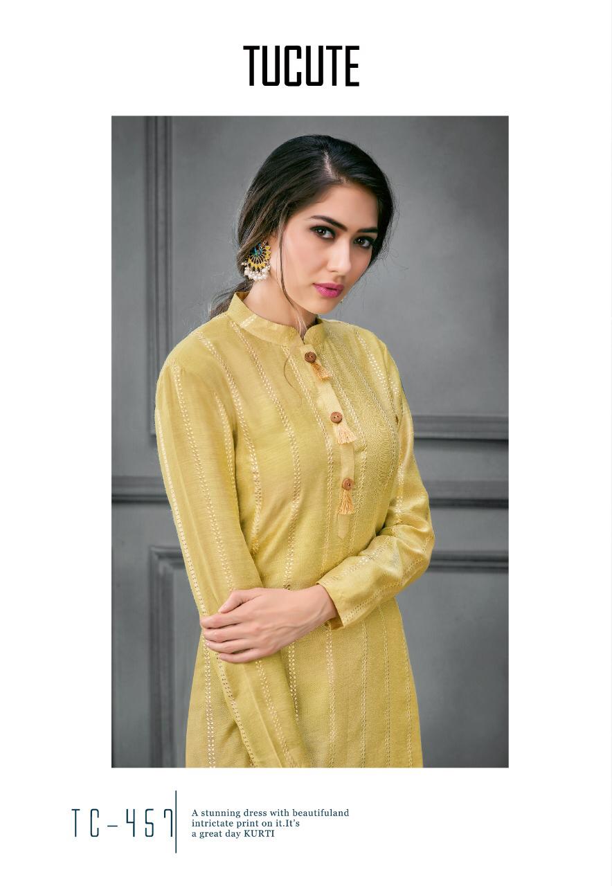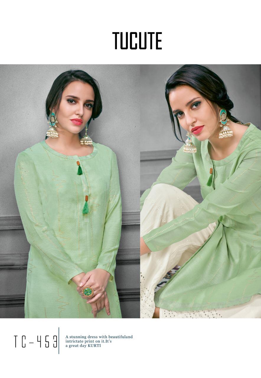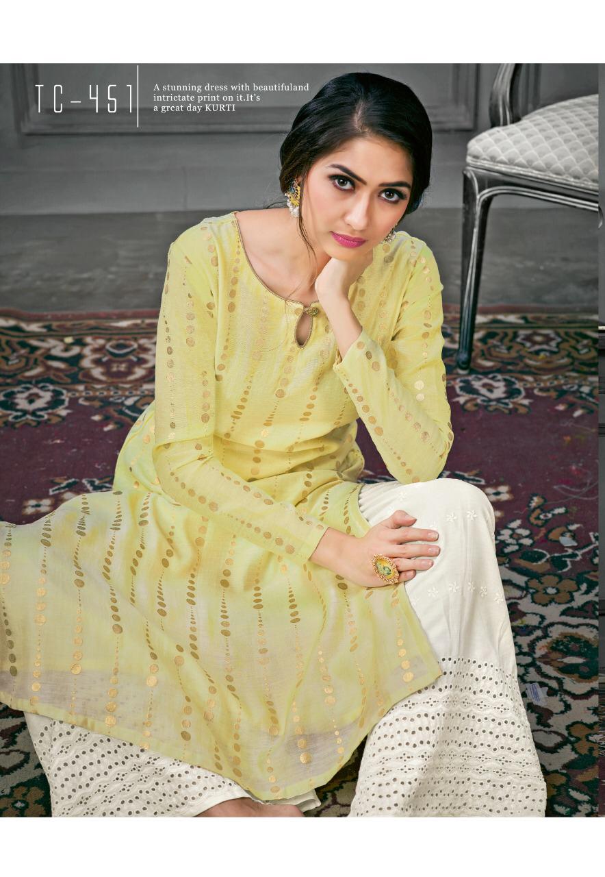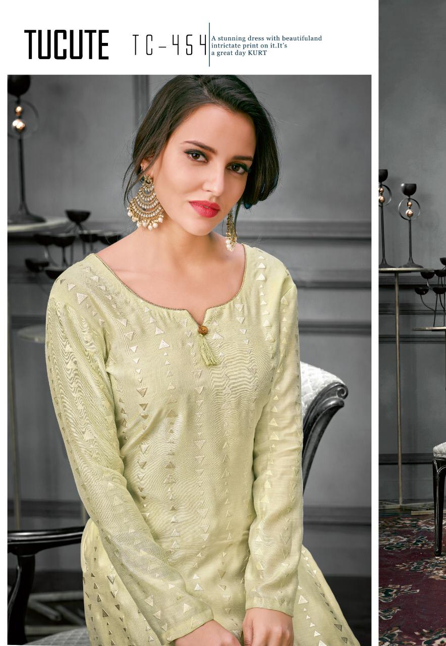 Buy Online Tucute 450 Series By Karma Designer Kurtis With Plazzo Wholesale Supplier Surat 8 Pcs of Full Catalogue at Wholesale Price. Looking for Tucute 450 Series By Karma Designer Kurtis With Plazzo Wholesale Supplier Surat Full Catalouge at Best Price? Buy Now Tucute 450 Series By Karma Designer Kurtis With Plazzo Wholesale Supplier Surat at Wholesale Rate of Rs 7960 with Total 8 Pcs from authroized dealer and supplier of KARMA Brand. Cost of Each piece is just only Rs 995 which is very low and affordable price to resale the product in your retail store ,This is Surat based Wholesale Supplier & Dealer of KARMA Brand. Click on Brand name to Know more about KARMA Brand's products.Call or Whatsapp on 9898838984 for booking or enquiry