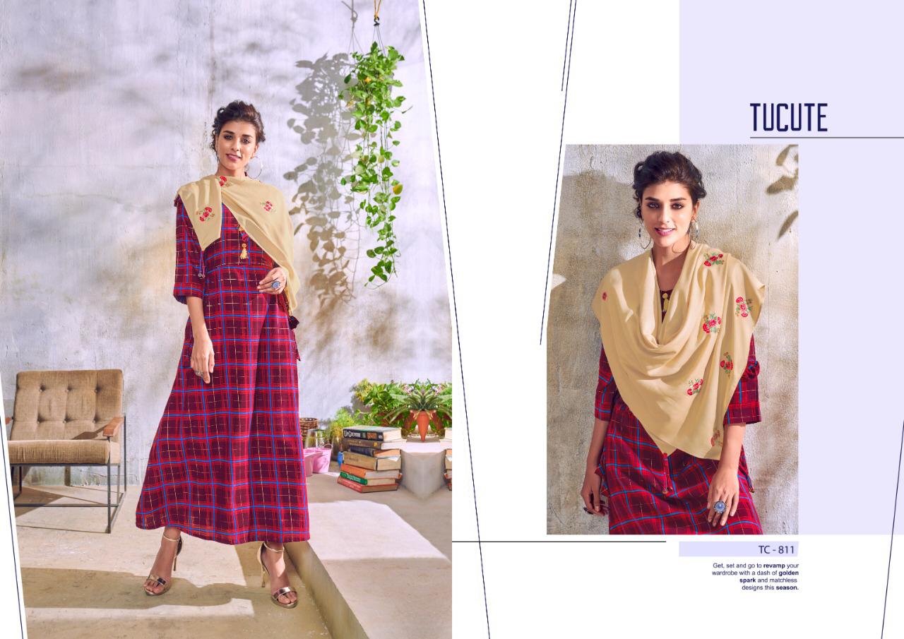 Tucute 810 Series By Karma Designer Kurtis With Scarf Set And Single Wholesale Supplier Surat