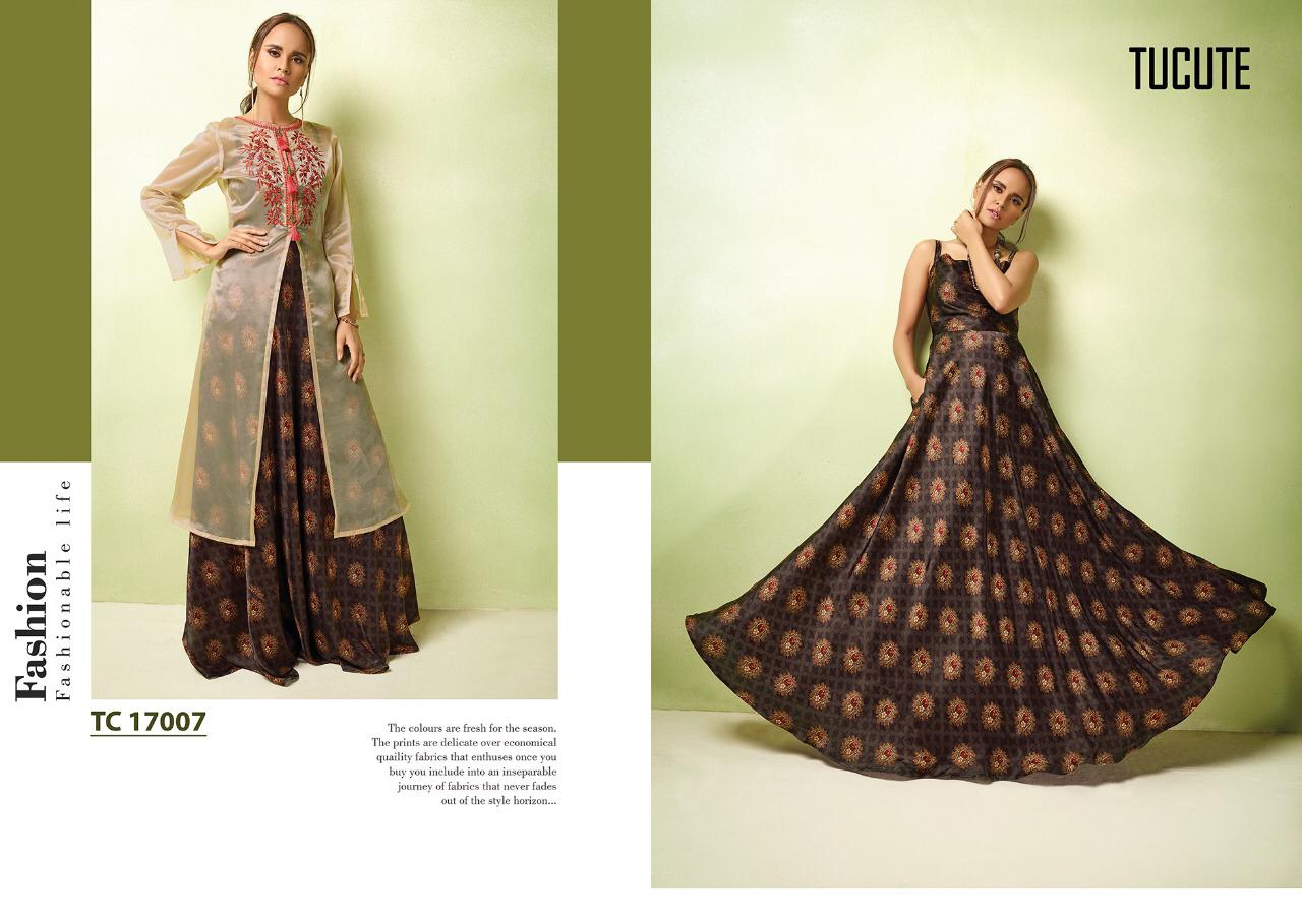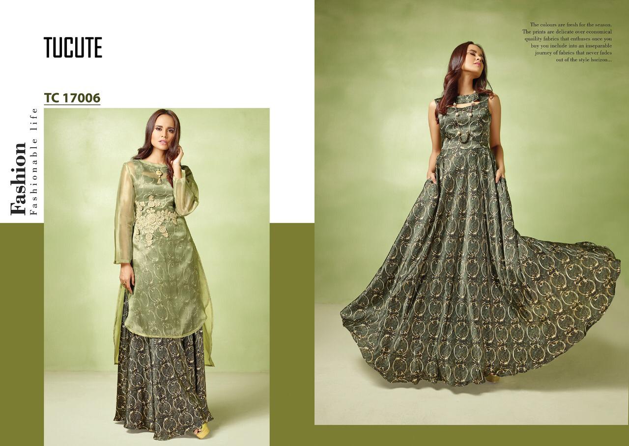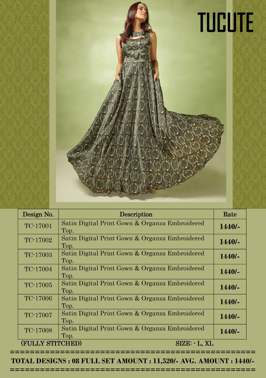 Tucute Series 17001 To 17008 Organza Embroidered Designer Top With Gown Catlog Wholesale Supplier Nd Dealer Nitya Nx Gujarat