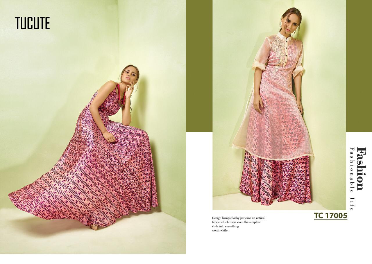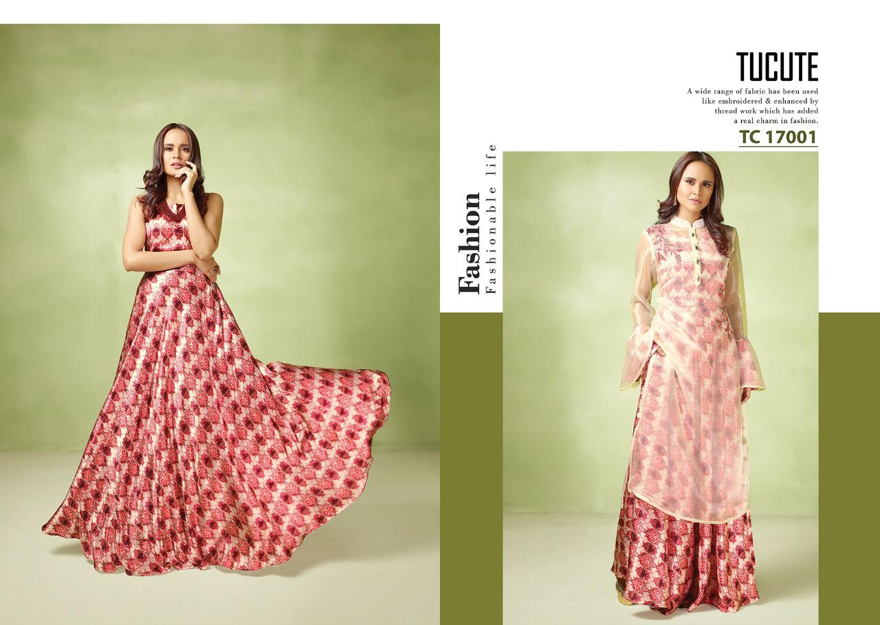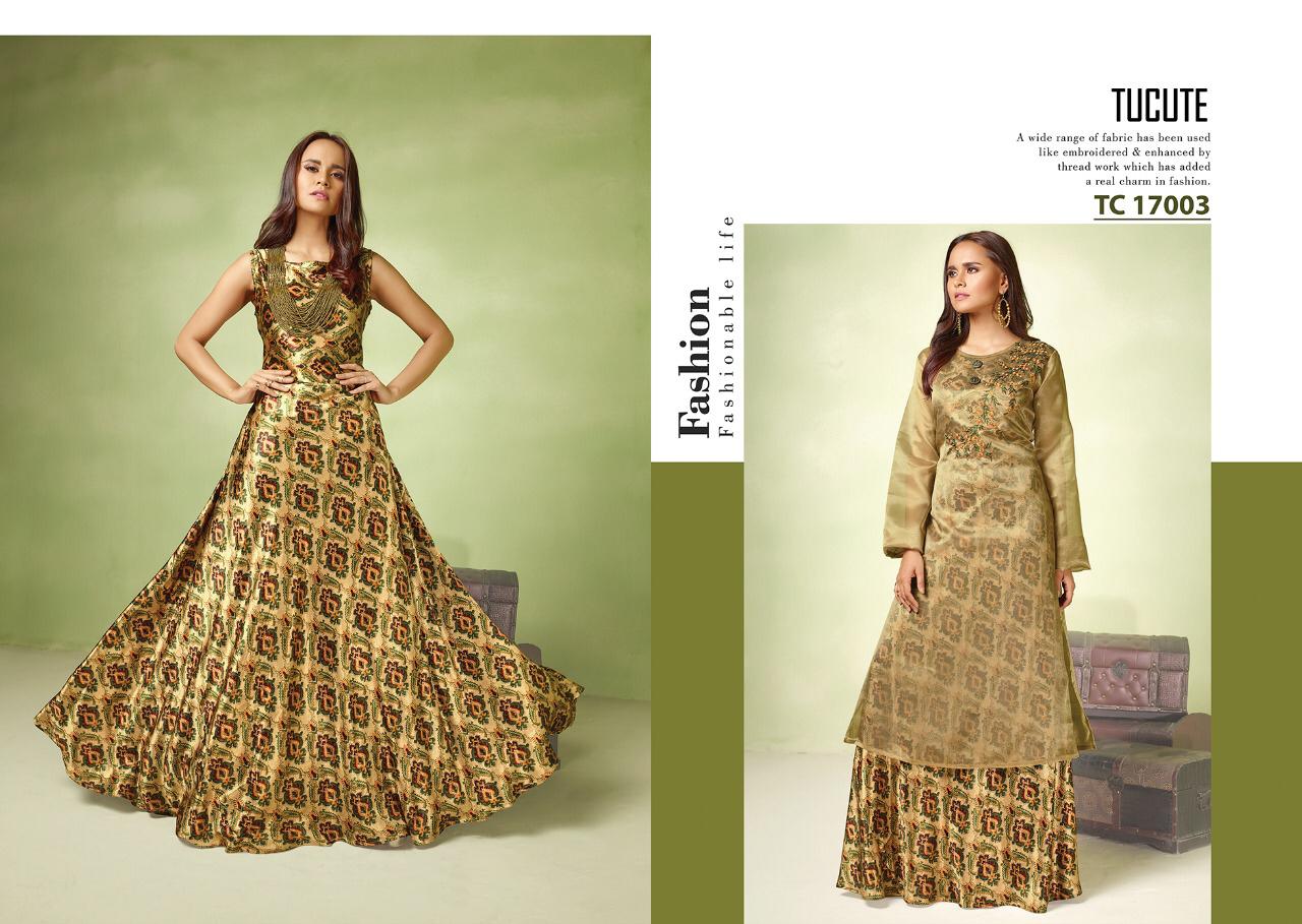 Tucute Series 17001 To 17008 Organza Embroidered Designer Top With Gown Catlog Wholesale Supplier Nd Dealer Nitya Nx Gujarat