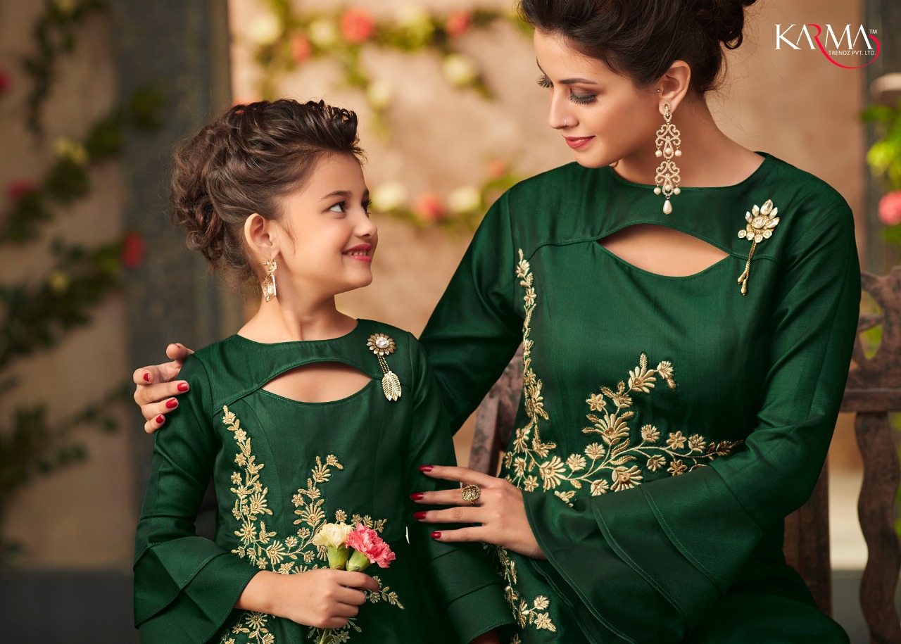 *KARMA TRENDZ* _presents_ *Readymade collections* ? *TUCUTE VOL:-18*? *18000 SERIES..* ? *MOTHER & DAUGHTER DOWN COLLECTION..*? Karma proudly present introductory collection of ready made festive and party wear Gowns not only for the beautiful moms but also the gorgeous daughters to up your style quotient ?Description? ?Fabric: *Satin with embroidered stone work and can can net* ? The Gown Length 54 inches Size -XL-42 ( with two inch margin) KIDS:-Chest 26Â? Length 36Â? *RATE* *MOM:-2700* *KIDS:-1800* ?Beautiful -06 design set *#Festival_collection* *#Fancy accessoires* Single and multipal available Book on whatsapp +919898838984 *Regards* *KARMA TRENDZ* |