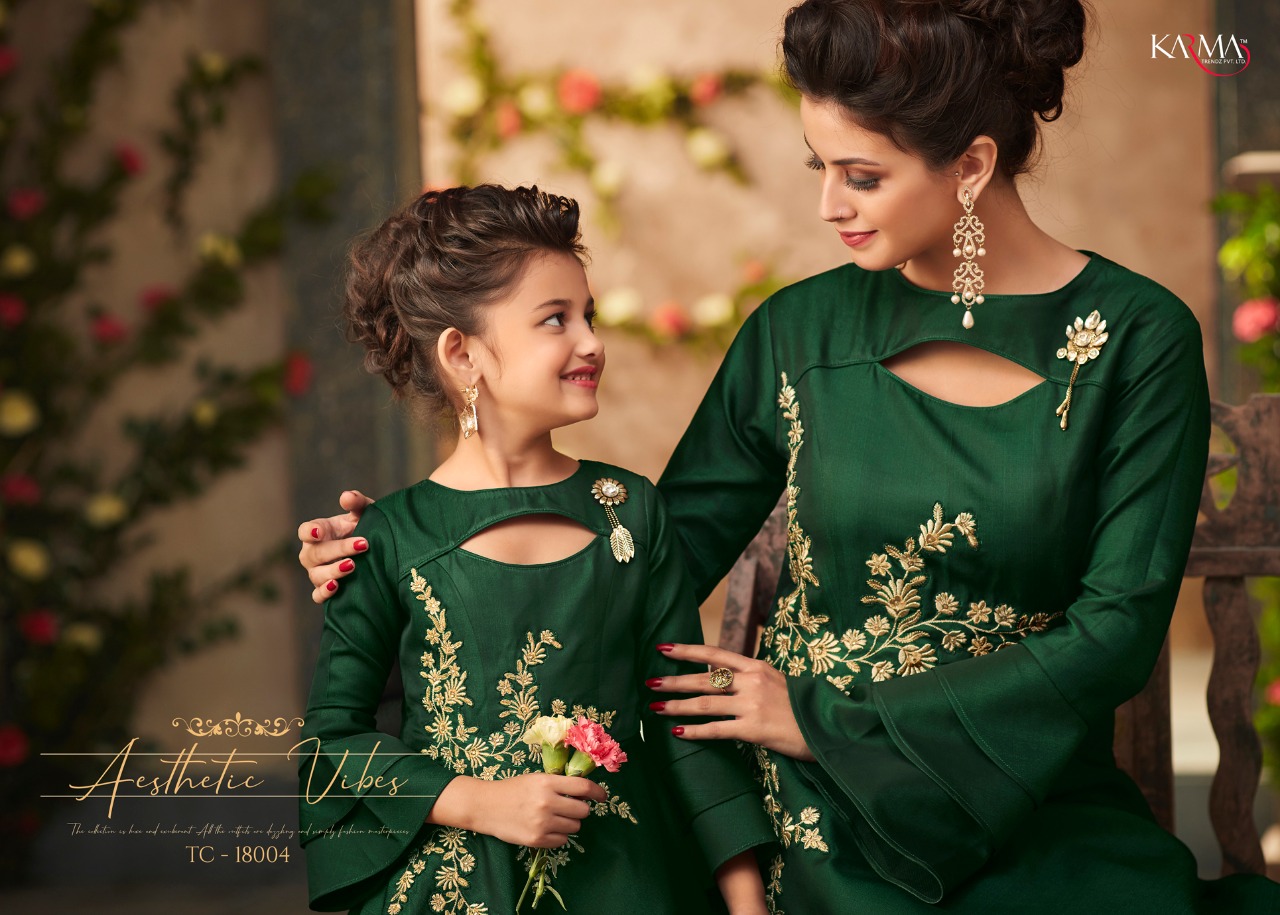 Buy Online Tucute Vol 18 By Karma Trendz 18000 Series Heavy Fancy Designer Party Wear Mother Doughter Gown Catlog Wholesaler Surat 6 Pcs of Full Catalogue at Wholesale Price. Looking for Tucute Vol 18 By Karma Trendz 18000 Series Heavy Fancy Designer Party Wear Mother Doughter Gown Catlog Wholesaler Surat Full Catalouge at Best Price? Buy Now Tucute Vol 18 By Karma Trendz 18000 Series Heavy Fancy Designer Party Wear Mother Doughter Gown Catlog Wholesaler Surat at Wholesale Rate of Rs 16200 with Total 6 Pcs from authroized dealer and supplier of KARMA Brand. Cost of Each piece is just only Rs 2700 which is very low and affordable price to resale the product in your retail store ,This is Surat based Wholesale Supplier & Dealer of KARMA Brand. Click on Brand name to Know more about KARMA Brand's products.Call or Whatsapp on 9898838984 for booking or enquiry