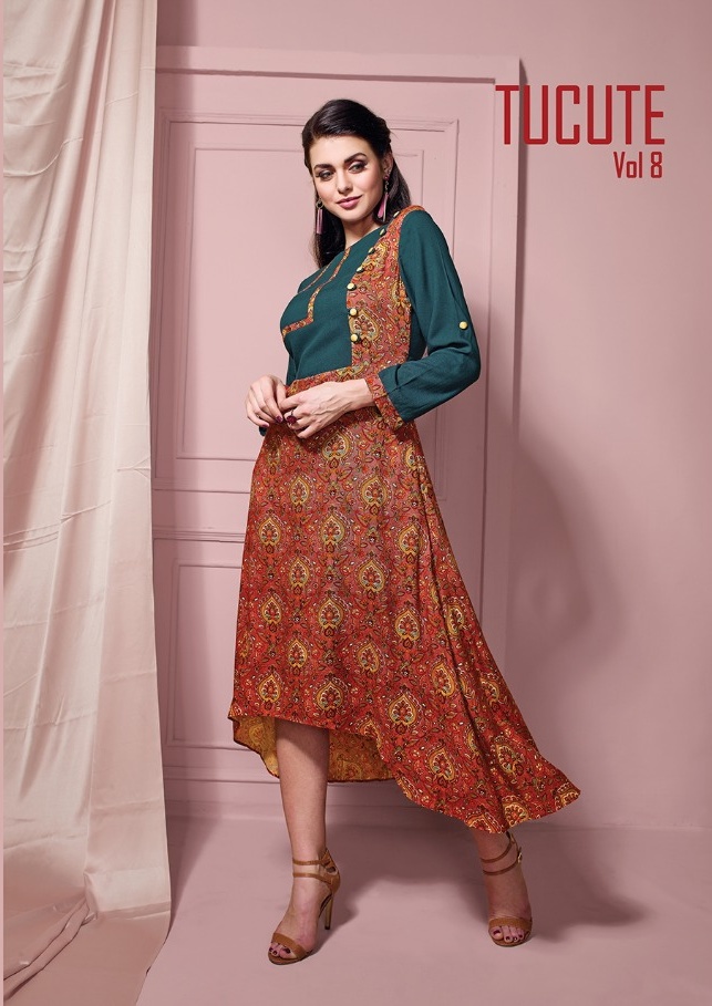 Tucute Vol 8 By Karma Series 8001 Reyon Printed Designer Kurtis Catalog Wholesale Supplier And Dealer Gujarat