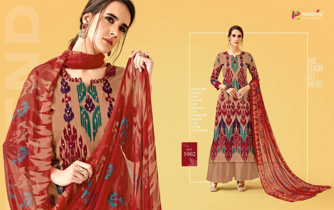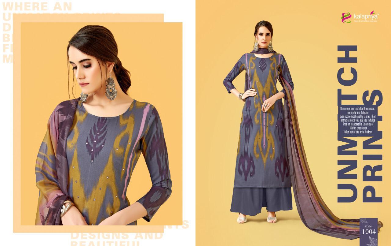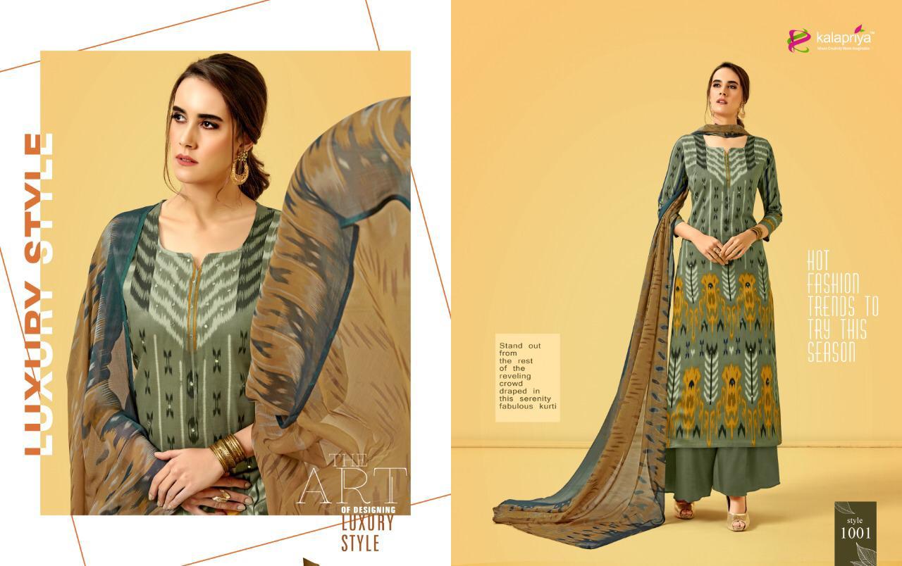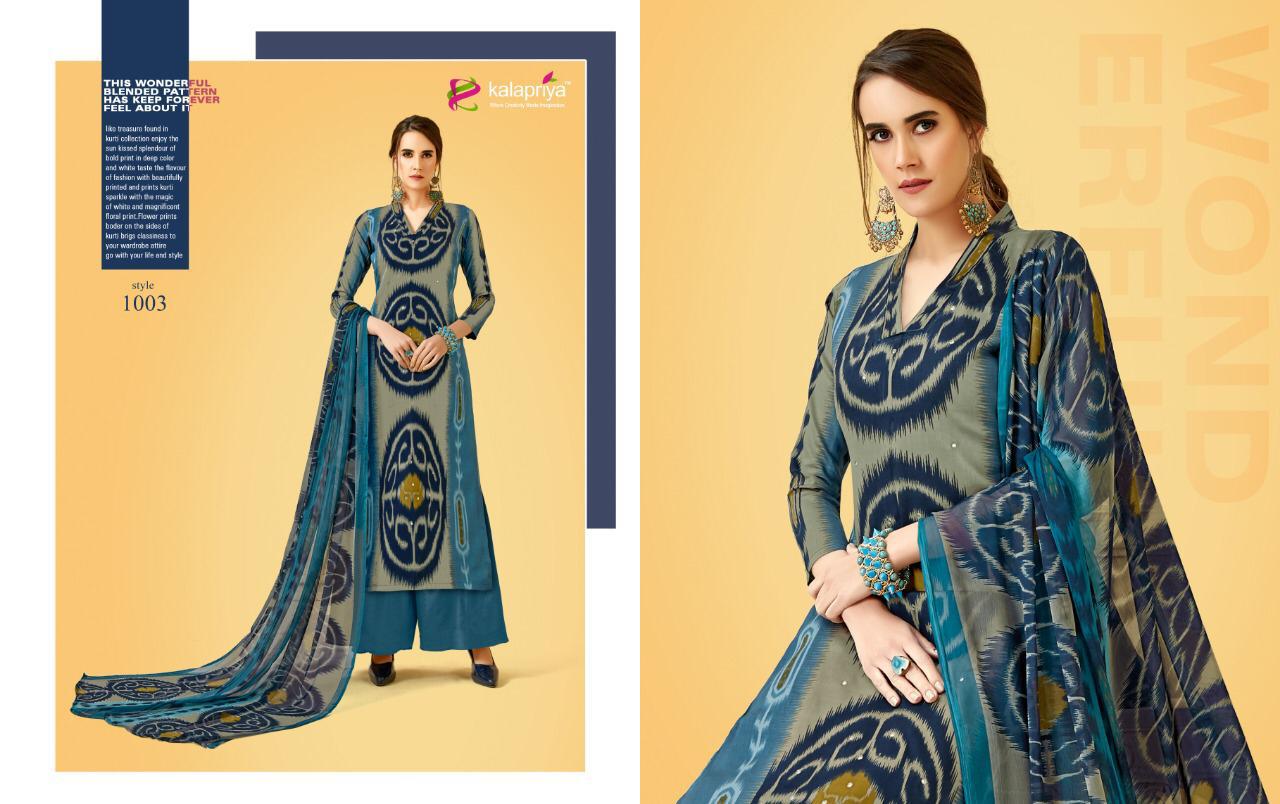 Buy Online Tuk Tuk By Kalapriya 1001 Series Fancy Heavy Jam Printed Salwar Kameez Wholesaler Surat 7 Pcs of Full Catalogue at Wholesale Price. Looking for Tuk Tuk By Kalapriya 1001 Series Fancy Heavy Jam Printed Salwar Kameez Wholesaler Surat Full Catalouge at Best Price? Buy Now Tuk Tuk By Kalapriya 1001 Series Fancy Heavy Jam Printed Salwar Kameez Wholesaler Surat at Wholesale Rate of Rs 4025 with Total 7 Pcs from authroized dealer and supplier of KALAPRIYA Brand. Cost of Each piece is just only Rs 575 which is very low and affordable price to resale the product in your retail store ,This is Surat based Wholesale Supplier & Dealer of KALAPRIYA Brand. Click on Brand name to Know more about KALAPRIYA Brand's products.Call or Whatsapp on 9898838984 for booking or enquiry