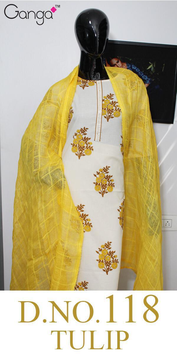 Buy Online Tulip 118 By Ganga Fancy Super Cotton Printed Salwar Kameez Catlog Wholesaler Surat 5 Pcs of Full Catalogue at Wholesale Price. Looking for Tulip 118 By Ganga Fancy Super Cotton Printed Salwar Kameez Catlog Wholesaler Surat Full Catalouge at Best Price? Buy Now Tulip 118 By Ganga Fancy Super Cotton Printed Salwar Kameez Catlog Wholesaler Surat at Wholesale Rate of Rs 5755 with Total 5 Pcs from authroized dealer and supplier of GANGA Brand. Cost of Each piece is just only Rs 1151 which is very low and affordable price to resale the product in your retail store ,This is Surat based Wholesale Supplier & Dealer of GANGA Brand. Click on Brand name to Know more about GANGA Brand's products.Call or Whatsapp on 9898838984 for booking or enquiry