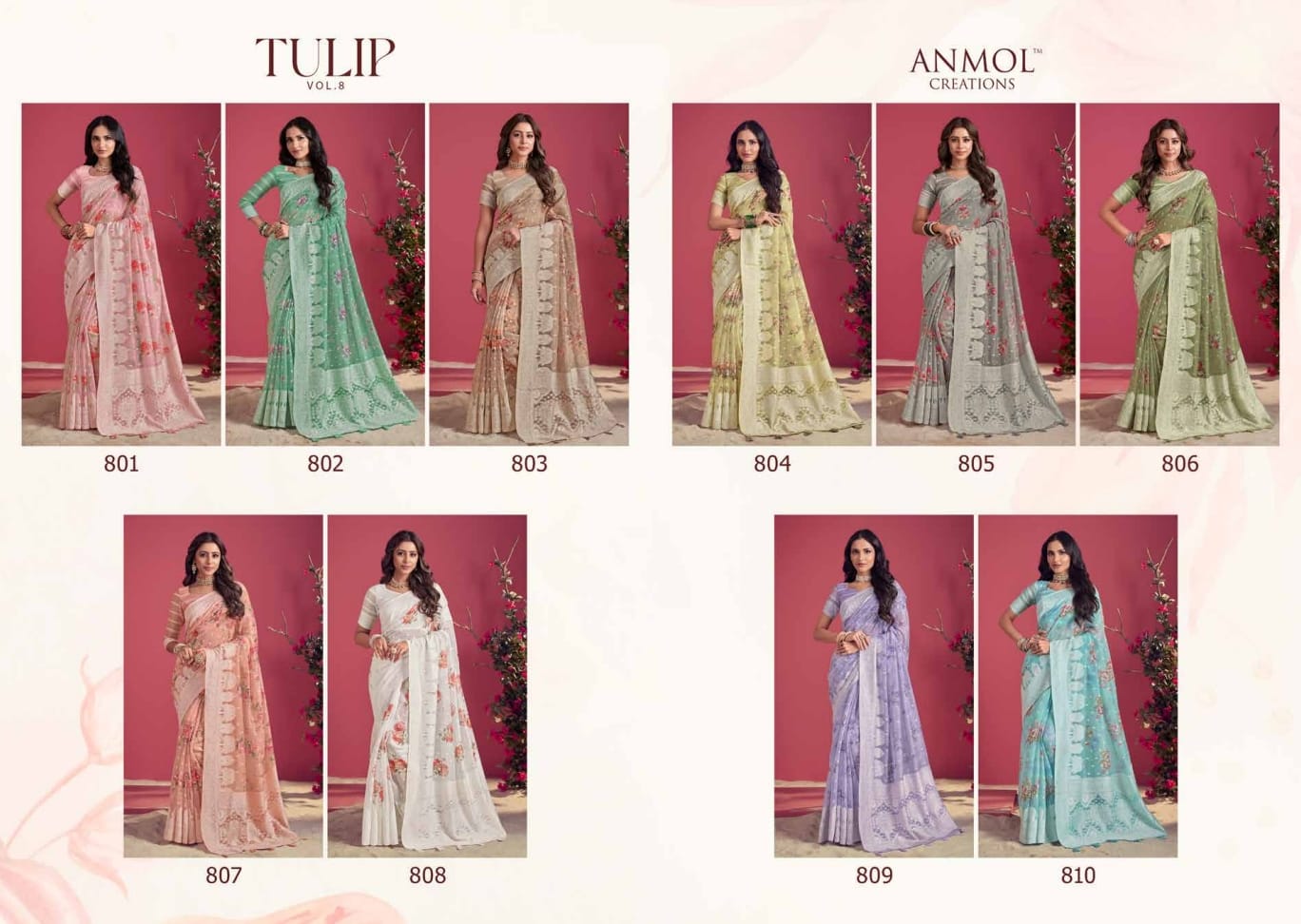 Tulip Vol 8 Anmol Creation Designer Silk Digital Print Sarees Collection Surat