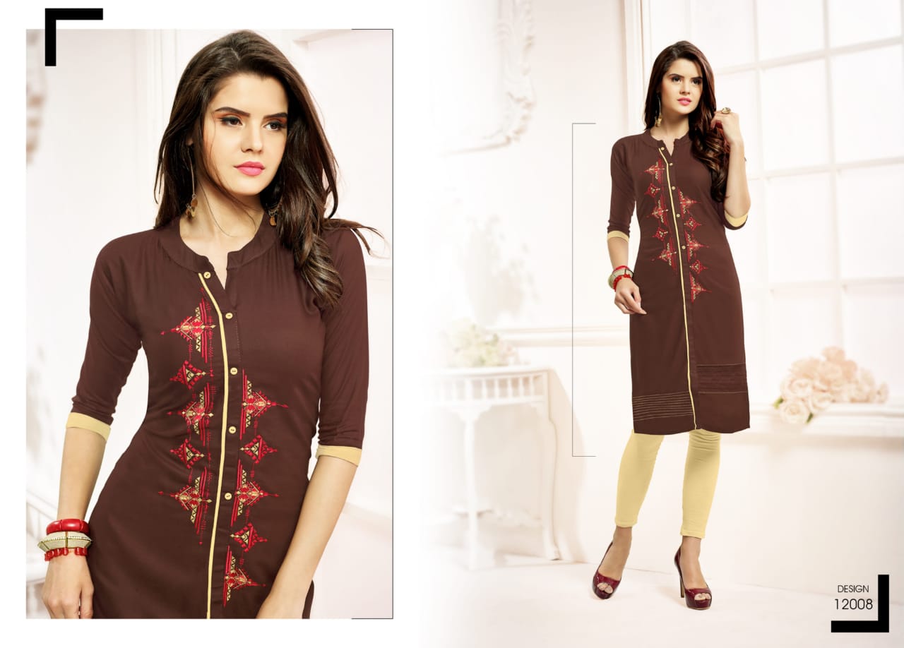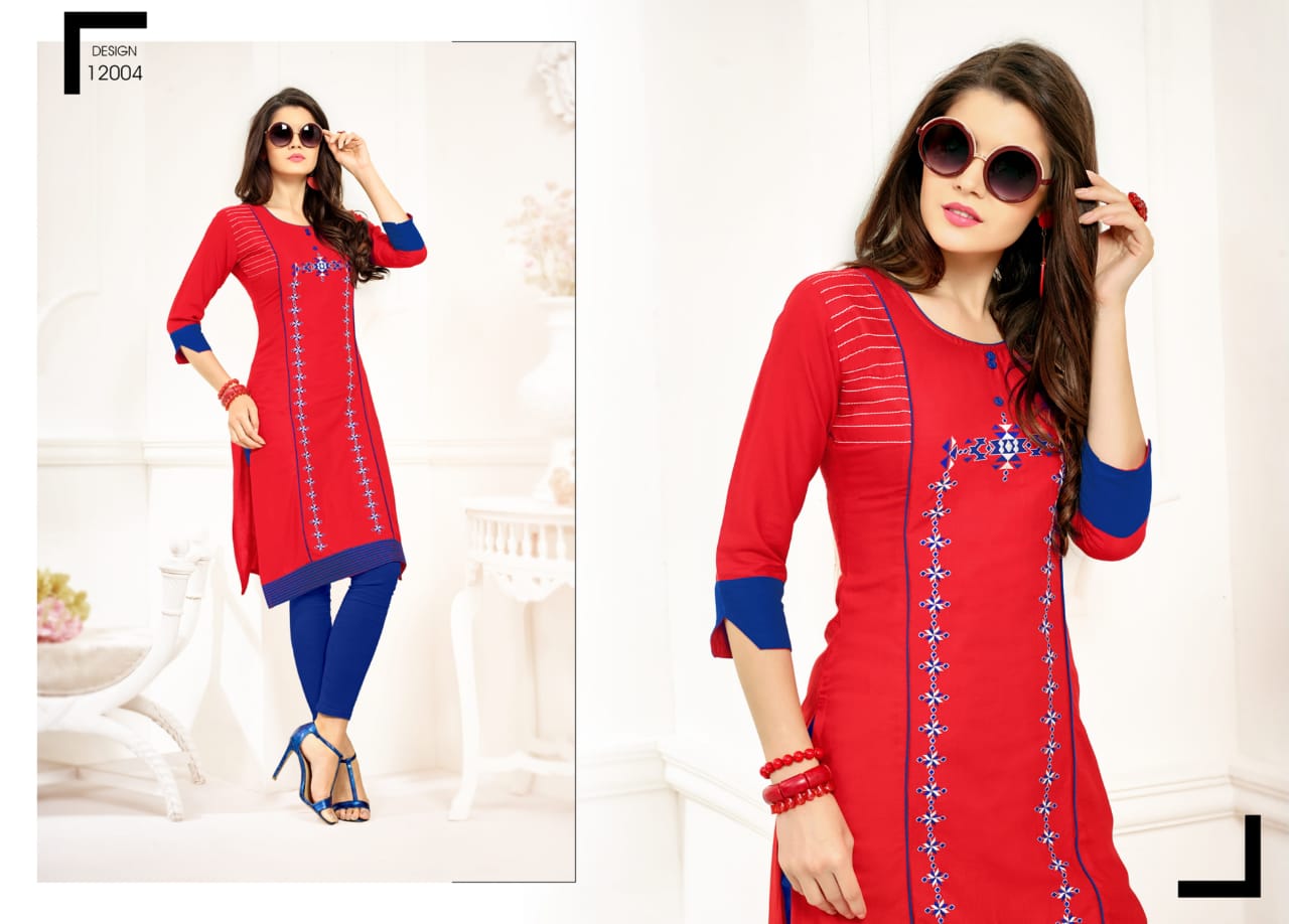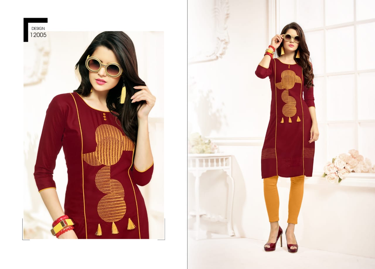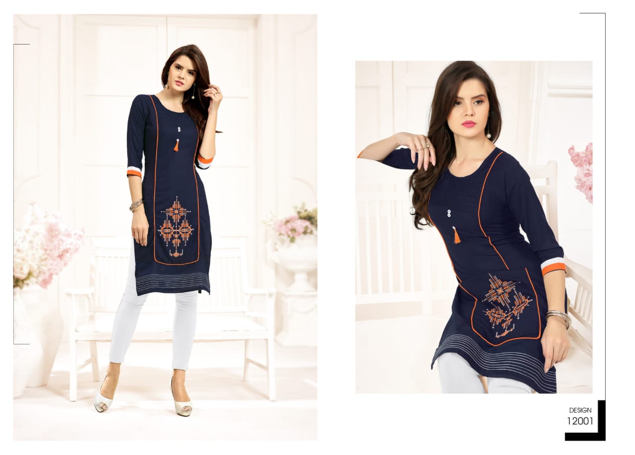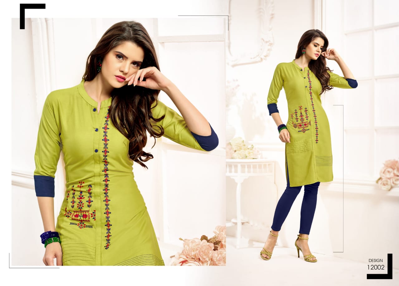 Buy Online Tunic House Zoomer Vol 2 12001 Series Reyon Kurti Dealer 10 Pcs of Full Catalogue at Wholesale Price. Looking for Tunic House Zoomer Vol 2 12001 Series Reyon Kurti Dealer Full Catalouge at Best Price? Buy Now Tunic House Zoomer Vol 2 12001 Series Reyon Kurti Dealer at Wholesale Rate of Rs 4510 with Total 10 Pcs from authroized dealer and supplier of TUNIC HOUSE Brand. Cost of Each piece is just only Rs 451 which is very low and affordable price to resale the product in your retail store ,This is Surat based Wholesale Supplier & Dealer of TUNIC HOUSE Brand. Click on Brand name to Know more about TUNIC HOUSE Brand's products.Call or Whatsapp on 9898838984 for booking or enquiry