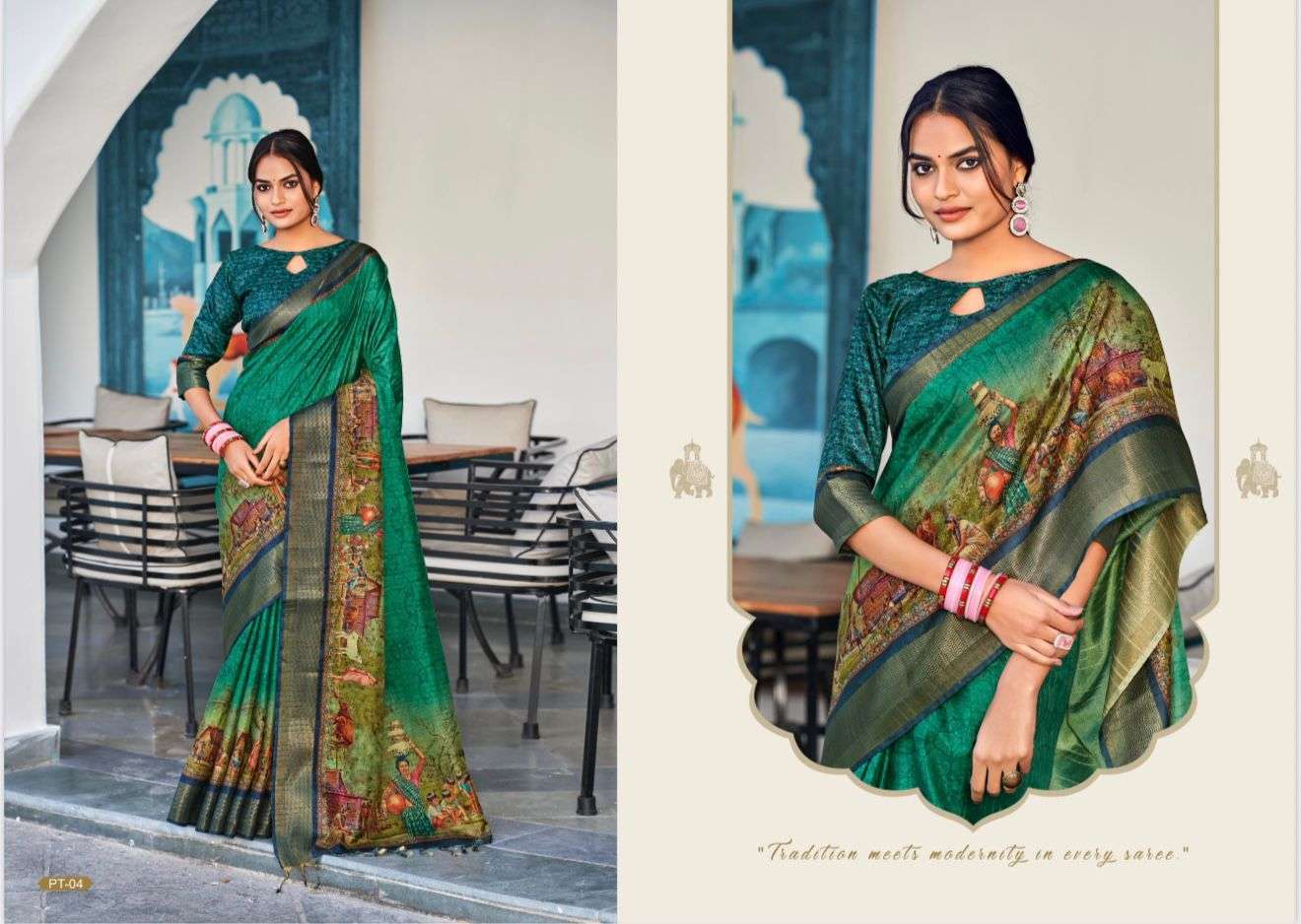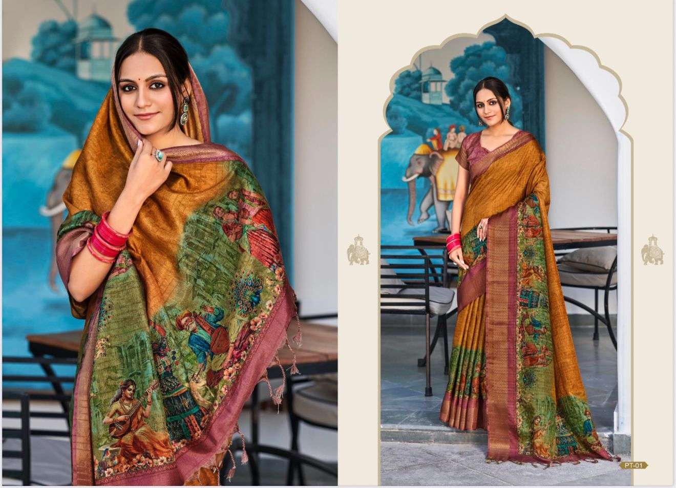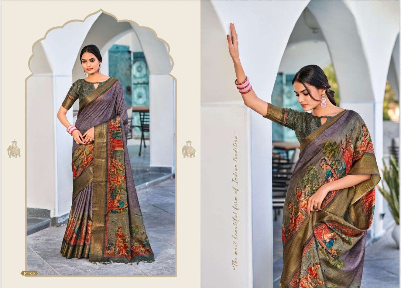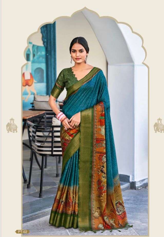 Fabric Panerai tusser silk with beautiful print and zari work Border Rich Pallu with Latkan Blouse ranning fabric