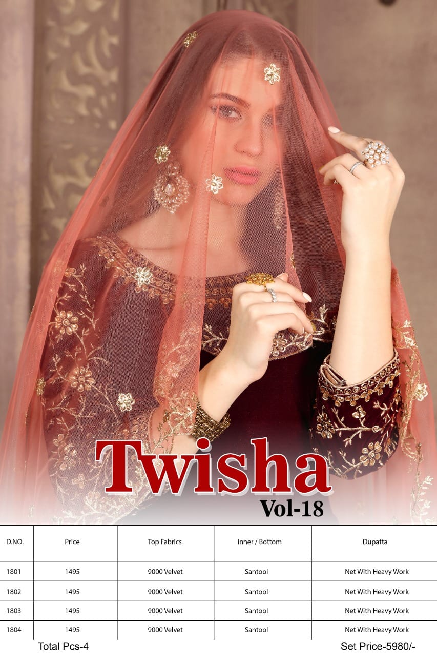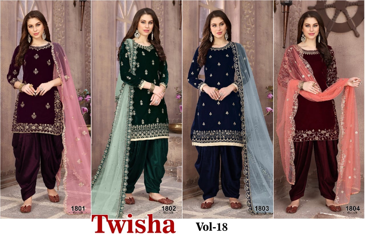 Twisha Vol 18 Series 1800 Velvet Suit Single And Set Stockiest And Supplier From Surat