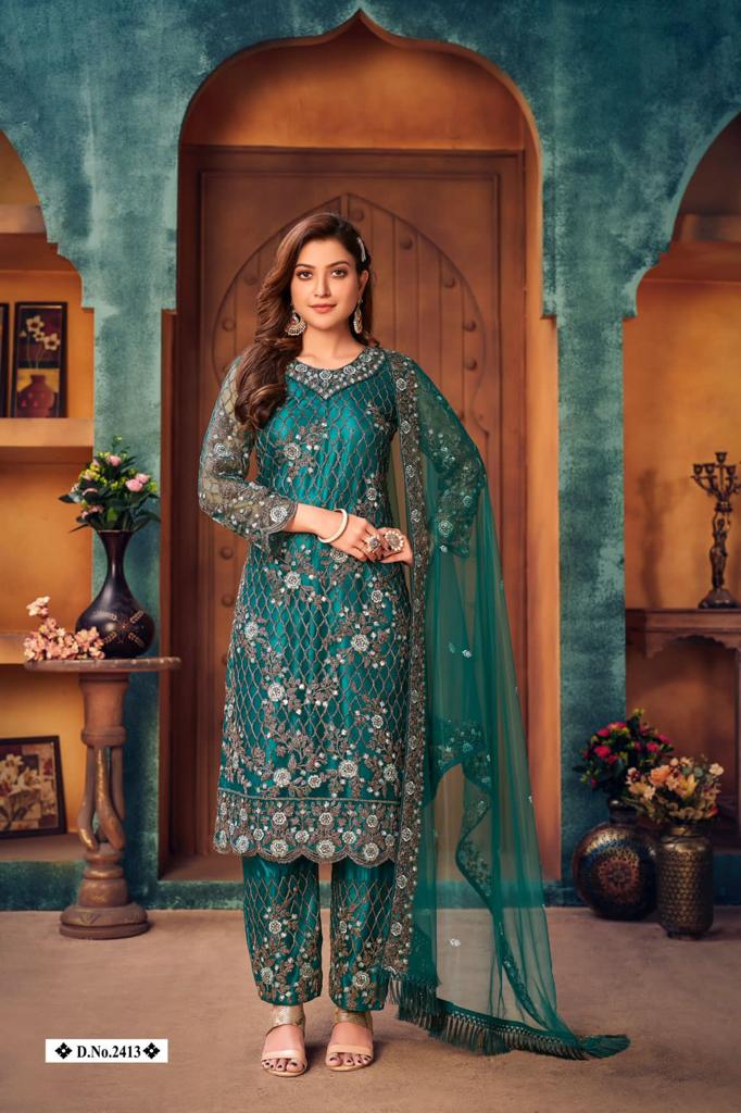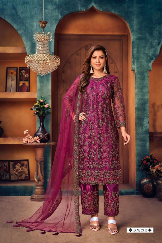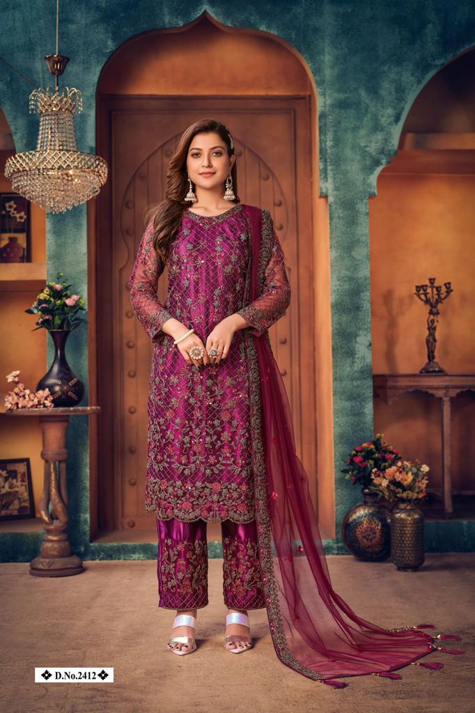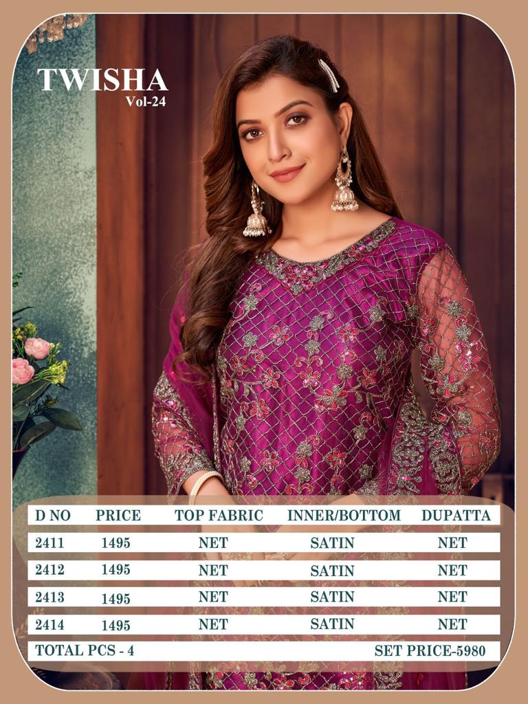 Buy Online Twisha Vol 24 Series 2400 By Dani Creation Net With Heavy Work Suit Wholesaler Supplier Surat 4 Pcs of Full Catalogue at Wholesale Price. Looking for Twisha Vol 24 Series 2400 By Dani Creation Net With Heavy Work Suit Wholesaler Supplier Surat Full Catalouge at Best Price? Buy Now Twisha Vol 24 Series 2400 By Dani Creation Net With Heavy Work Suit Wholesaler Supplier Surat at Wholesale Rate of Rs 5980 with Total 4 Pcs from authroized dealer and supplier of Brand. Cost of Each piece is just only Rs 1495 which is very low and affordable price to resale the product in your retail store ,This is Surat based Wholesale Supplier & Dealer of Brand. Click on Brand name to Know more about Brand's products.Call or Whatsapp on 9898838984 for booking or enquiry