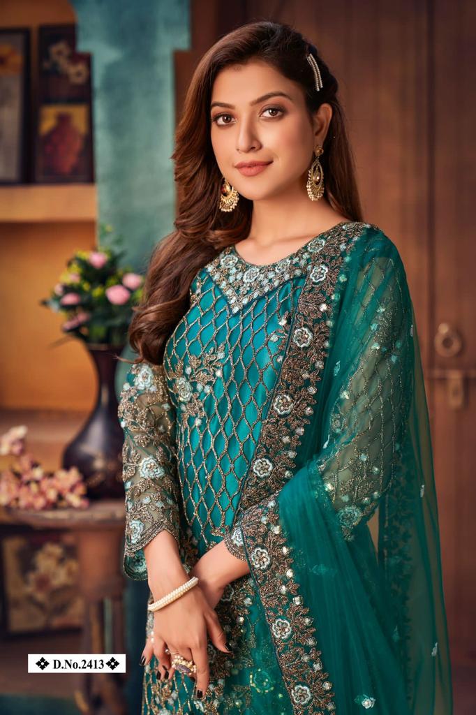 Twisha Vol 24 Series 2400 By Dani Creation Net With Heavy Work Suit Wholesaler Supplier Surat