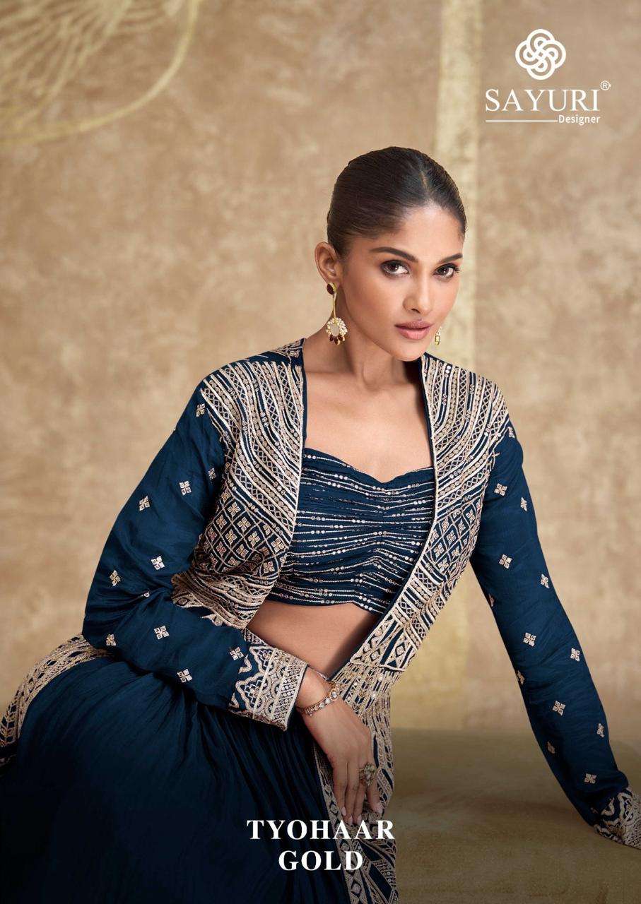 TYOHAAR GOLD by SAYURI DESIGNER REAL PREMIUM CHINON SILK gown collection manufacturer surat