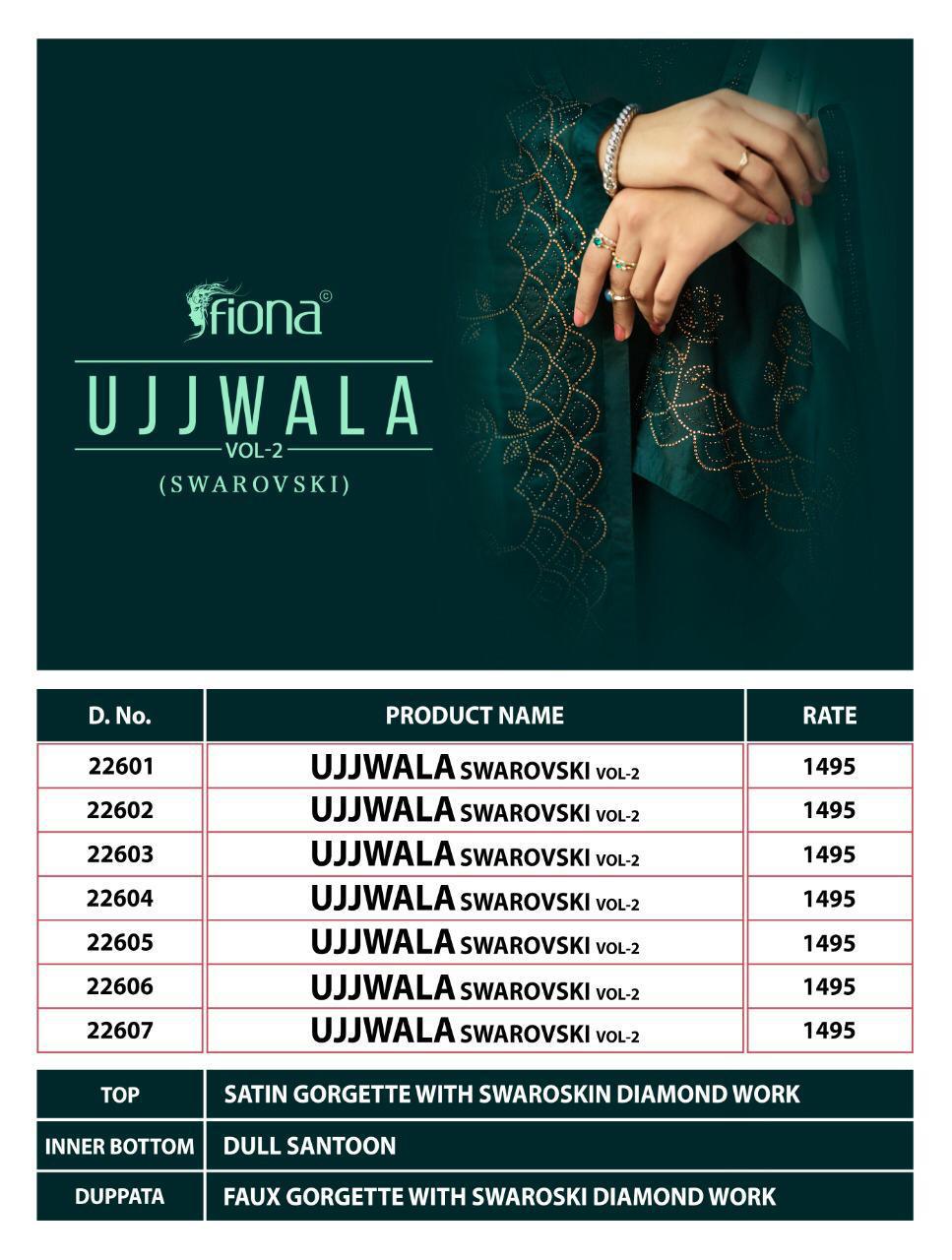 Buy Online Ujjwala Vol 2 By Fiona Series 22601 To 22607 Designer Party Wear Suits Wholesale Supplier Nd Dealer Gujarat 8 Pcs of Full Catalogue at Wholesale Price. Looking for Ujjwala Vol 2 By Fiona Series 22601 To 22607 Designer Party Wear Suits Wholesale Supplier Nd Dealer Gujarat Full Catalouge at Best Price? Buy Now Ujjwala Vol 2 By Fiona Series 22601 To 22607 Designer Party Wear Suits Wholesale Supplier Nd Dealer Gujarat at Wholesale Rate of Rs 11960 with Total 8 Pcs from authroized dealer and supplier of FIONA Brand. Cost of Each piece is just only Rs 1495 which is very low and affordable price to resale the product in your retail store ,This is Surat based Wholesale Supplier & Dealer of FIONA Brand. Click on Brand name to Know more about FIONA Brand's products.Call or Whatsapp on 9898838984 for booking or enquiry