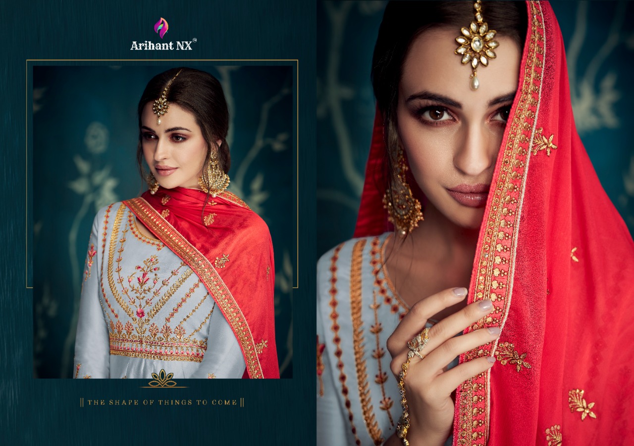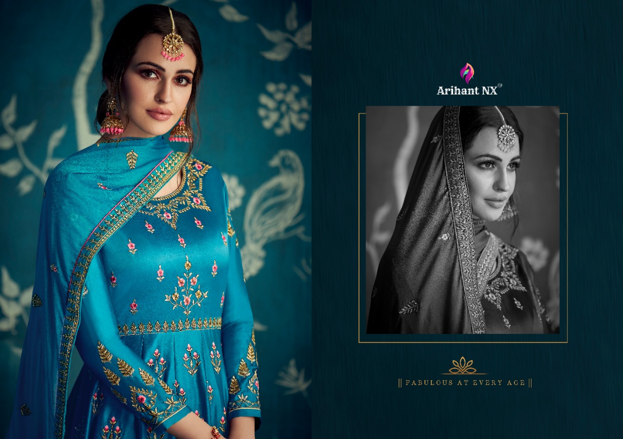 *ARIHANT NX*Â? This Diwali Season Present New Catalogue ? *ULFAT* ?? (D.No.44001 To 44004) ? FabRics Detail? Top:-Pure Sartin Silk With Fusing Inner&Bottom:-Dull Santoon Duppta:- Chinon (with embroidery work) Rate-2?1?9?5?/- Pcs-4? Pcs (READYMADE And Unstich ) *Size:- M,L,Xl,XXL* Disptch Date-This Week |