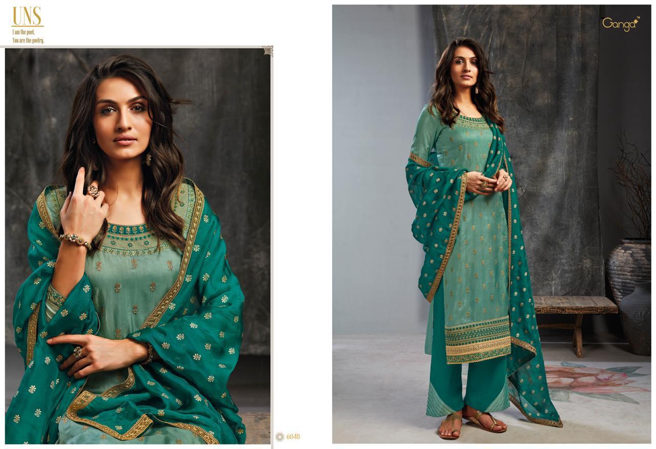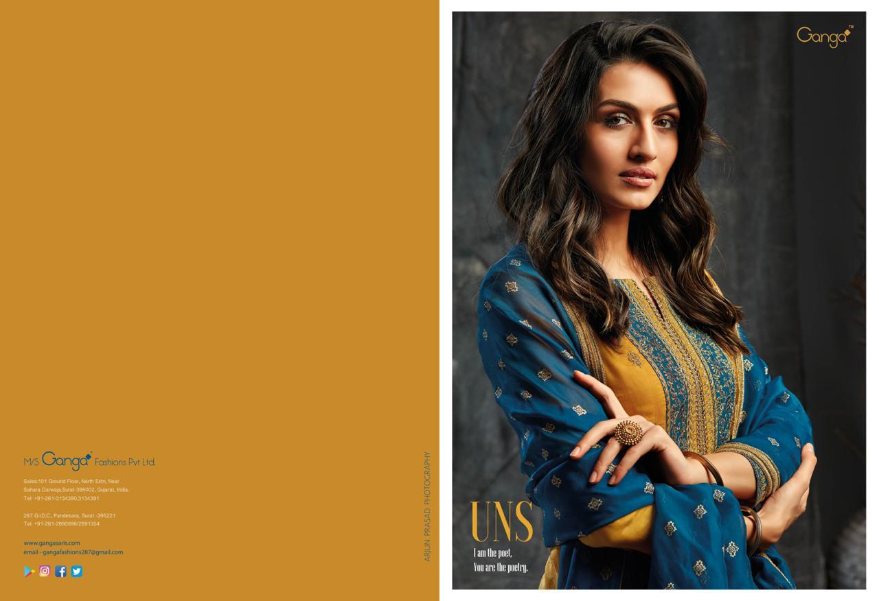 Buy Online Uns By Ganga Heavy Embroidered Designer Suits Wholesale Supplier And Dealer Gujarat 7 Pcs of Full Catalogue at Wholesale Price. Looking for Uns By Ganga Heavy Embroidered Designer Suits Wholesale Supplier And Dealer Gujarat Full Catalouge at Best Price? Buy Now Uns By Ganga Heavy Embroidered Designer Suits Wholesale Supplier And Dealer Gujarat at Wholesale Rate of Rs 16275 with Total 7 Pcs from authroized dealer and supplier of GANGA Brand. Cost of Each piece is just only Rs 2325 which is very low and affordable price to resale the product in your retail store ,This is Surat based Wholesale Supplier & Dealer of GANGA Brand. Click on Brand name to Know more about GANGA Brand's products.Call or Whatsapp on 9898838984 for booking or enquiry