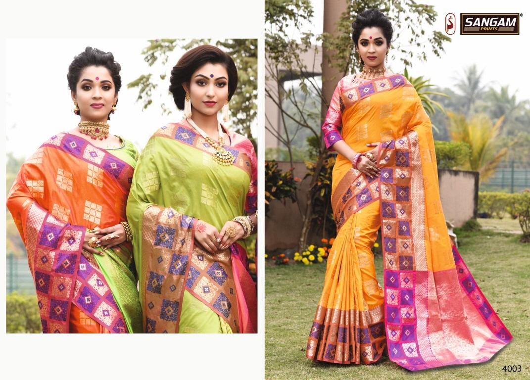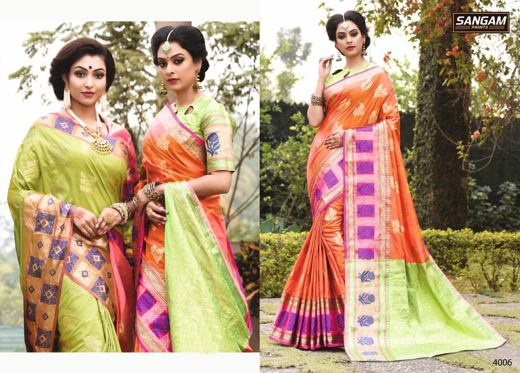 Buy Online Upada Silk By Sangam 4001 Series Fancy Sesigner Weaving Silk Saree Wholesaler Surat 8 Pcs of Full Catalogue at Wholesale Price. Looking for Upada Silk By Sangam 4001 Series Fancy Sesigner Weaving Silk Saree Wholesaler Surat Full Catalouge at Best Price? Buy Now Upada Silk By Sangam 4001 Series Fancy Sesigner Weaving Silk Saree Wholesaler Surat at Wholesale Rate of Rs 9800 with Total 8 Pcs from authroized dealer and supplier of SANGAM Brand. Cost of Each piece is just only Rs 1225 which is very low and affordable price to resale the product in your retail store ,This is Surat based Wholesale Supplier & Dealer of SANGAM Brand. Click on Brand name to Know more about SANGAM Brand's products.Call or Whatsapp on 9898838984 for booking or enquiry