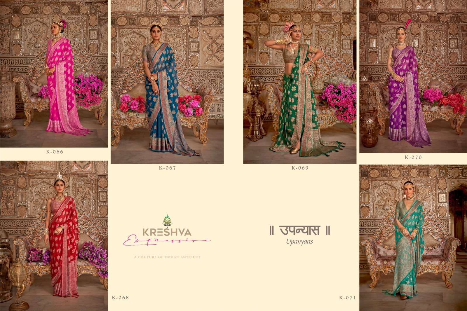 Upnyaas Series 066 to 071by Kreshwa georgette saree collection manufacturer surat