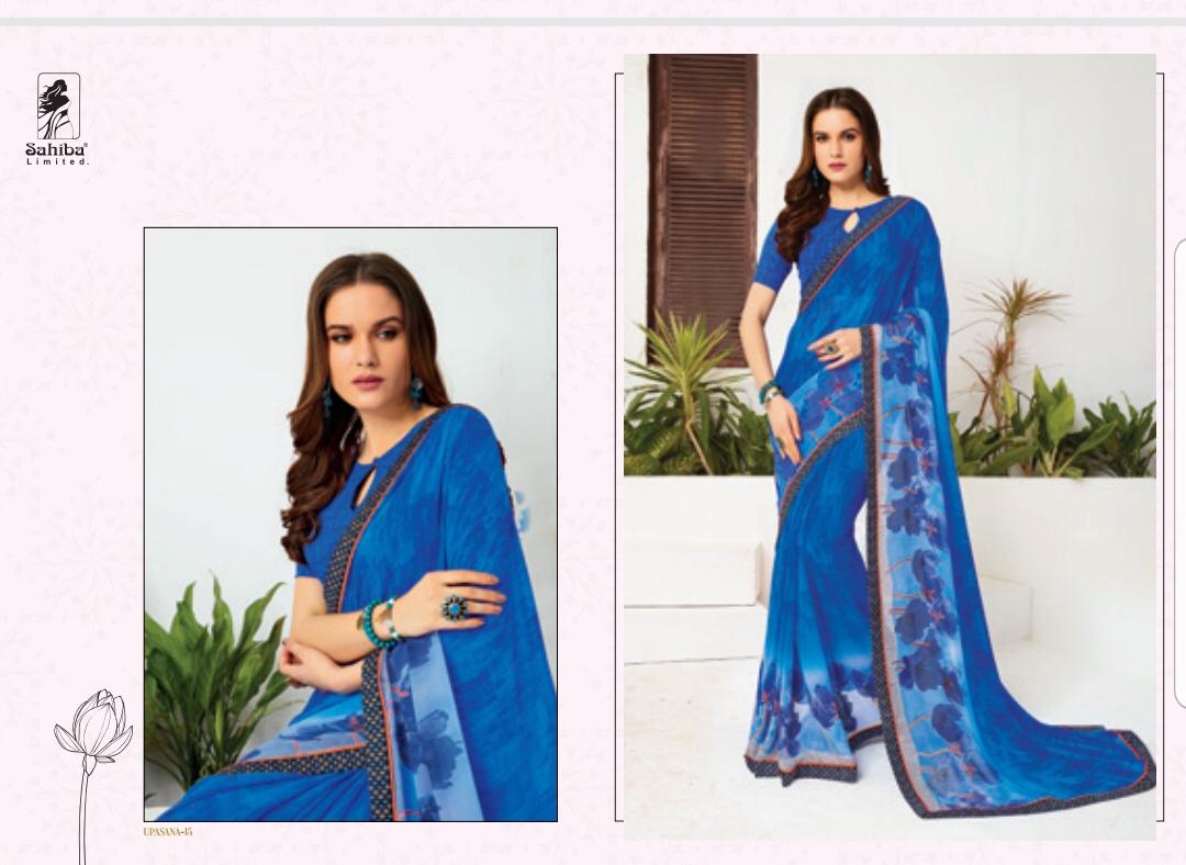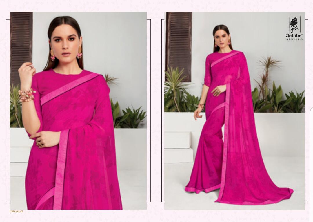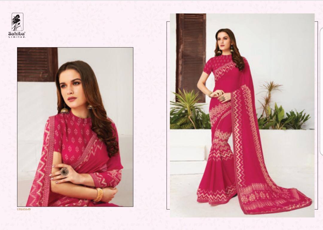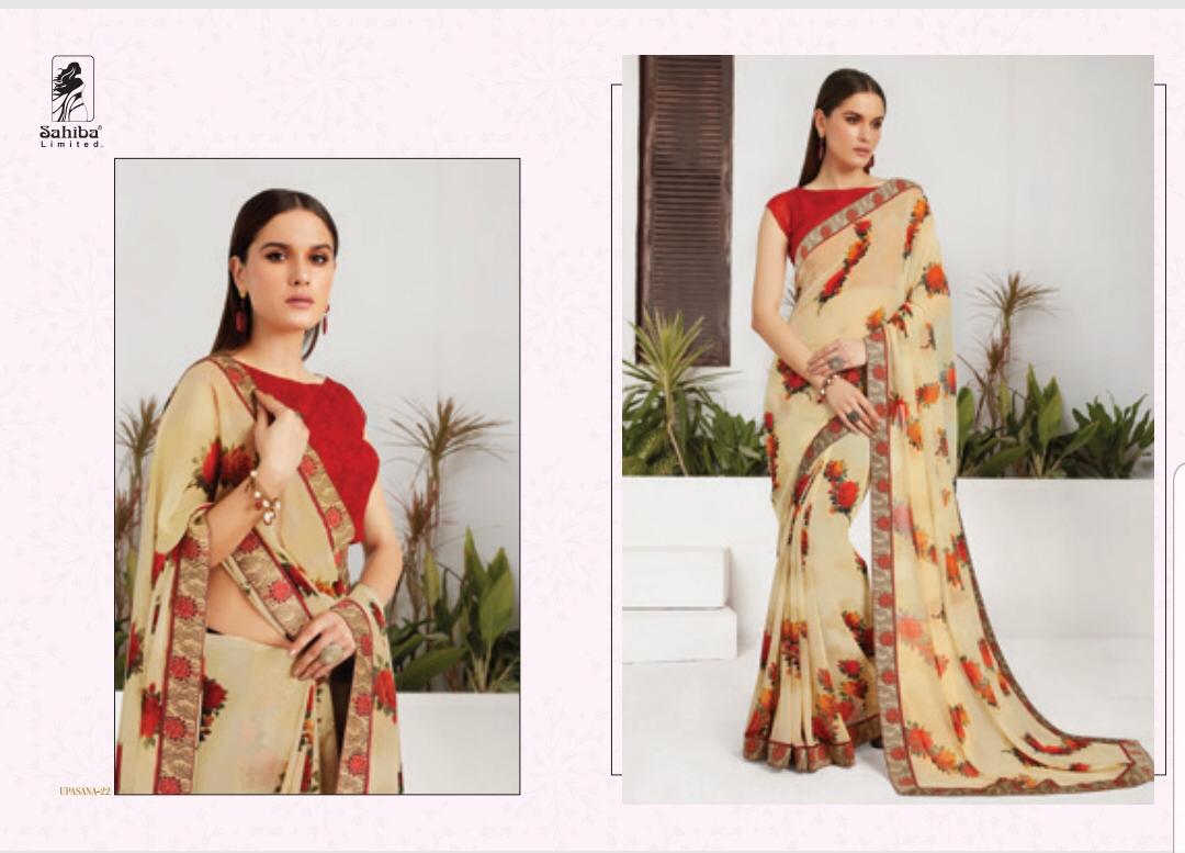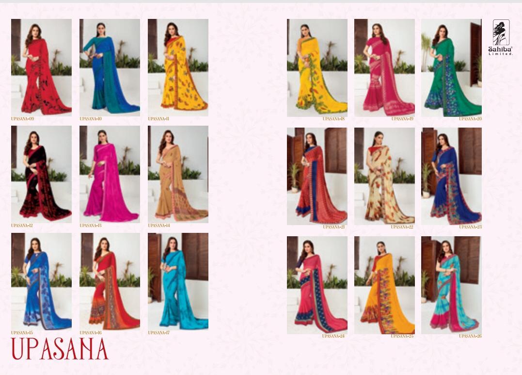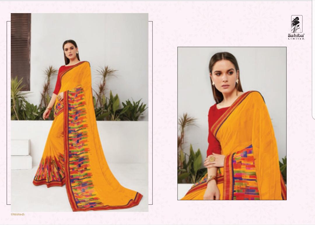 Upsana By Sahiba 09 Series Fancy Georgette Printed Saree Collection Wholesaler Surat