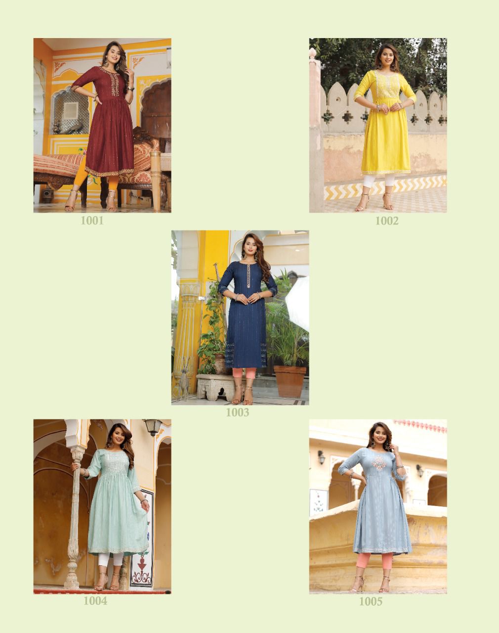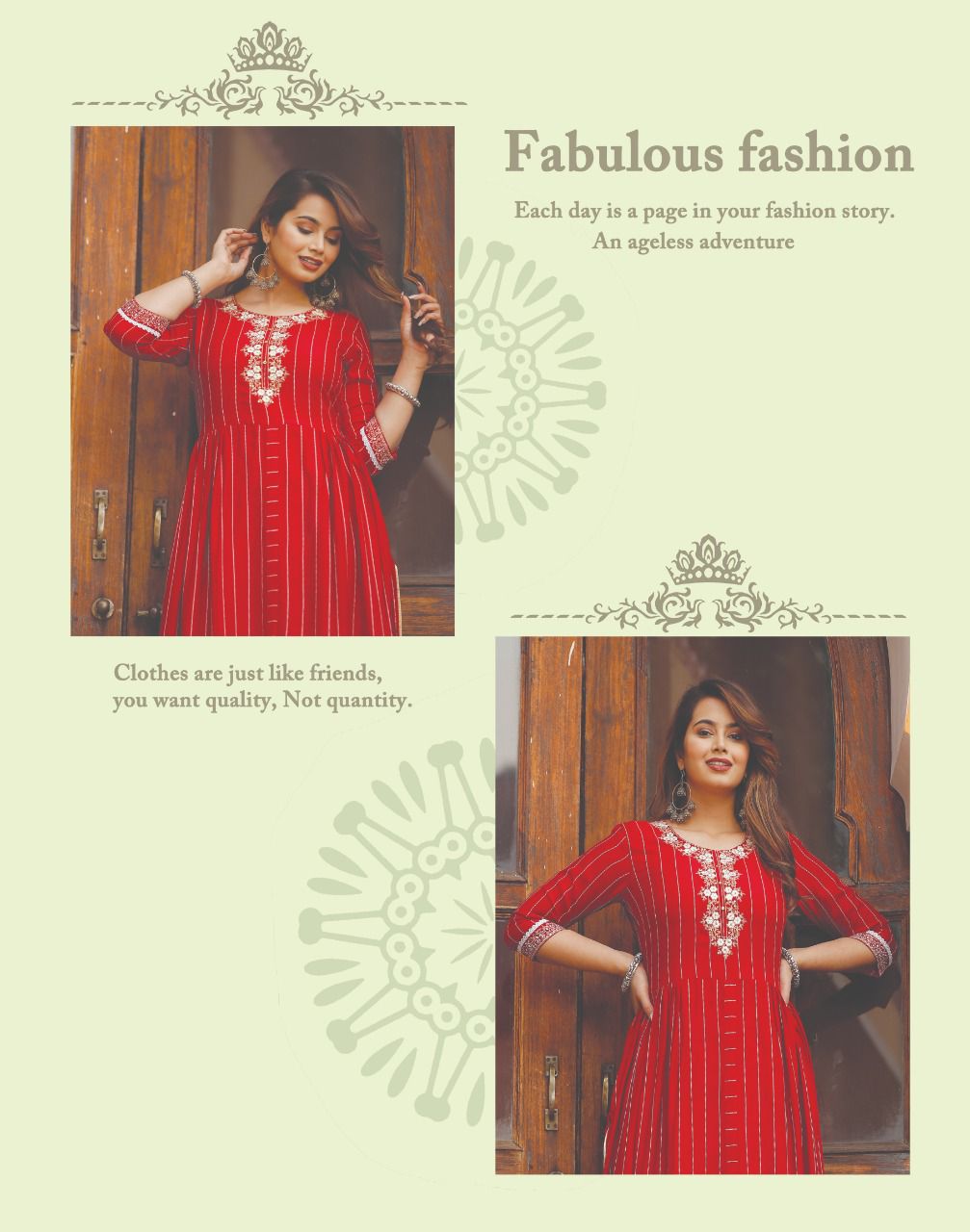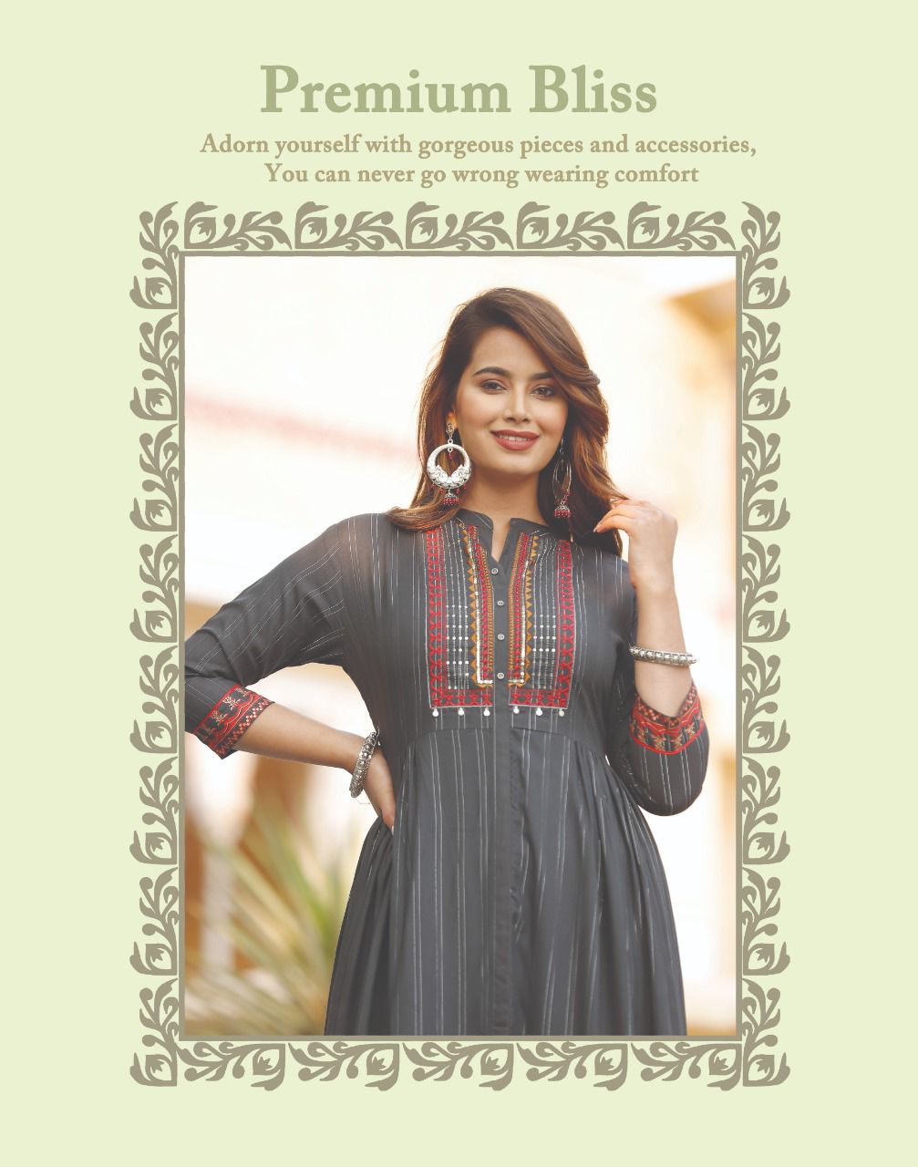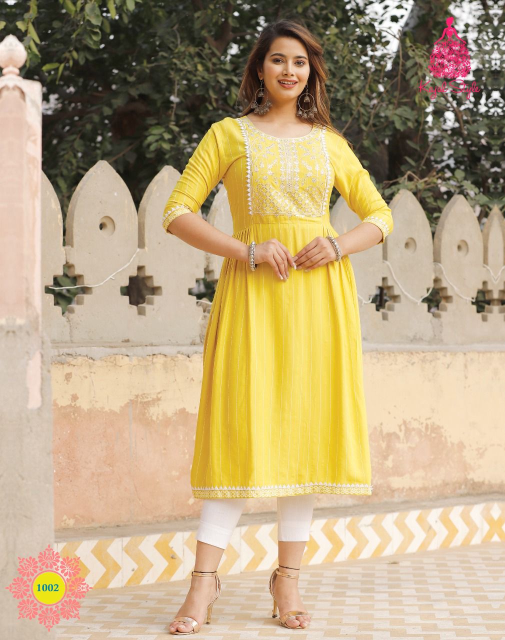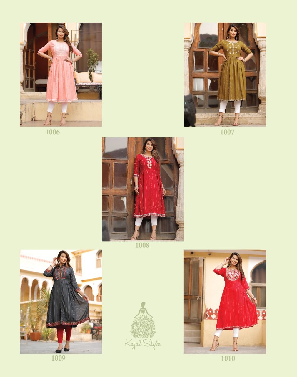 *_Fancy NAYRA CUT GOWN Kurti ._* ? ? ? *KAJAL STYLE* Catalogue name: ? *URBAN LINE*? ?Details: ?Pattern :- *Designer Nyra Cut Gown kurti*? *?Fabrics* *?? Fancy Rayon Fabric * *?? Reyon with sequance lining * *?? Embroidery work* *?? Print Border* ?Size - *S M L XL 2XL 3XL 4XL* ? Length Â?> *44-45* ?Designs - *? Pcs* Price .599 ??????hurryyy uppp....Book your order now...????????? Regards, *Varniraj Industries Pvt Ltd* |
