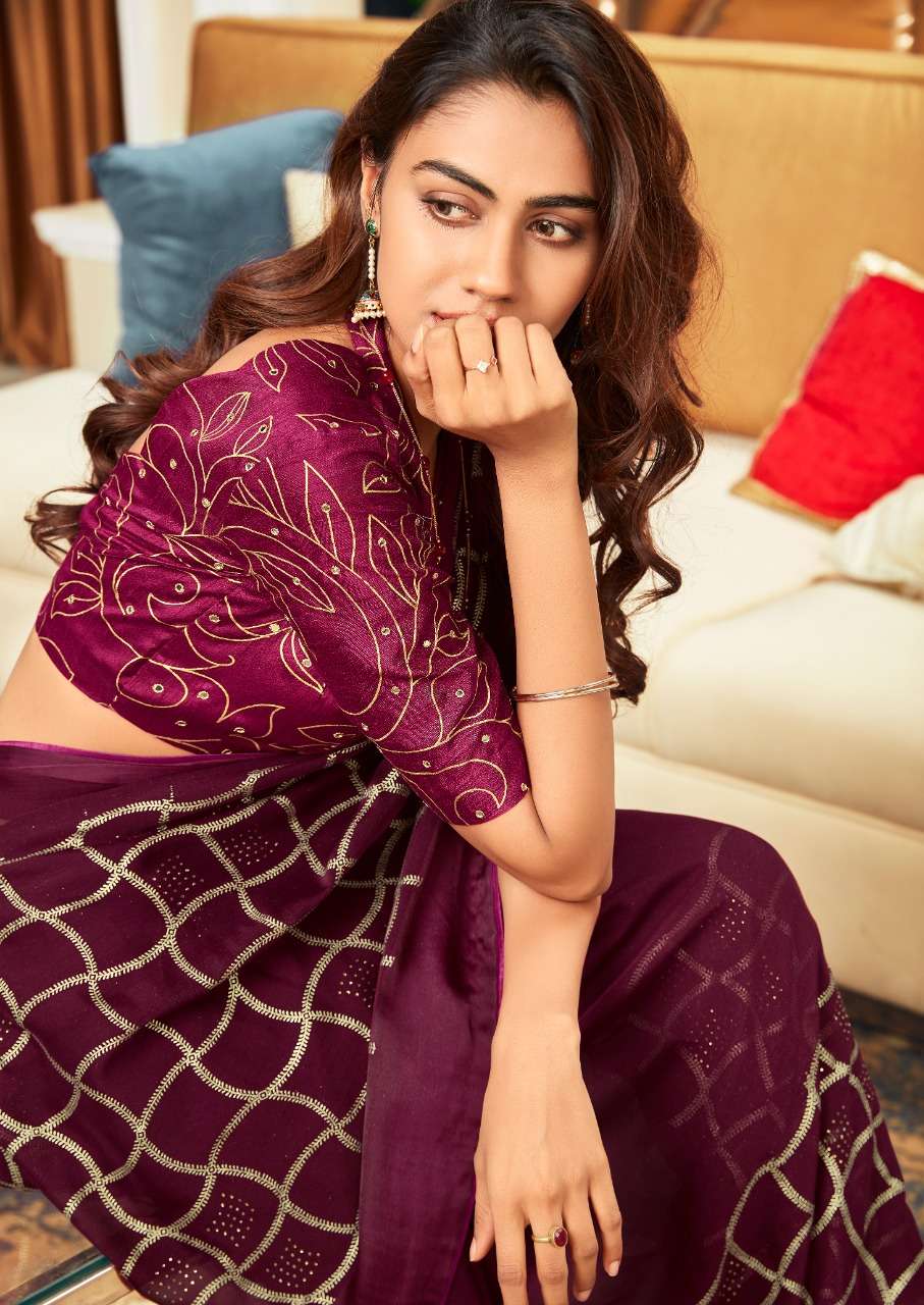 ➡️Fabric - *New Fancy fabric sarowski & foil value addition with hand work blouse* ➡️Rate - *1235+5%*