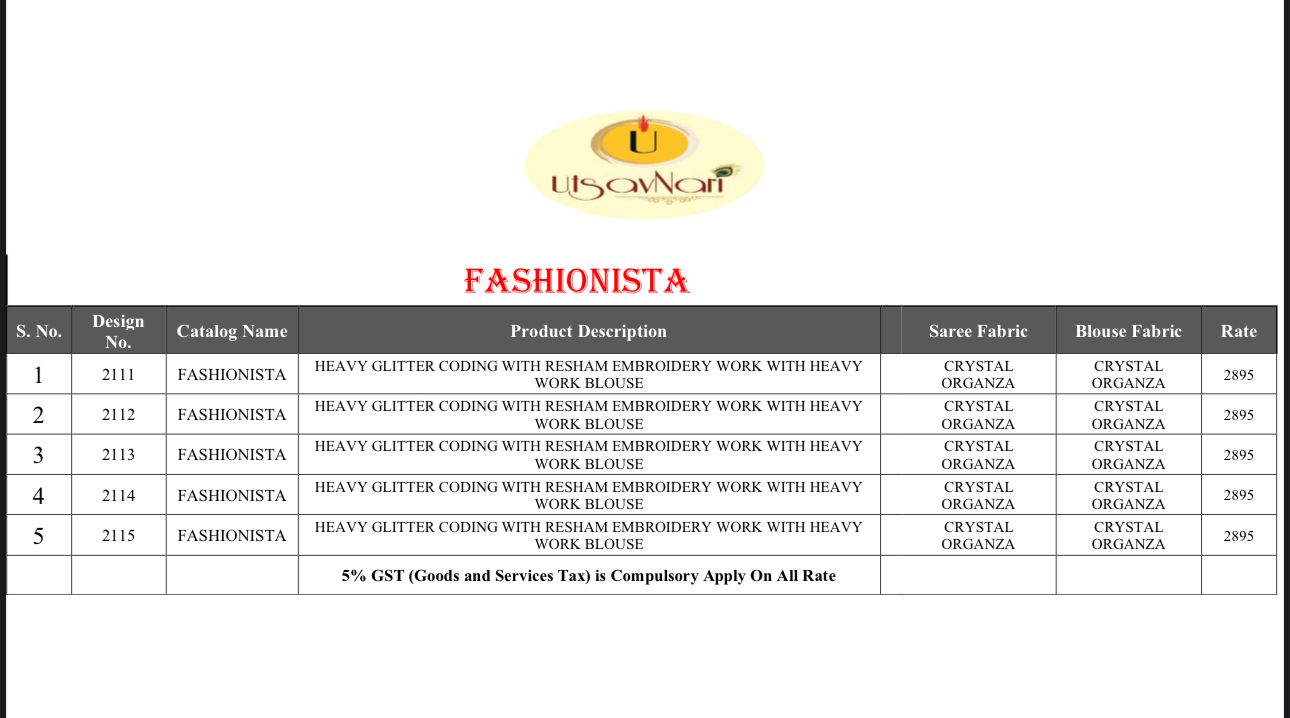 FASHIONISTA BY UTSAVNARI 2895+5% GST SINGLE AVAILABLE 100+Singles |