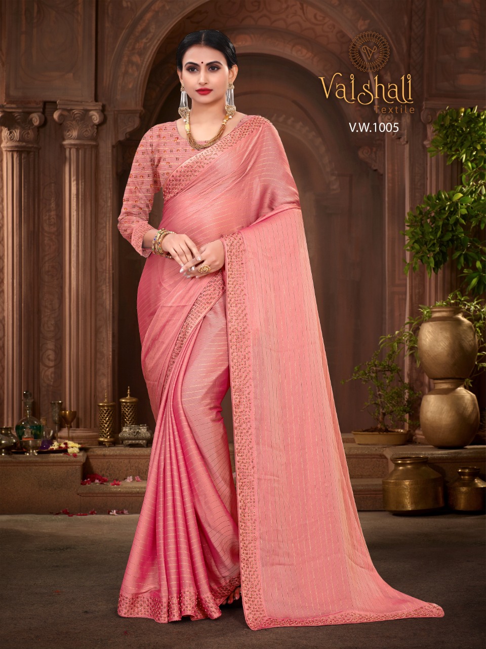 Buy Online V W 1001 To 1008 By Vaishali Textile Sarees Dealer And Exporter Gujrat 8 Pcs of Full Catalogue at Wholesale Price. Looking for V W 1001 To 1008 By Vaishali Textile Sarees Dealer And Exporter Gujrat Full Catalouge at Best Price? Buy Now V W 1001 To 1008 By Vaishali Textile Sarees Dealer And Exporter Gujrat at Wholesale Rate of Rs 9920 with Total 8 Pcs from authroized dealer and supplier of VAISHALI FASHION Brand. Cost of Each piece is just only Rs 1240 which is very low and affordable price to resale the product in your retail store ,This is Surat based Wholesale Supplier & Dealer of VAISHALI FASHION Brand. Click on Brand name to Know more about VAISHALI FASHION Brand's products.Call or Whatsapp on 9898838984 for booking or enquiry