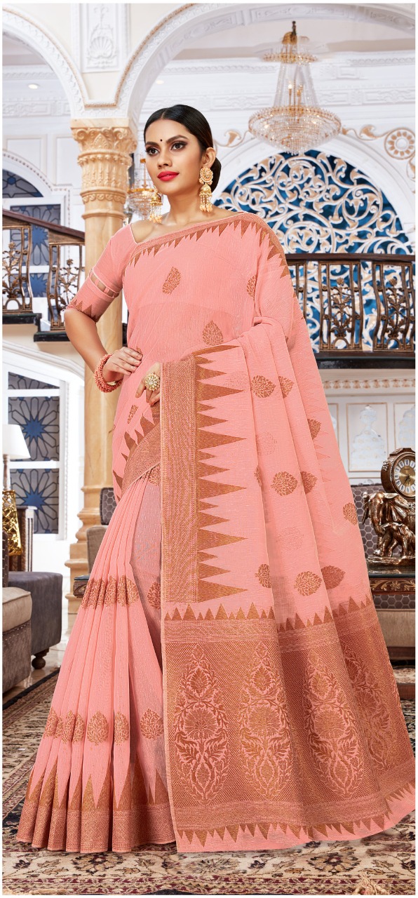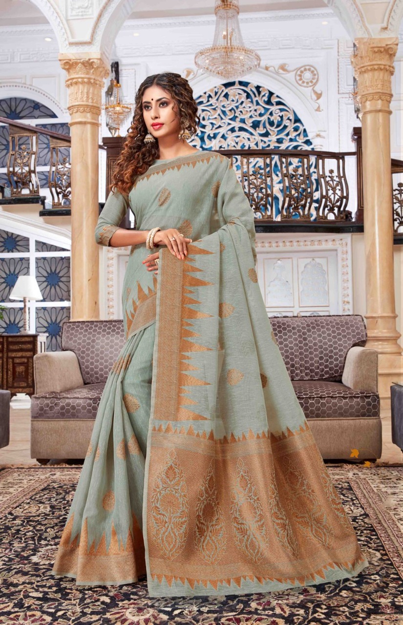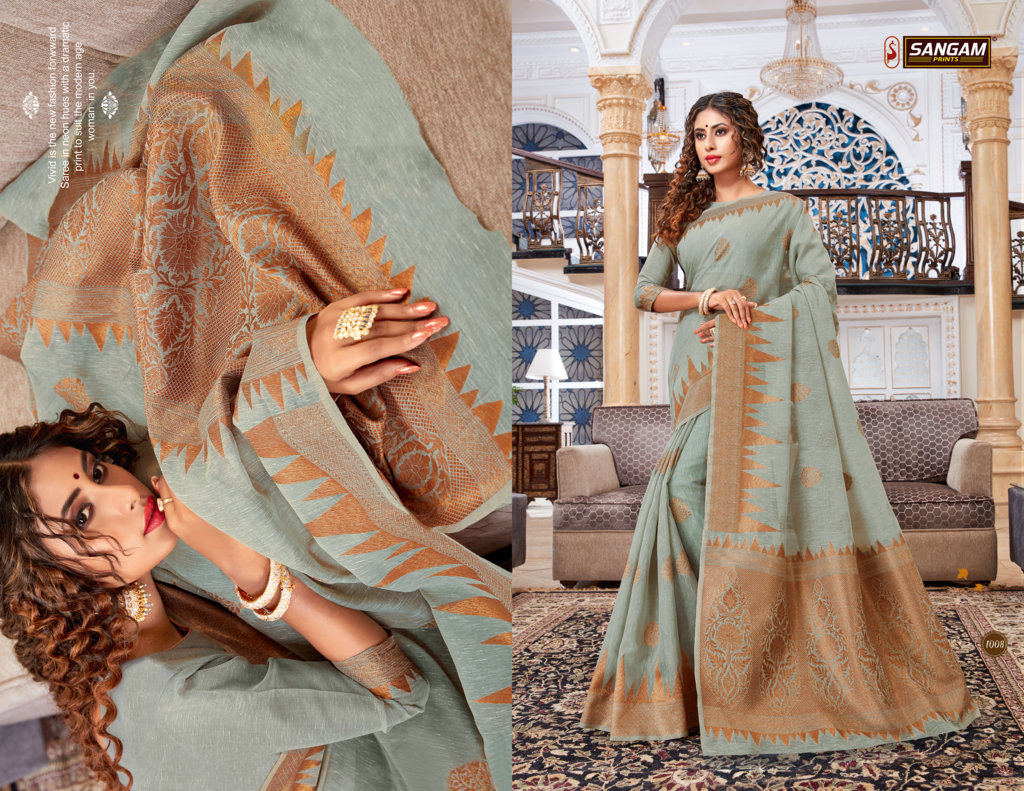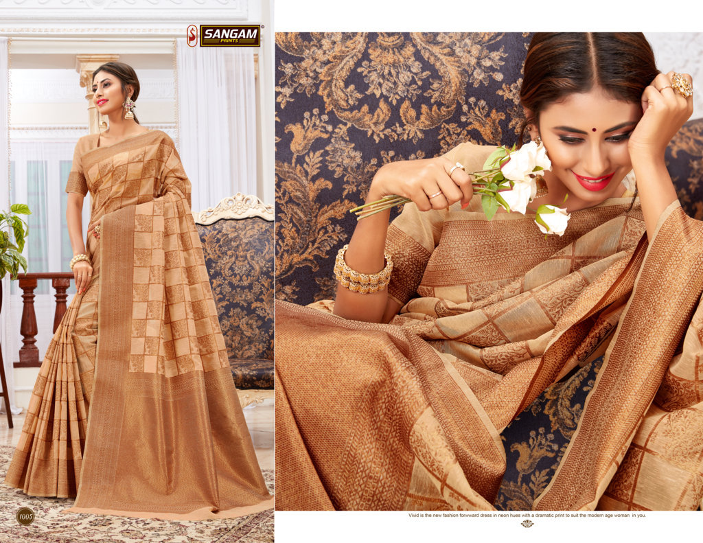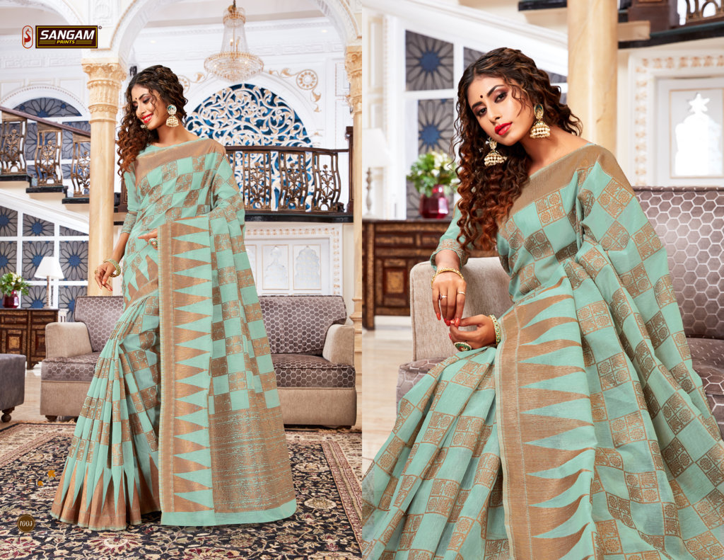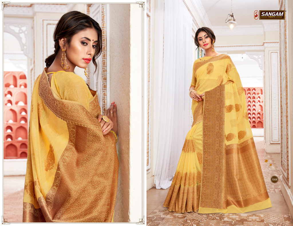 BRAND: SANGAM PRINTS CATALOG: VALLAMM-KALI FABRIC: LINEN-COTTON RATE: 1375+5%GST CONTRASTED PALLU AND BORDER BLOUSE PIECE ATTACHED ?BOOK YOUR ORDERS NOW? Single 1475+5%gst |