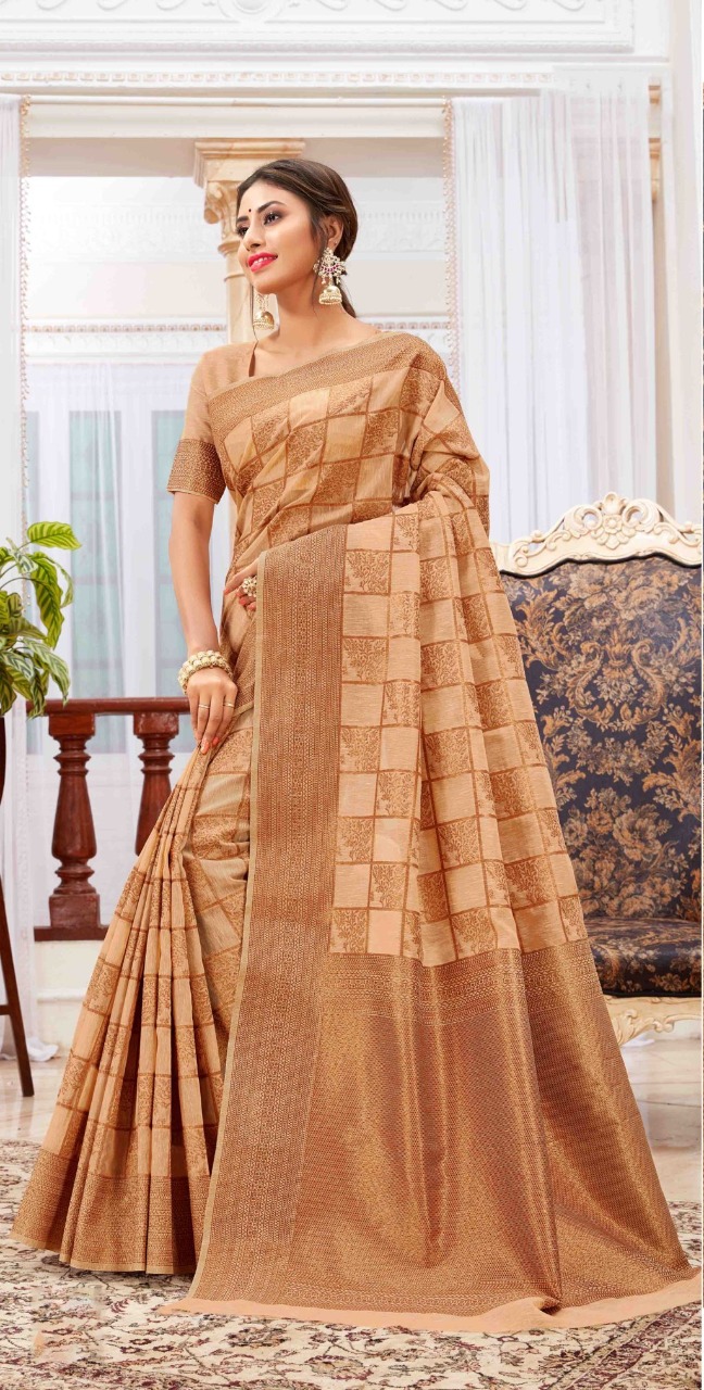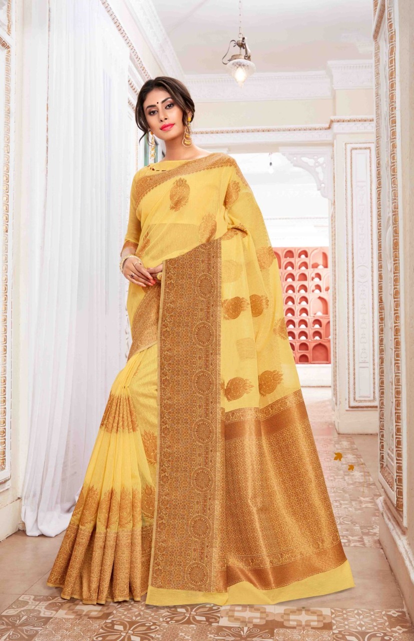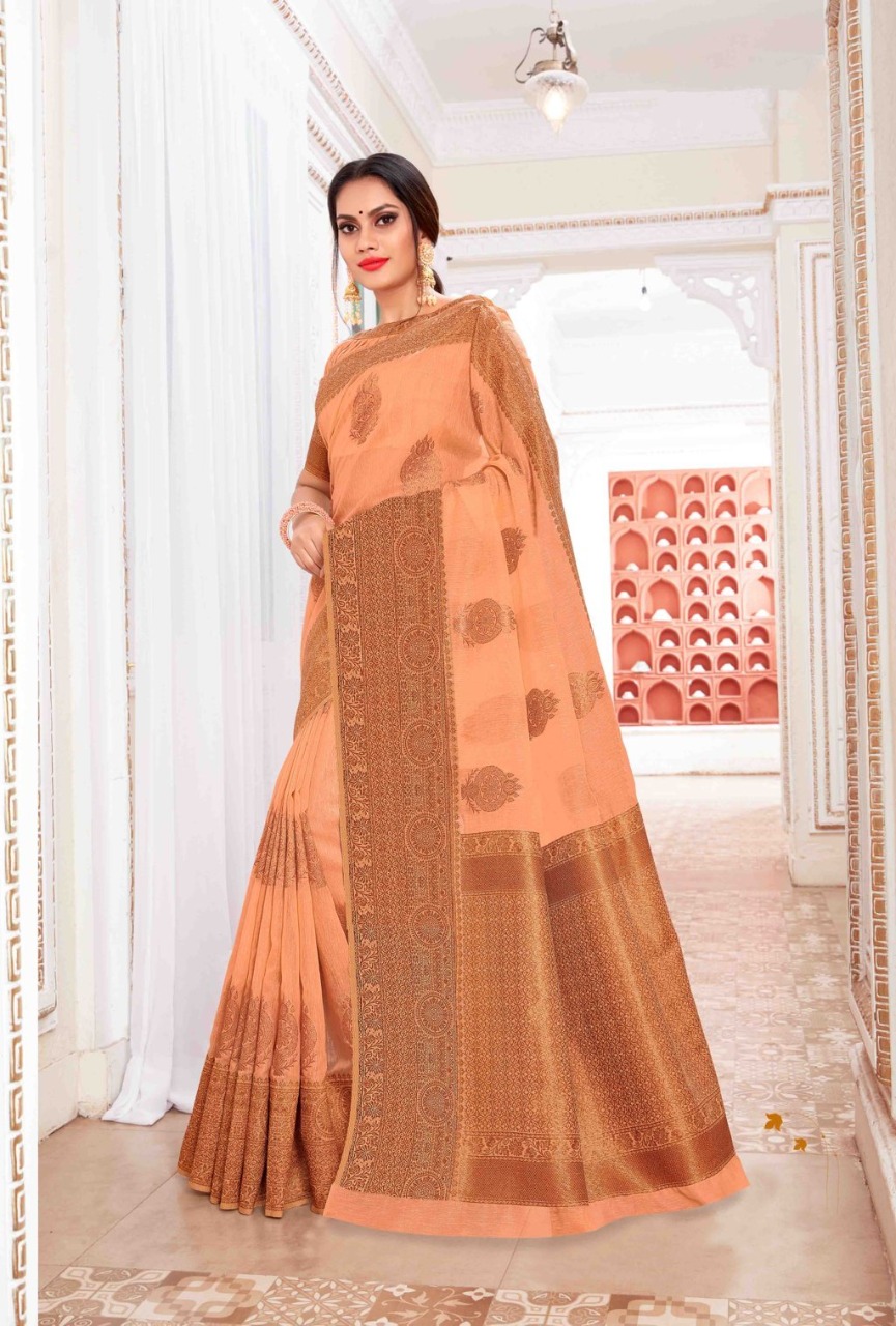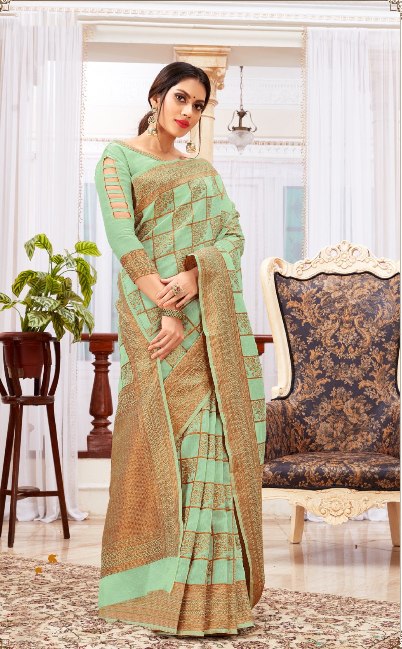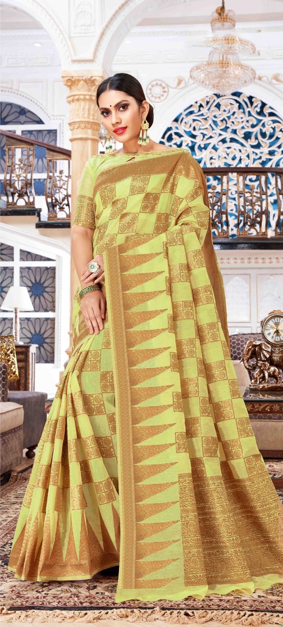 BRAND: SANGAM PRINTS CATALOG: VALLAMM-KALI FABRIC: LINEN-COTTON RATE: 1375+5%GST CONTRASTED PALLU AND BORDER BLOUSE PIECE ATTACHED ?BOOK YOUR ORDERS NOW? Single 1475+5%gst |
