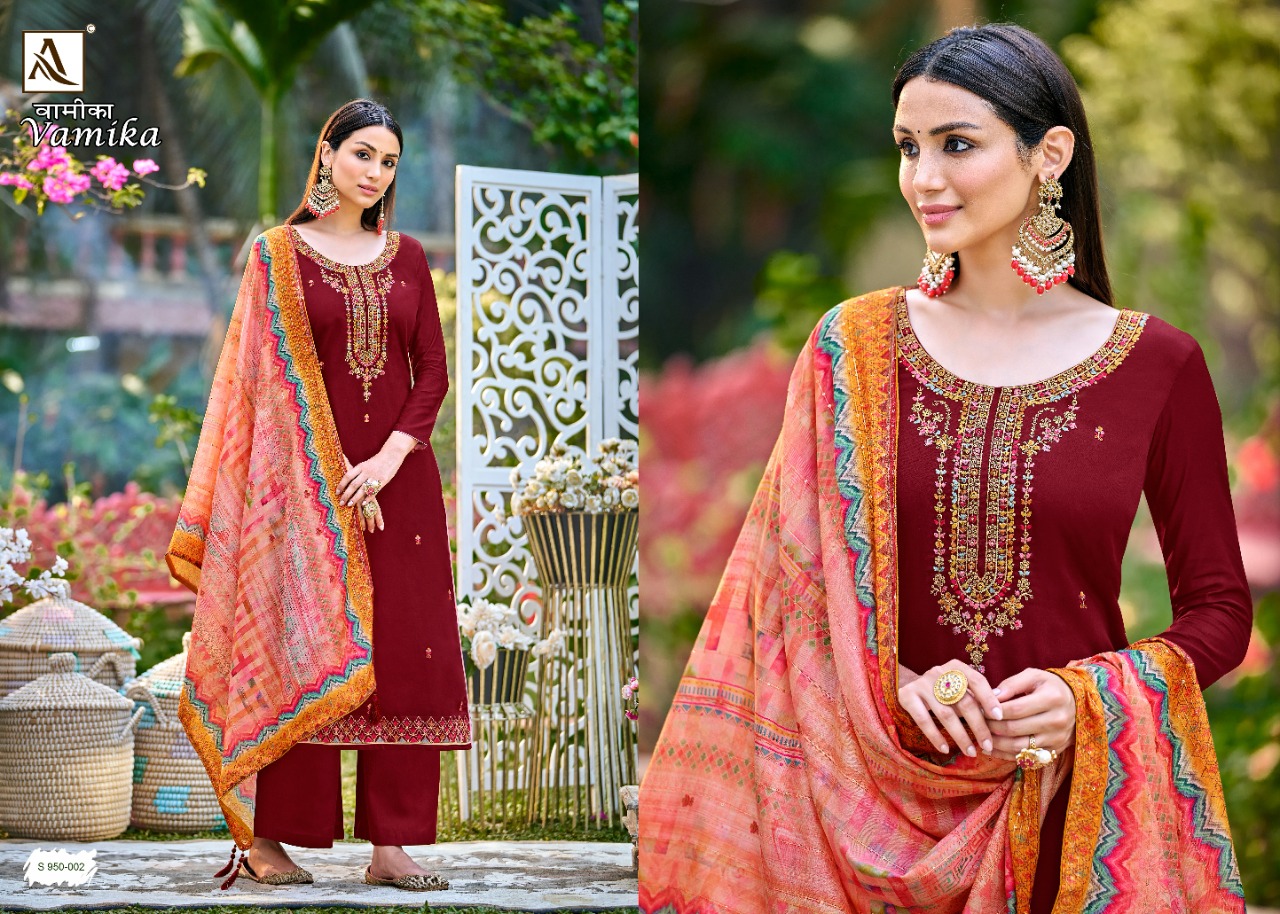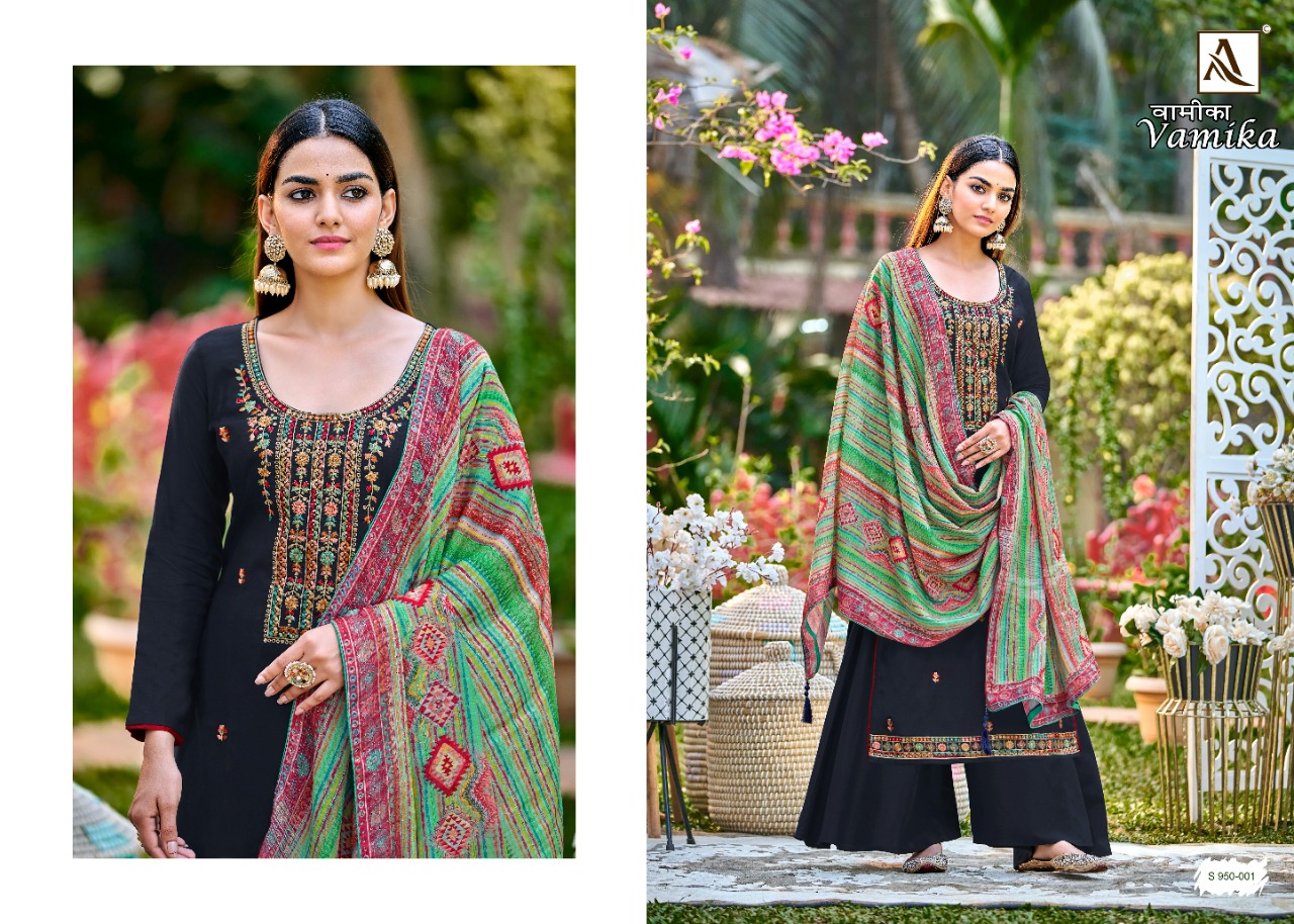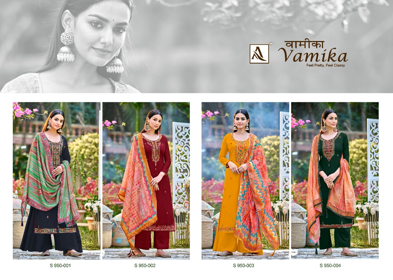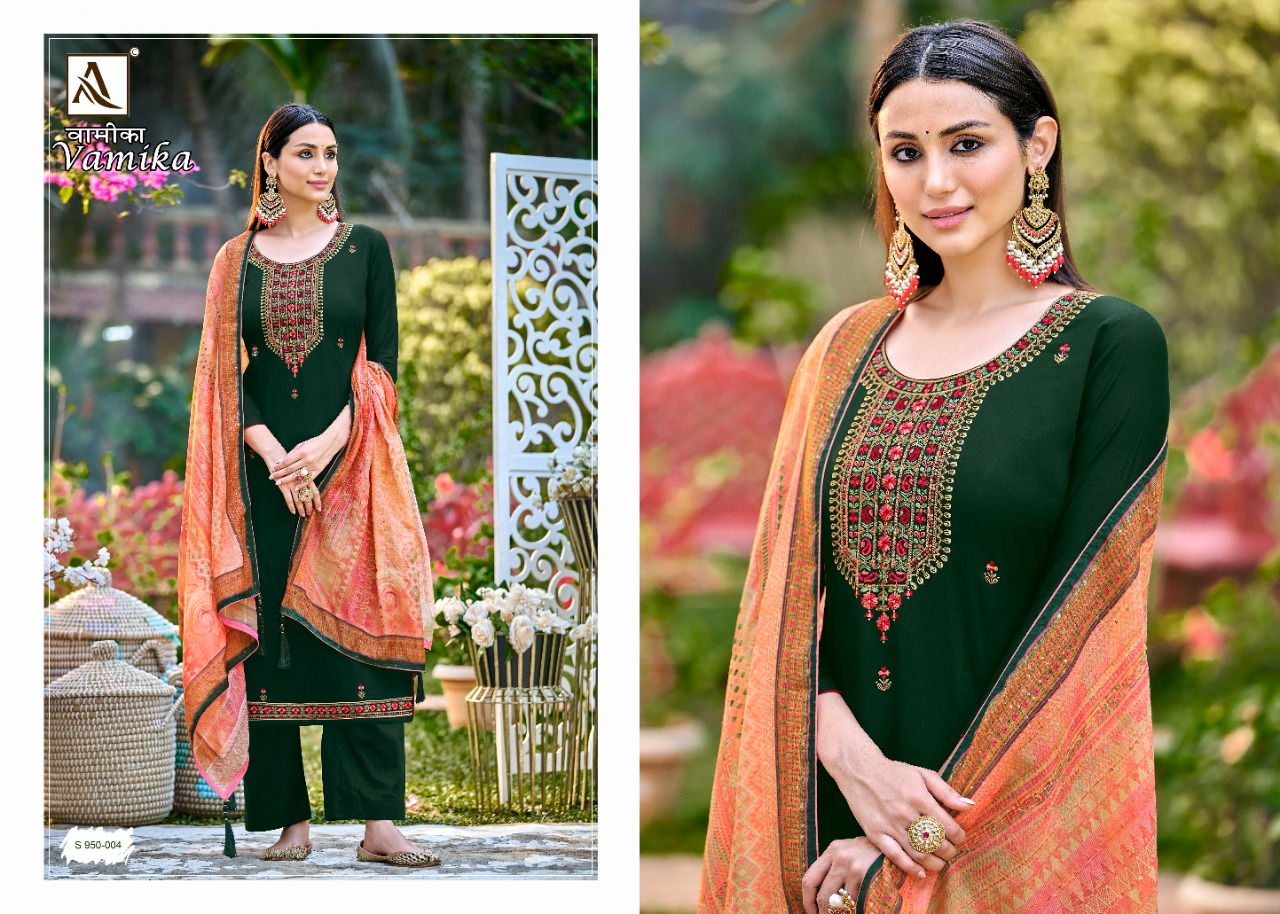 Buy Online Vamika By Alok Suit Wholesale Supplier Traders In Surat 4 Pcs of Full Catalogue at Wholesale Price. Looking for Vamika By Alok Suit Wholesale Supplier Traders In Surat Full Catalouge at Best Price? Buy Now Vamika By Alok Suit Wholesale Supplier Traders In Surat at Wholesale Rate of Rs 3760 with Total 4 Pcs from authroized dealer and supplier of Brand. Cost of Each piece is just only Rs 940 which is very low and affordable price to resale the product in your retail store ,This is Surat based Wholesale Supplier & Dealer of Brand. Click on Brand name to Know more about Brand's products.Call or Whatsapp on 9898838984 for booking or enquiry