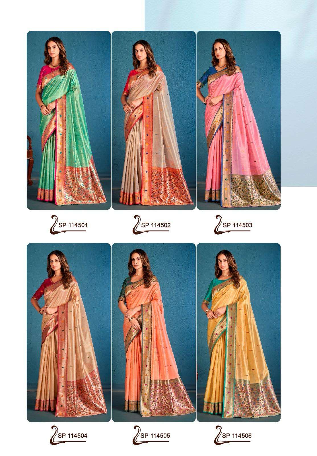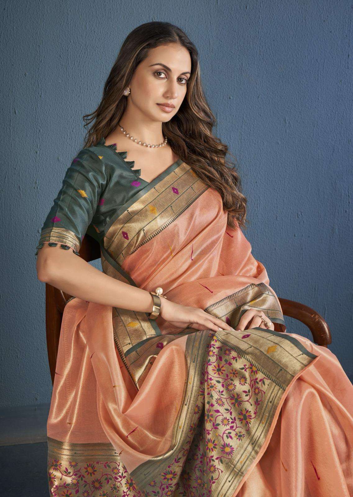 ➡️Catalog :- *Vamika Silk* ➡️Fabric :- *Soft Tissue with Paithani Weaving* ➡️ Rate :- *1045+5%*