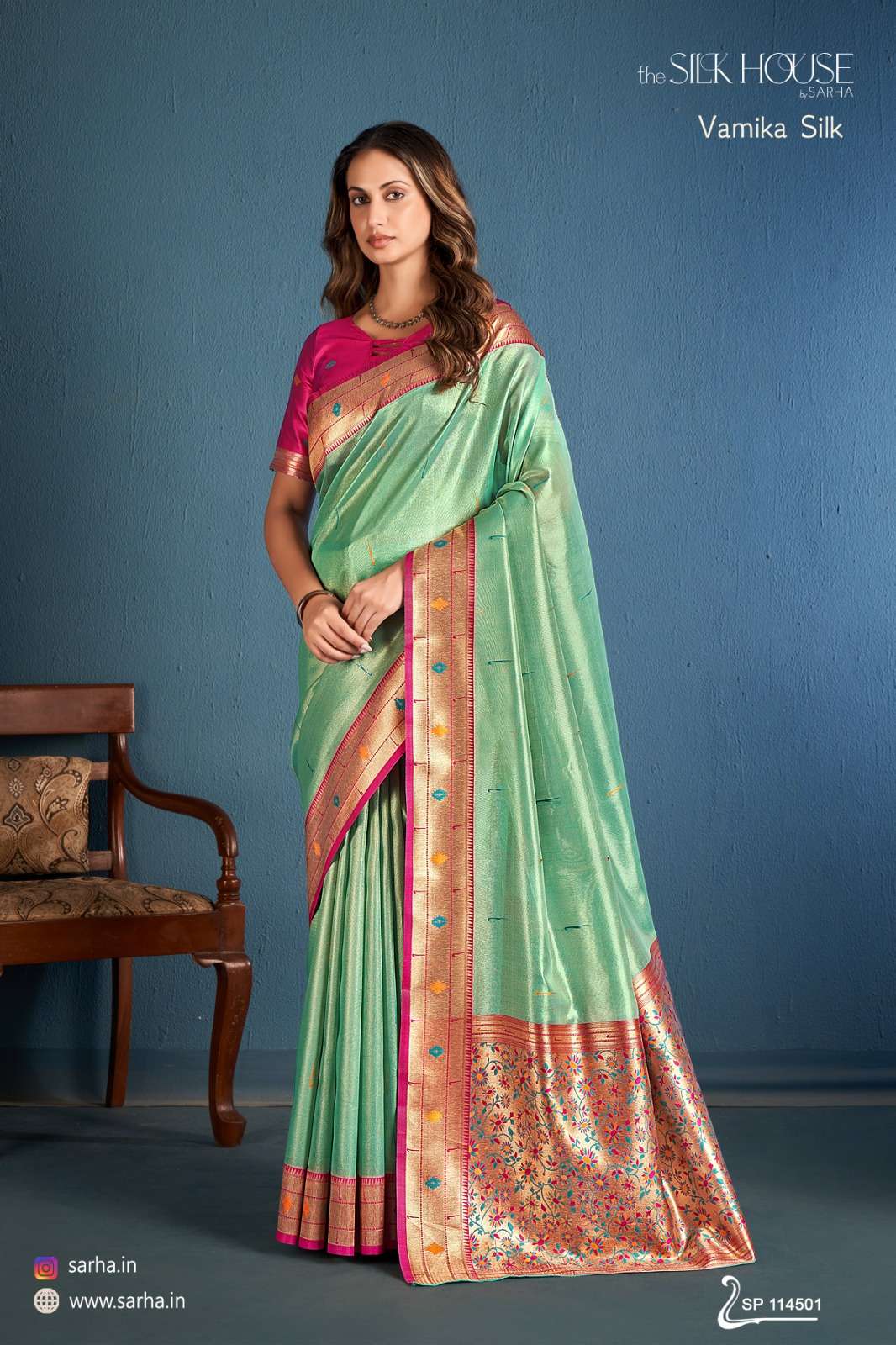 Vamika Silk by Sarha Soft Tissue Paithani saree collection manufacturer surat
