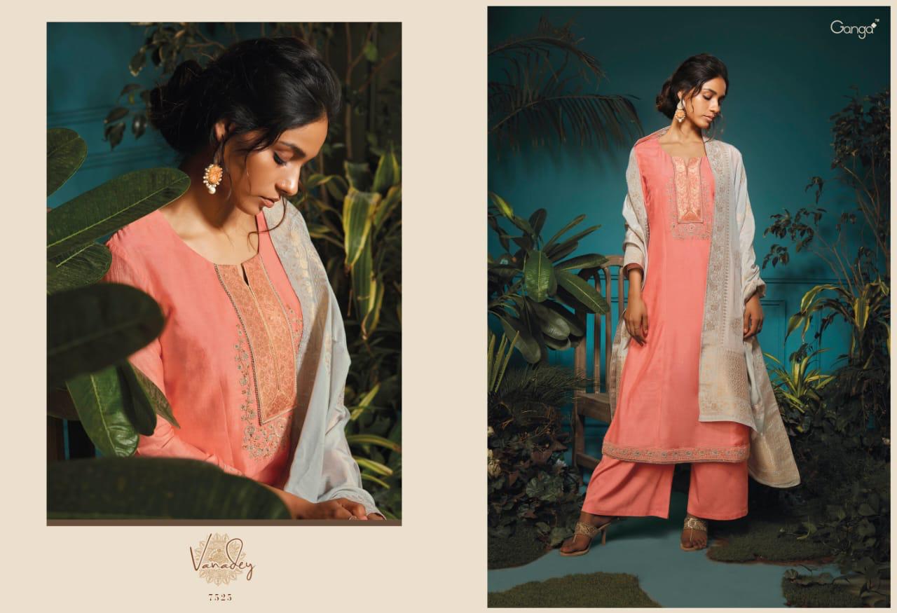 Vanadey By Ganga Series 7525 To 7530 Bemberg Embroidered Designer Party Wear Suits Wholesale Supplier Gujarat