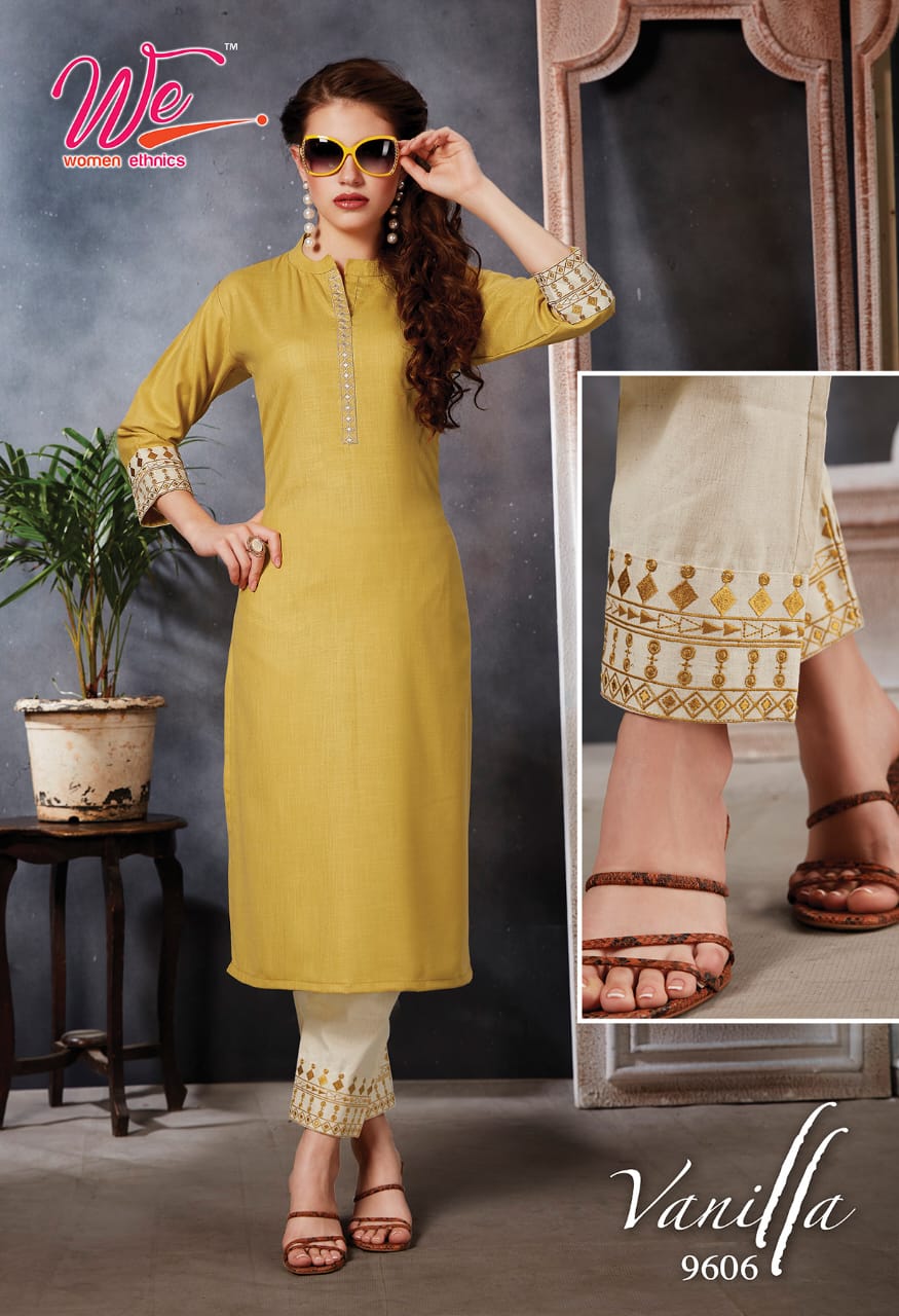 Buy Online Vanilla By We Women Ethnics By Kurti S Wholesaler Supplier From India 6 Pcs of Full Catalogue at Wholesale Price. Looking for Vanilla By We Women Ethnics By Kurti S Wholesaler Supplier From India Full Catalouge at Best Price? Buy Now Vanilla By We Women Ethnics By Kurti S Wholesaler Supplier From India at Wholesale Rate of Rs 3510 with Total 6 Pcs from authroized dealer and supplier of BRAND'S Brand. Cost of Each piece is just only Rs 585 which is very low and affordable price to resale the product in your retail store ,This is Surat based Wholesale Supplier & Dealer of BRAND'S Brand. Click on Brand name to Know more about BRAND'S Brand's products.Call or Whatsapp on 9898838984 for booking or enquiry