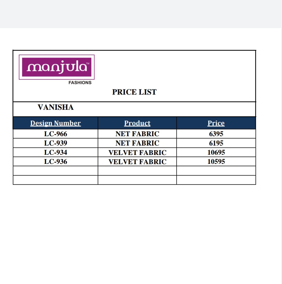 Buy Online Vanisha By Manjula New Wedding Wear Collection Single And Set Stockiest And Supplier From Surat 6 Pcs of Full Catalogue at Wholesale Price. Looking for Vanisha By Manjula New Wedding Wear Collection Single And Set Stockiest And Supplier From Surat Full Catalouge at Best Price? Buy Now Vanisha By Manjula New Wedding Wear Collection Single And Set Stockiest And Supplier From Surat at Wholesale Rate of Rs 0 with Total 6 Pcs from authroized dealer and supplier of Brand. Cost of Each piece is just only Rs 0 which is very low and affordable price to resale the product in your retail store ,This is Surat based Wholesale Supplier & Dealer of Brand. Click on Brand name to Know more about Brand's products.Call or Whatsapp on 9898838984 for booking or enquiry