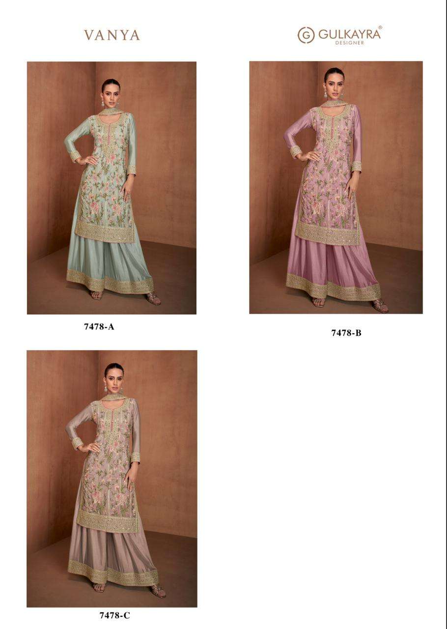 Buy Online VANYA by Gulkayra Designer Real Chinon suit collection manufacturer surat 3 Pcs of Full Catalogue at Wholesale Price. Looking for VANYA by Gulkayra Designer Real Chinon suit collection manufacturer surat Full Catalouge at Best Price? Buy Now VANYA by Gulkayra Designer Real Chinon suit collection manufacturer surat at Wholesale Rate of Rs 8700 with Total 3 Pcs from authroized dealer and supplier of Gulkayra designer Brand. Cost of Each piece is just only Rs 2900 which is very low and affordable price to resale the product in your retail store ,This is Surat based Wholesale Supplier & Dealer of Gulkayra designer Brand. Click on Brand name to Know more about Gulkayra designer Brand's products.Call or Whatsapp on 9898838984 for booking or enquiry
