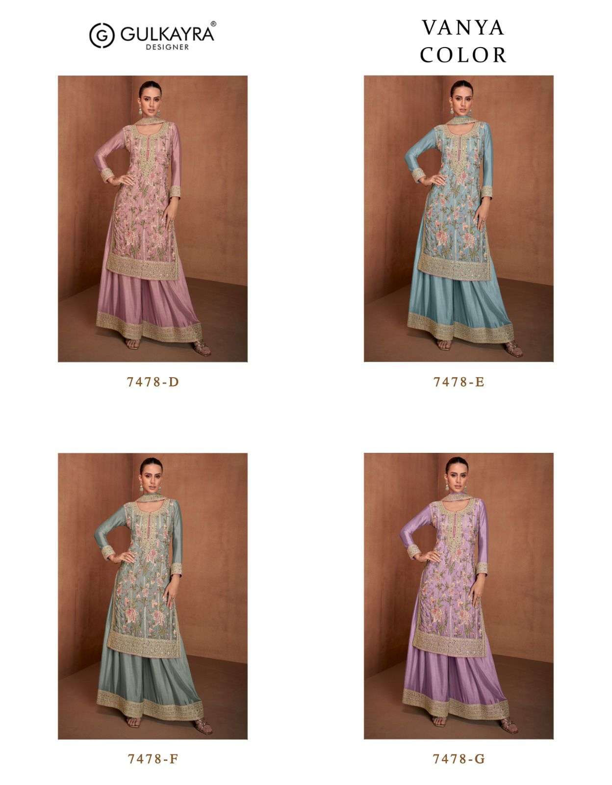 Buy Online VANYA COLOUR by Gulkayra Designer Real Chinon suit collection manufacturer surat 4 Pcs of Full Catalogue at Wholesale Price. Looking for VANYA COLOUR by Gulkayra Designer Real Chinon suit collection manufacturer surat Full Catalouge at Best Price? Buy Now VANYA COLOUR by Gulkayra Designer Real Chinon suit collection manufacturer surat at Wholesale Rate of Rs 11580 with Total 4 Pcs from authroized dealer and supplier of Gulkayra designer Brand. Cost of Each piece is just only Rs 2895 which is very low and affordable price to resale the product in your retail store ,This is Surat based Wholesale Supplier & Dealer of Gulkayra designer Brand. Click on Brand name to Know more about Gulkayra designer Brand's products.Call or Whatsapp on 9898838984 for booking or enquiry